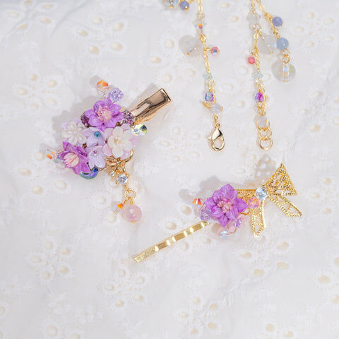Design 7 - 葡萄大麗花鴨嘴夾/一字夾/吊鏈組合套裝