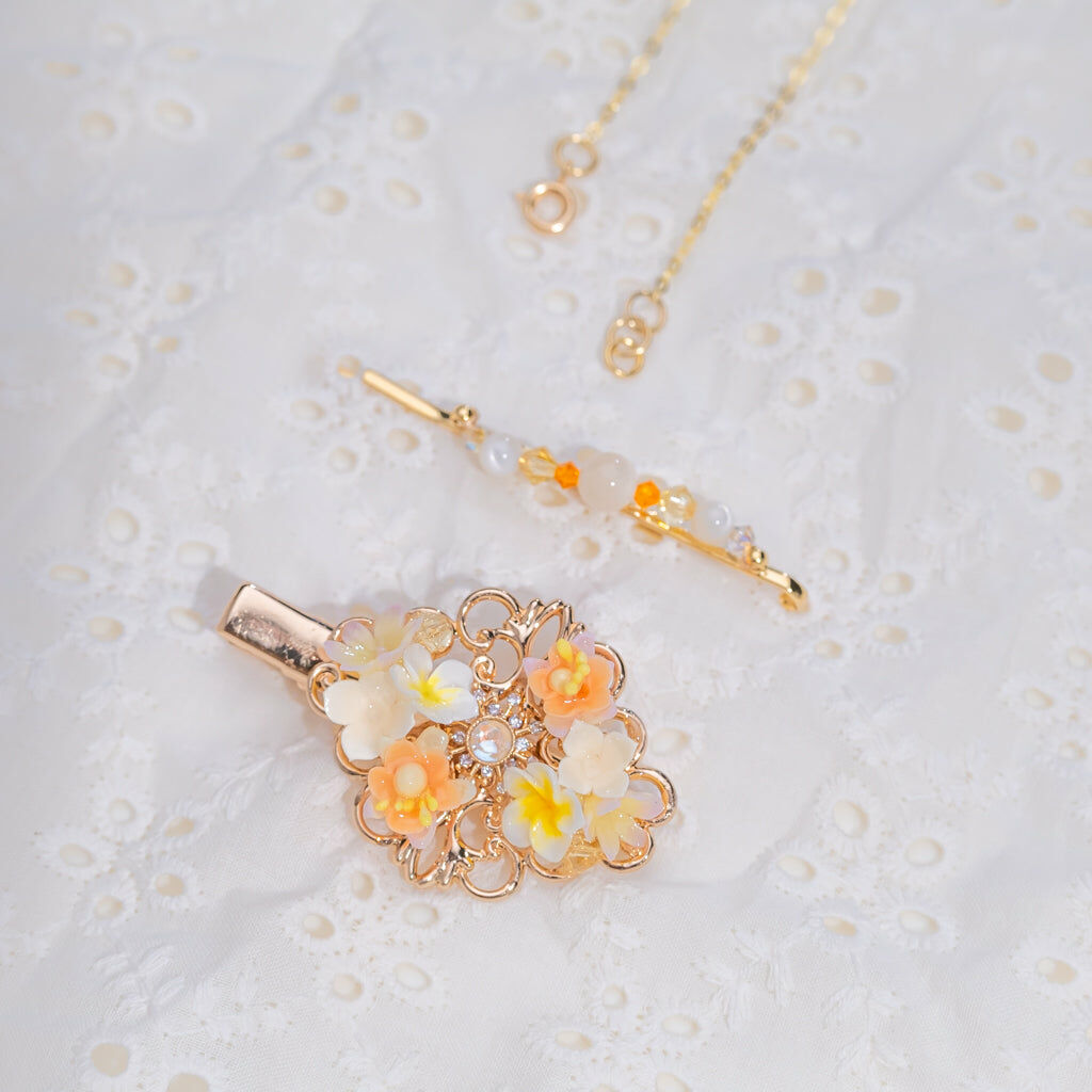 Design 3 - 雞蛋花園鴨嘴夾/一字夾/吊鏈組合套裝