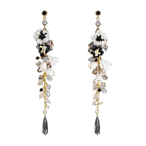 Mysterious Lily-of-the-valley and Monochrome Pansy Gold-plated S925 Tassel Earrings