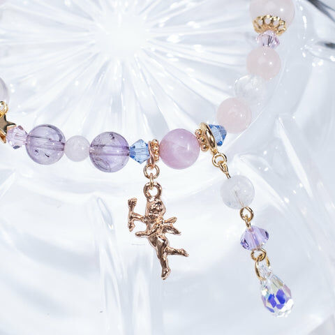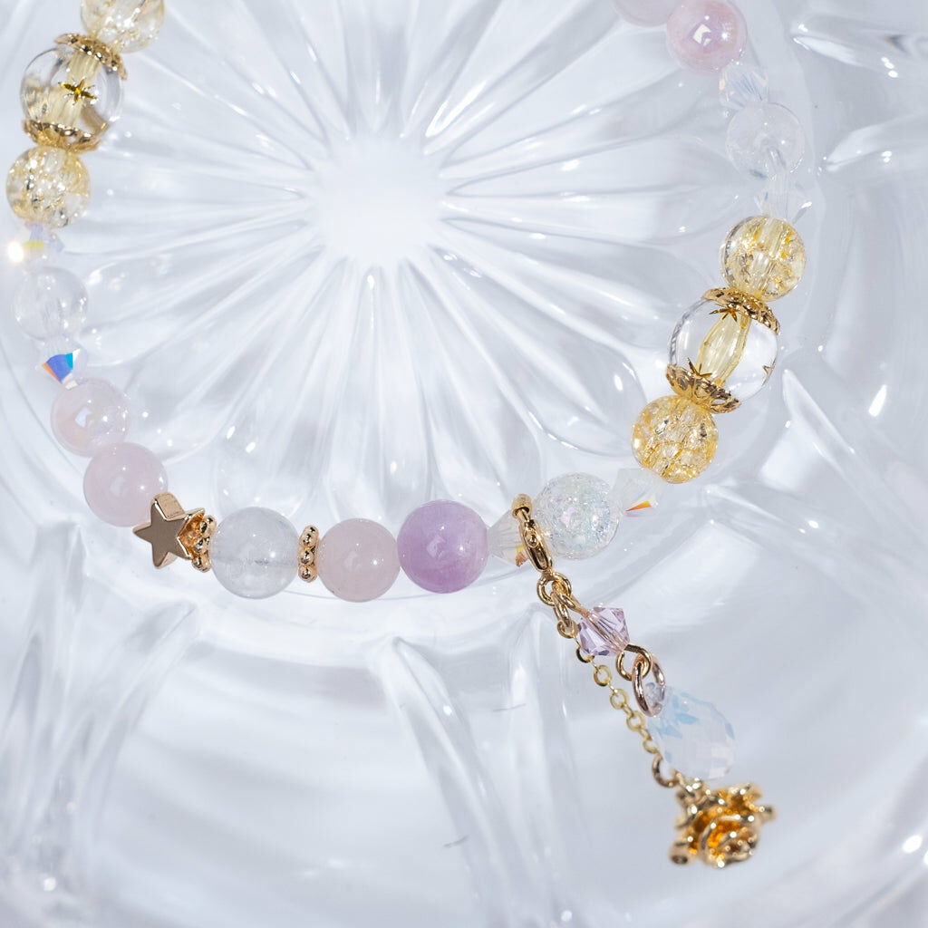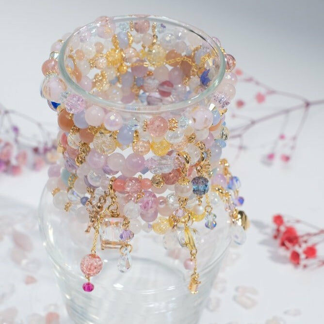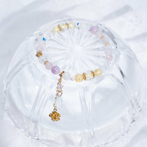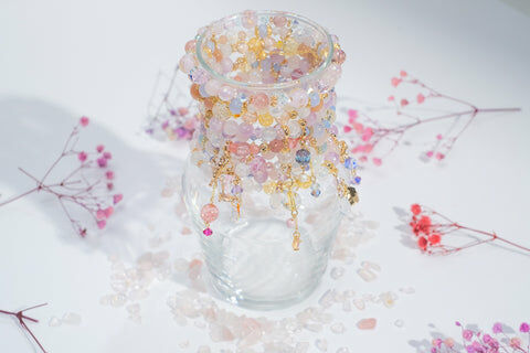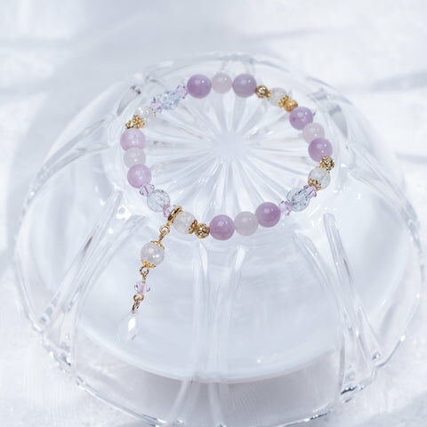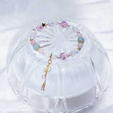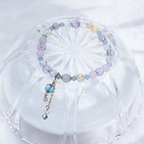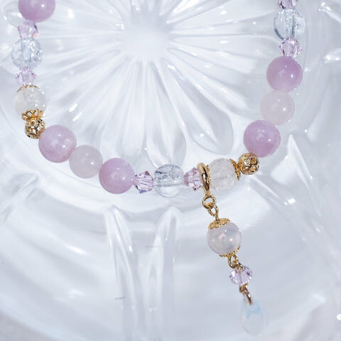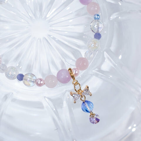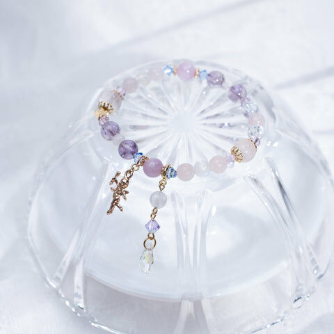 { 月亮石 | 粉晶 | 紫鋰輝 | 施華洛世奇水晶 | 日本玻璃珠 }