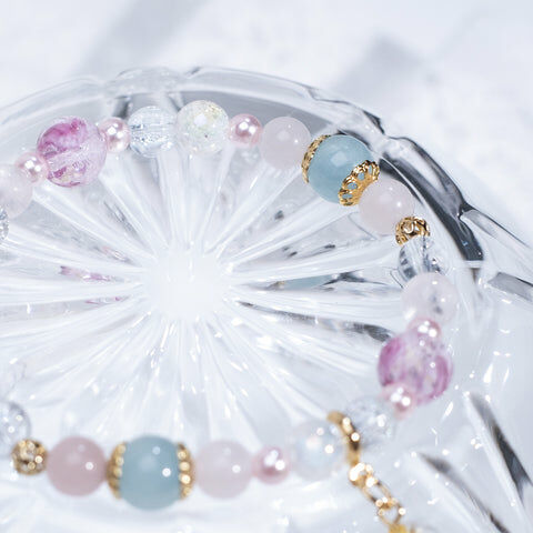 { 粉晶 | 海藍寶 | 施華洛世奇水晶珍珠 | 日本玻璃珠 }