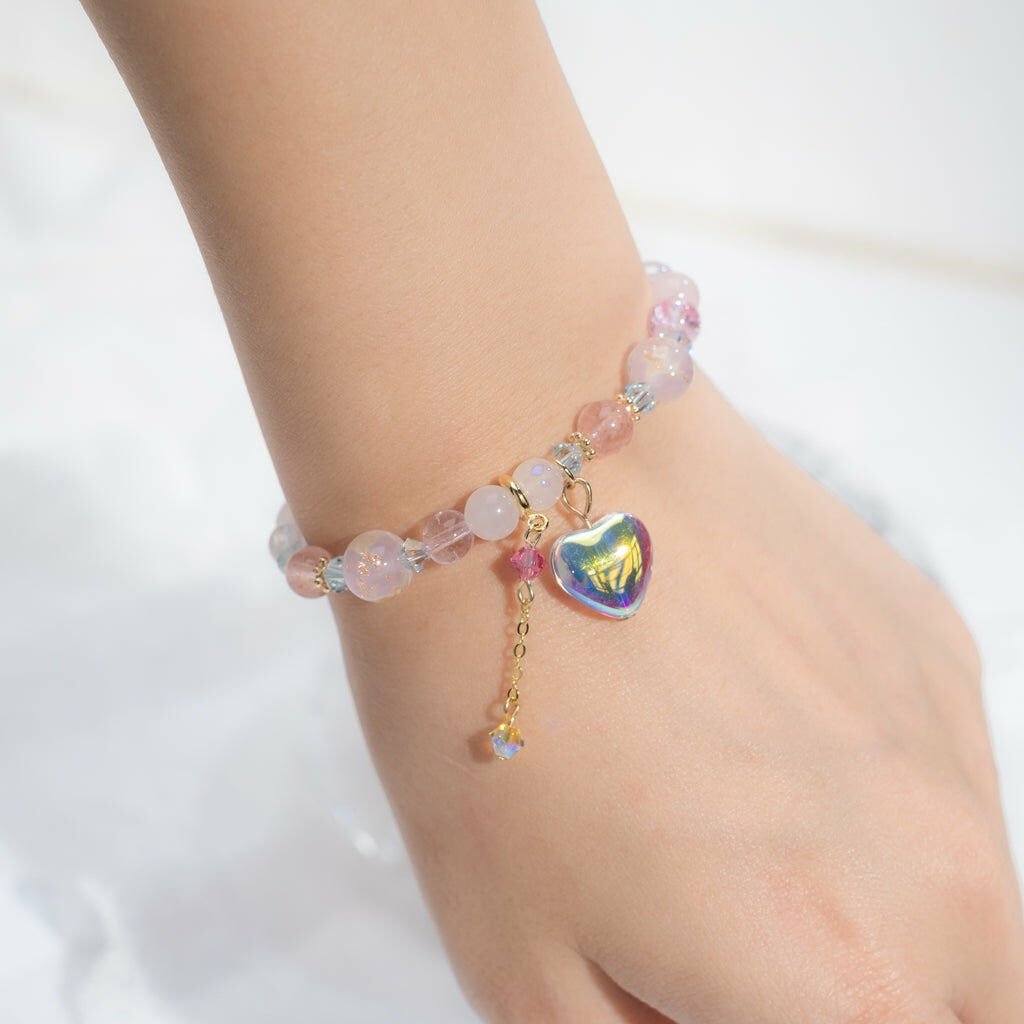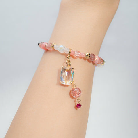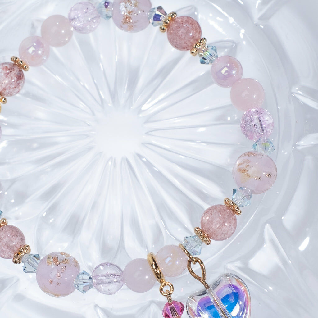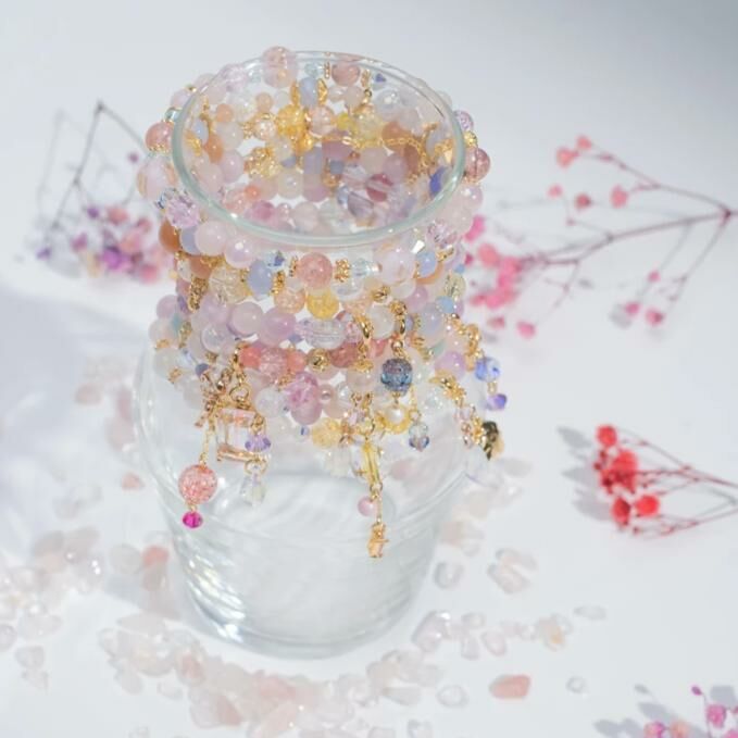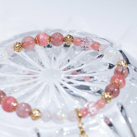 { 粉晶 | 草莓晶 | 施華洛世奇水晶 | 日本玻璃珠 }