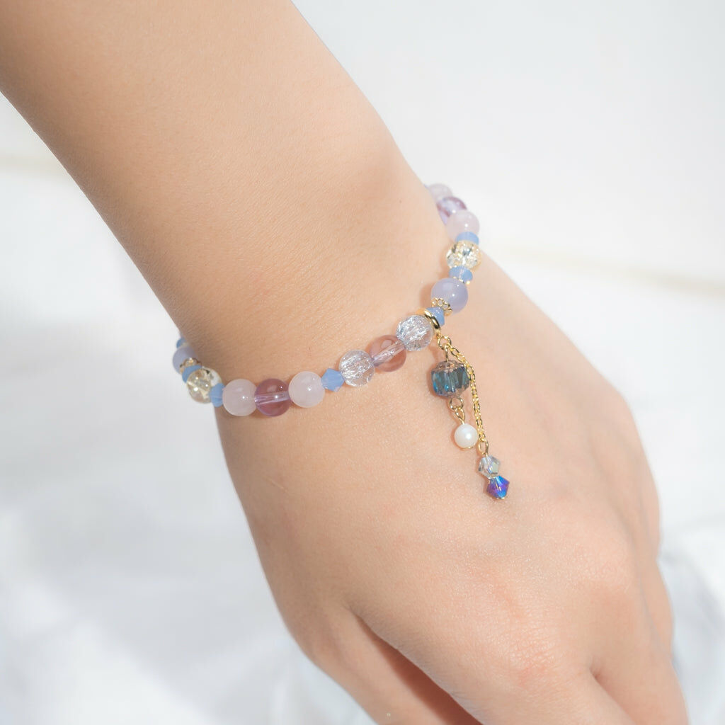 { 藍紋瑪瑙 | 夢幻薰衣草 | 粉晶 | 施華洛世奇水晶 | 玻璃珠 }
