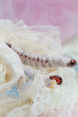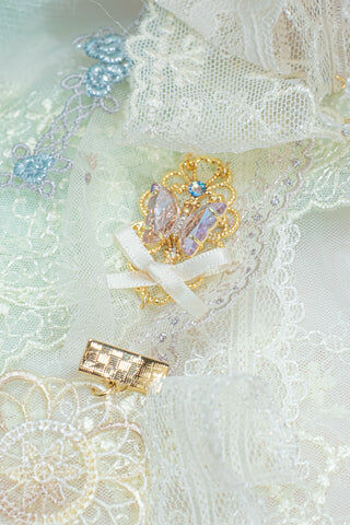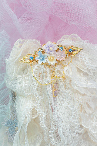 人手製作樹脂黏土花朵 | 固化保護層 | 施華洛世奇水晶 | 日本玻璃珠 | 台灣蕾絲絲帶 | 琥珀色香蕉夾