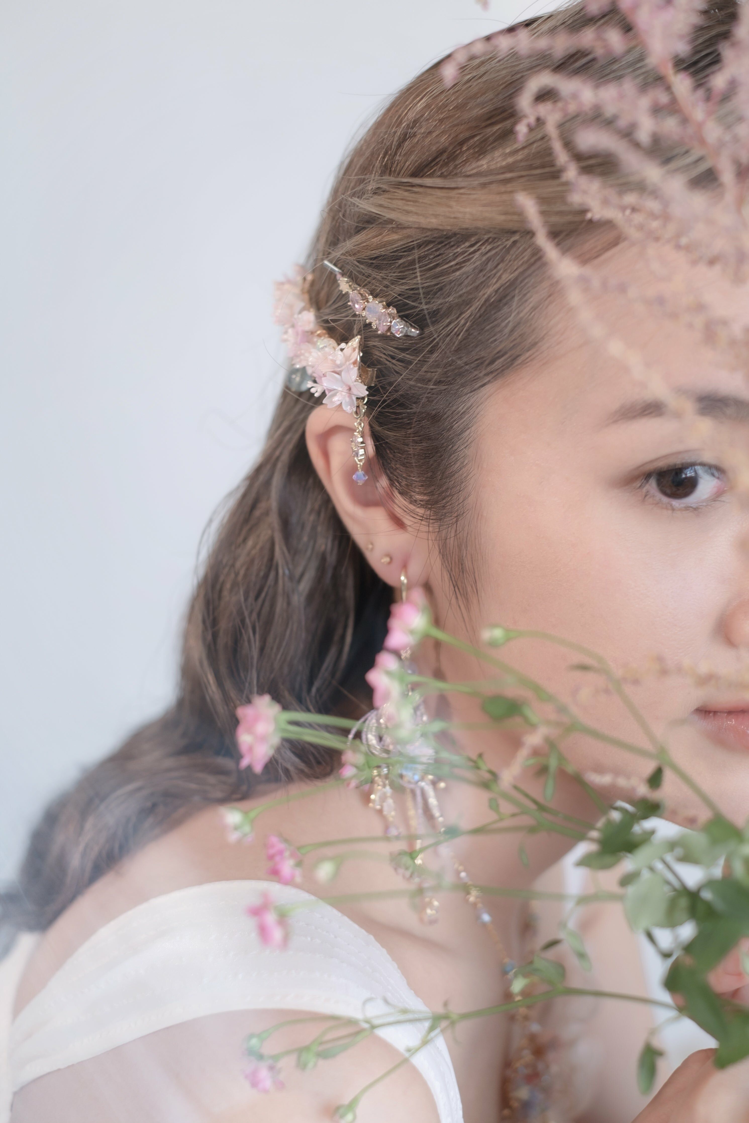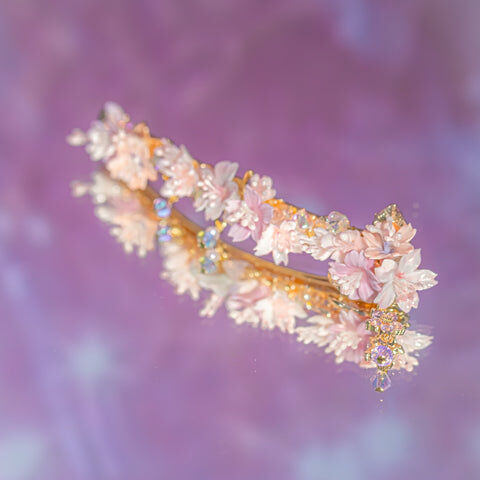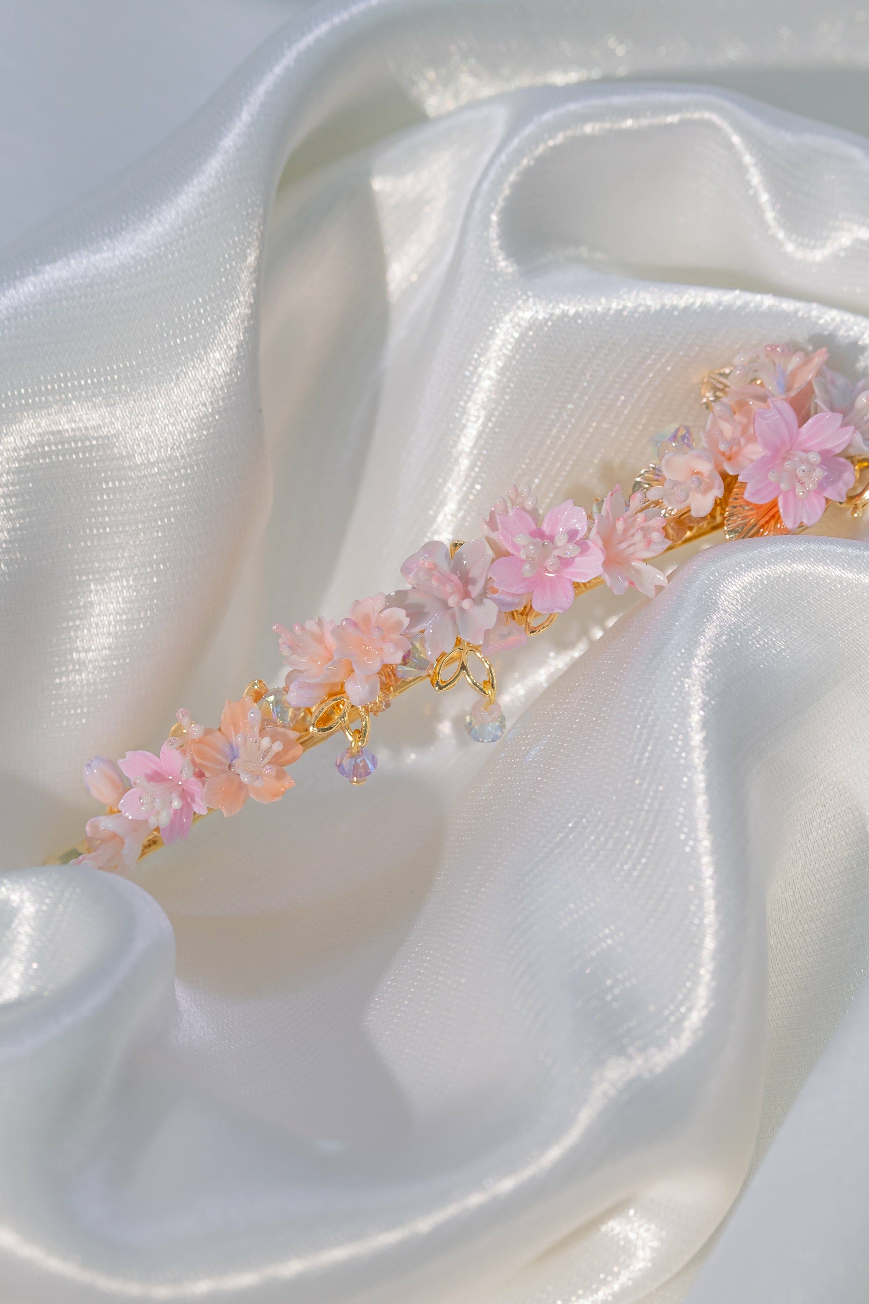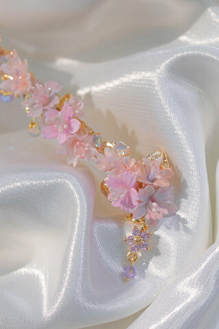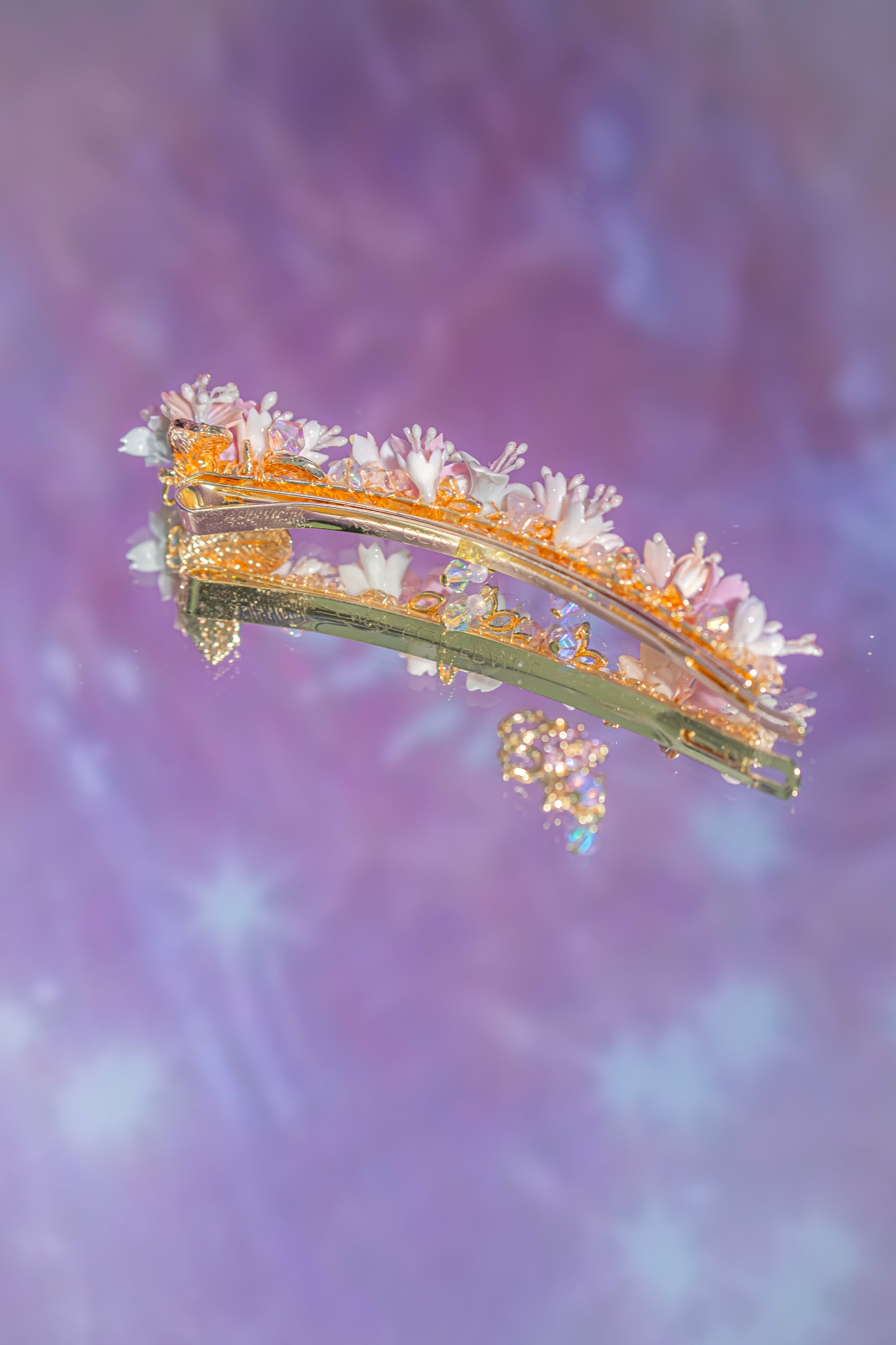 Gold Plated Artistic Wire | Swarovski Crystal | Handcrafted Resin Clay Flowers | UV Hardening Coating | Gold-plated Metal Clip