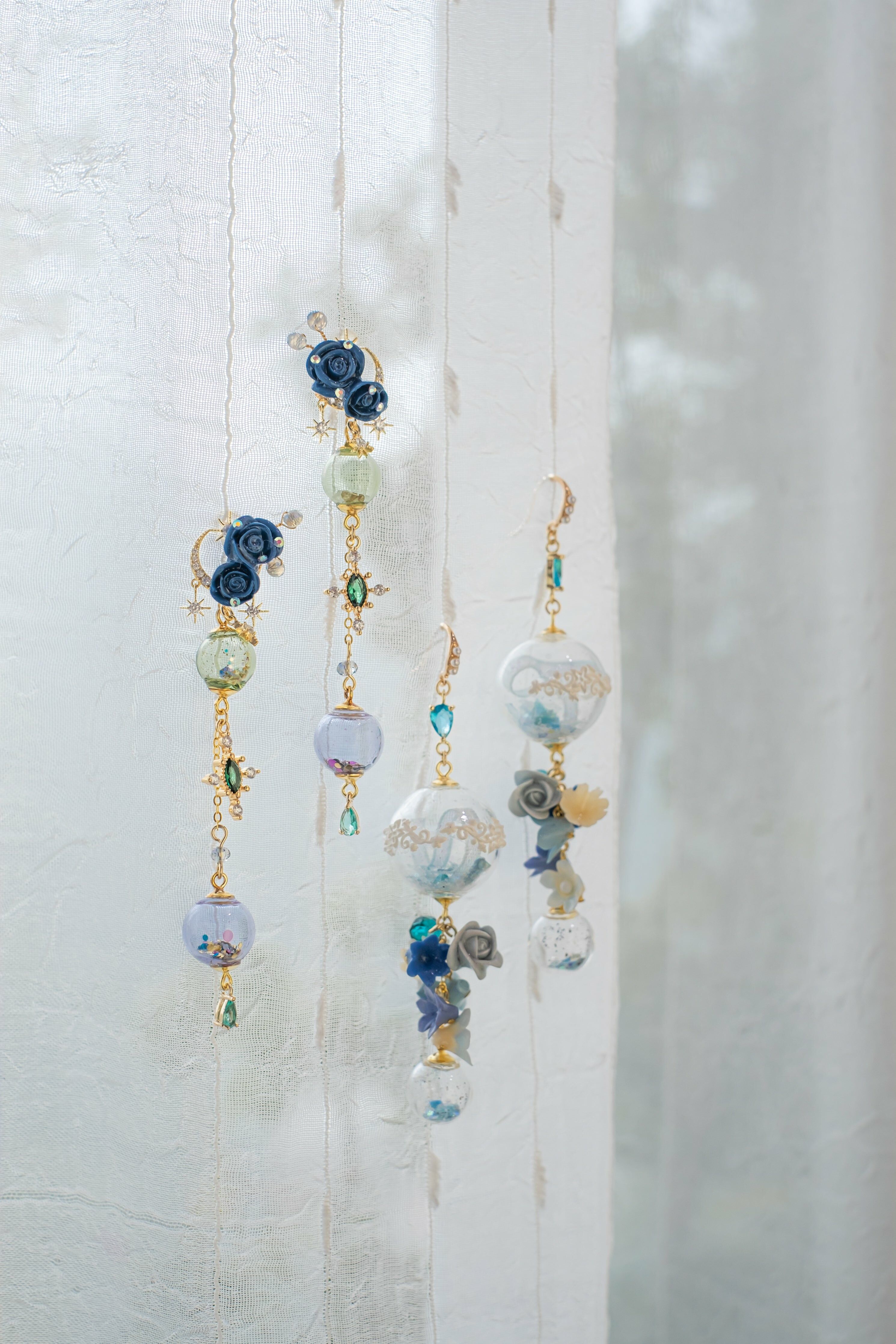 鍍金線 | 施華洛世奇水晶 | 手製樹脂黏土花 | UV膠強化保護層 | S925銀針