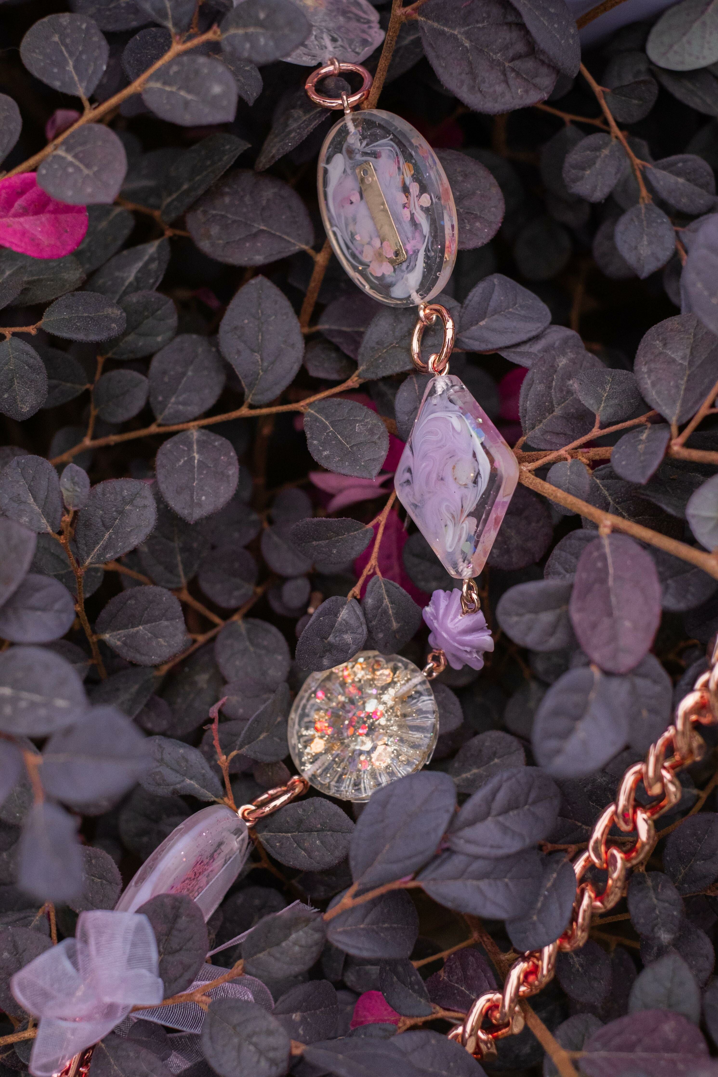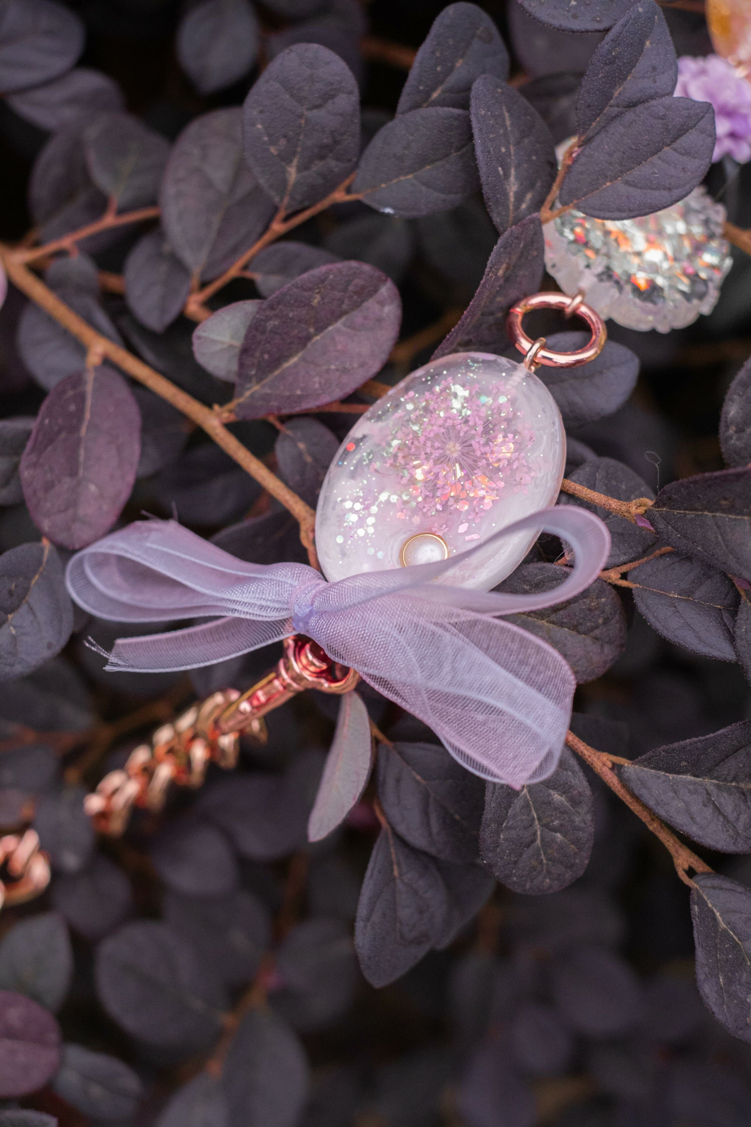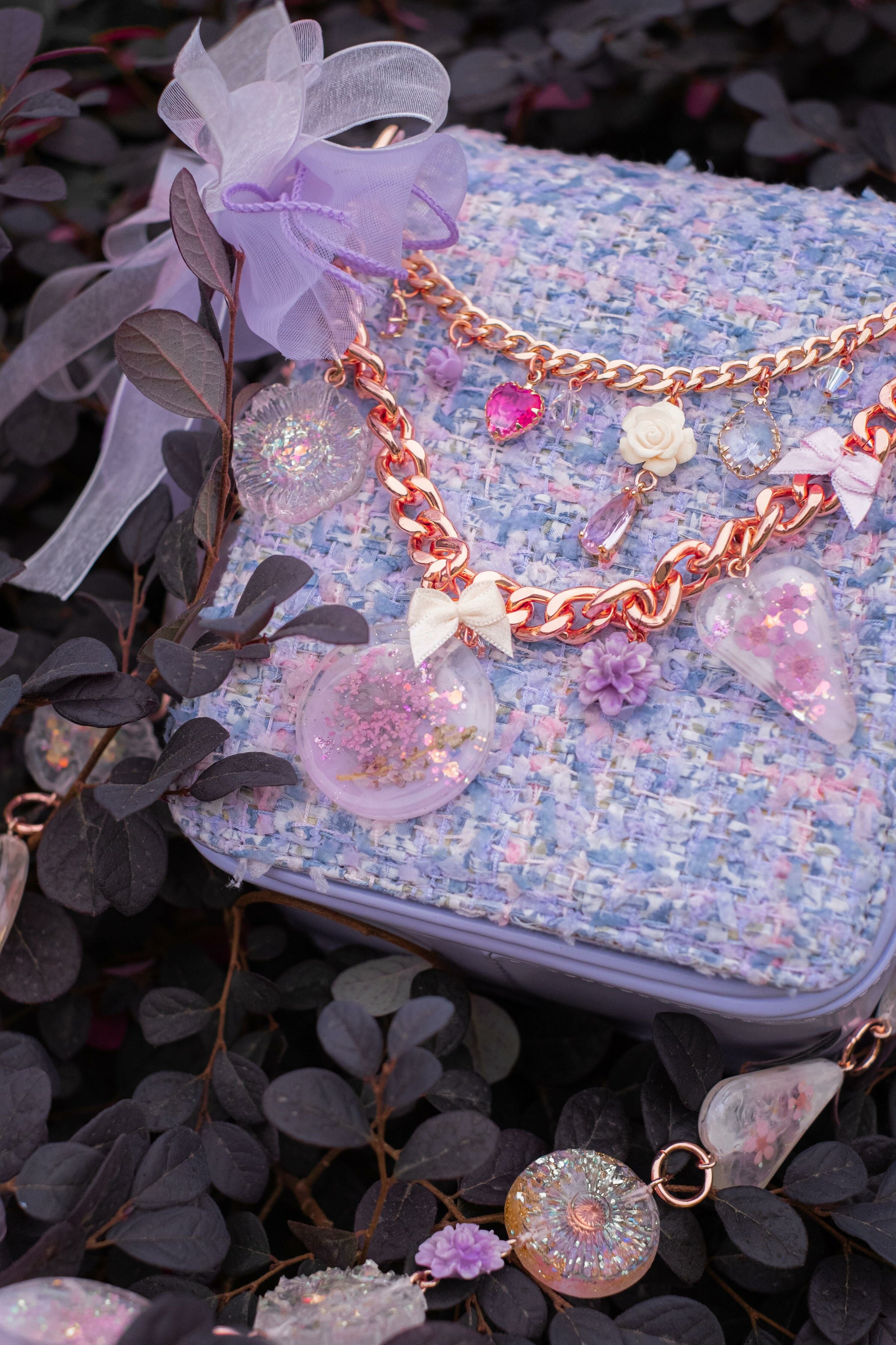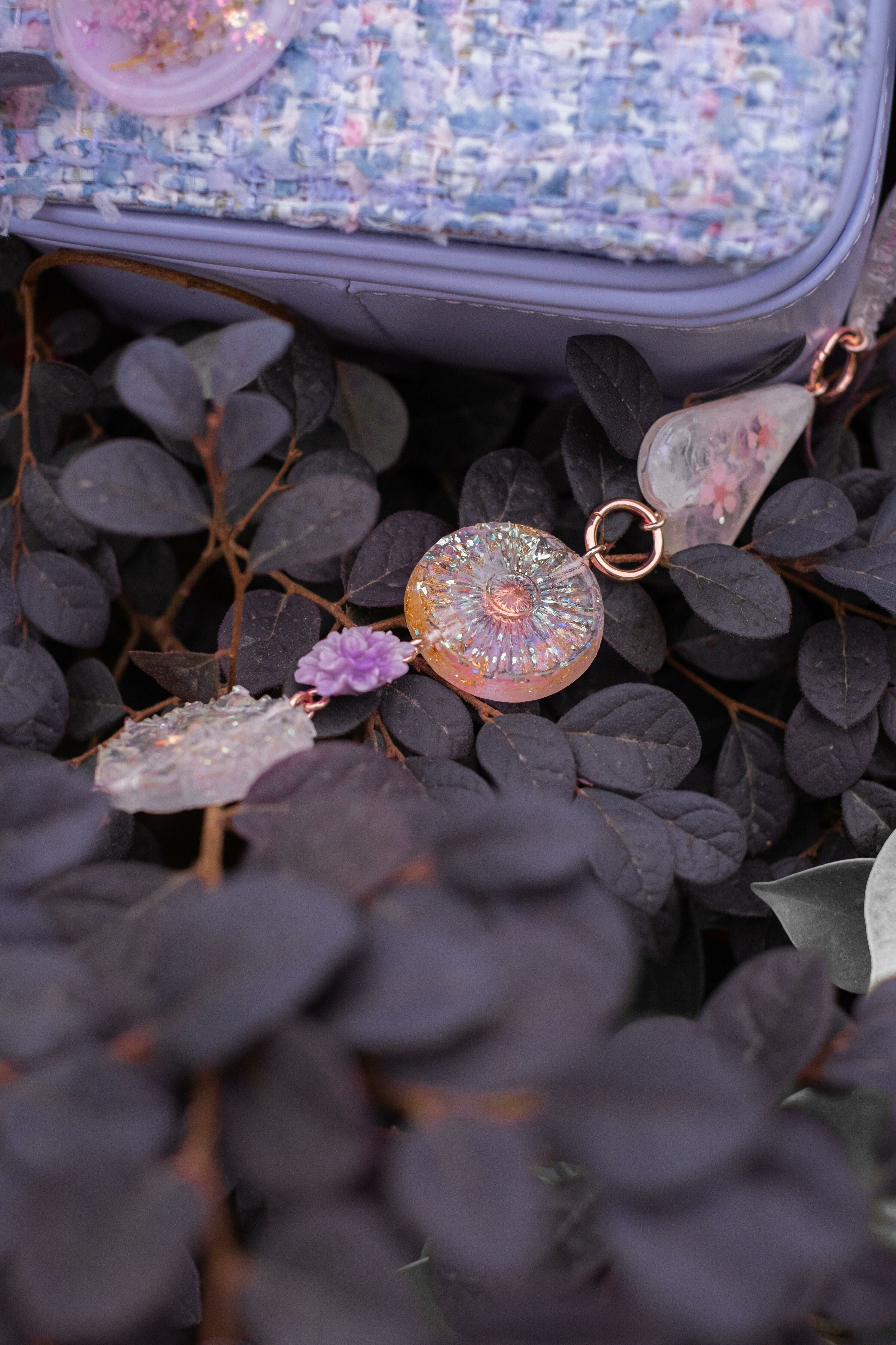 Pamycarie手製的肩帶和袋子吊飾,所使用的是我們香港手工製作的樹脂吊飾,再一顆顆組合成可拆式袋子配飾。每顆也有乾花、亮片和暈染顏料營造不同的意境,另外也加入巴洛克裝飾風格元素配件,絲帶蝴蝶結和施華洛水晶。將所有東西連接就成為閃閃發亮的復古飾帶,猶如多用途的飾物把袋子裝飾起來,令袋子成為一件藝術品。