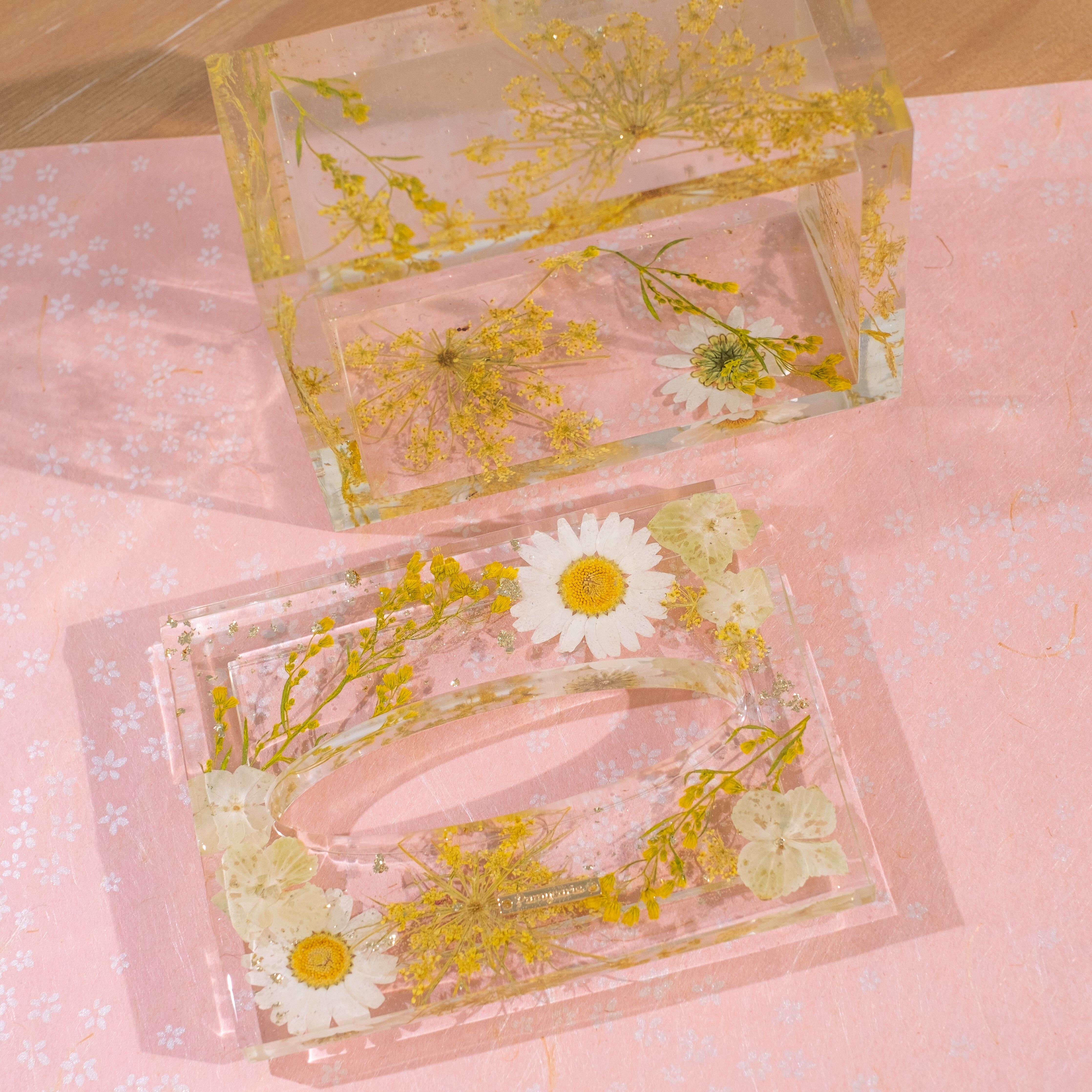 Fish tank design that allows you to gaze into the container through floating wild pansy & daisy flowers. Commonly use for cotton pad and potpourri storage. Best fit for objects within 105x75x40MM.