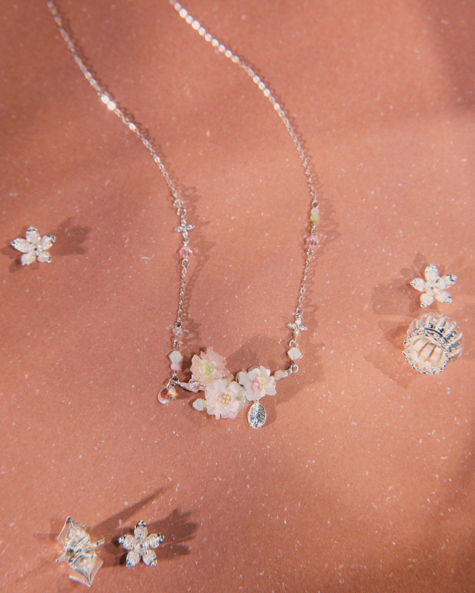 In the 2023 flower season of sakuras, Pamycarie sincerely hopes that everyone could experience the heart leaps and insecurities when having a crush. Sometimes we are unsure about presenting our true selves, at other times we desire to be as lucid as we could. Inspired by such complex feelings, Pamycarie creates the translucent sakuras in contrast to the pink and white sakuras, which imply the depiction of real and surreal. Novel designs have also enriched the visual impact of the collection, such as the hand-drawn sakura azure globule, organdy and wire-wrapped flowers, not to mention the playful seed bead choker. May the sakuras accompany you as always, no matter if you could solve the riddles.
