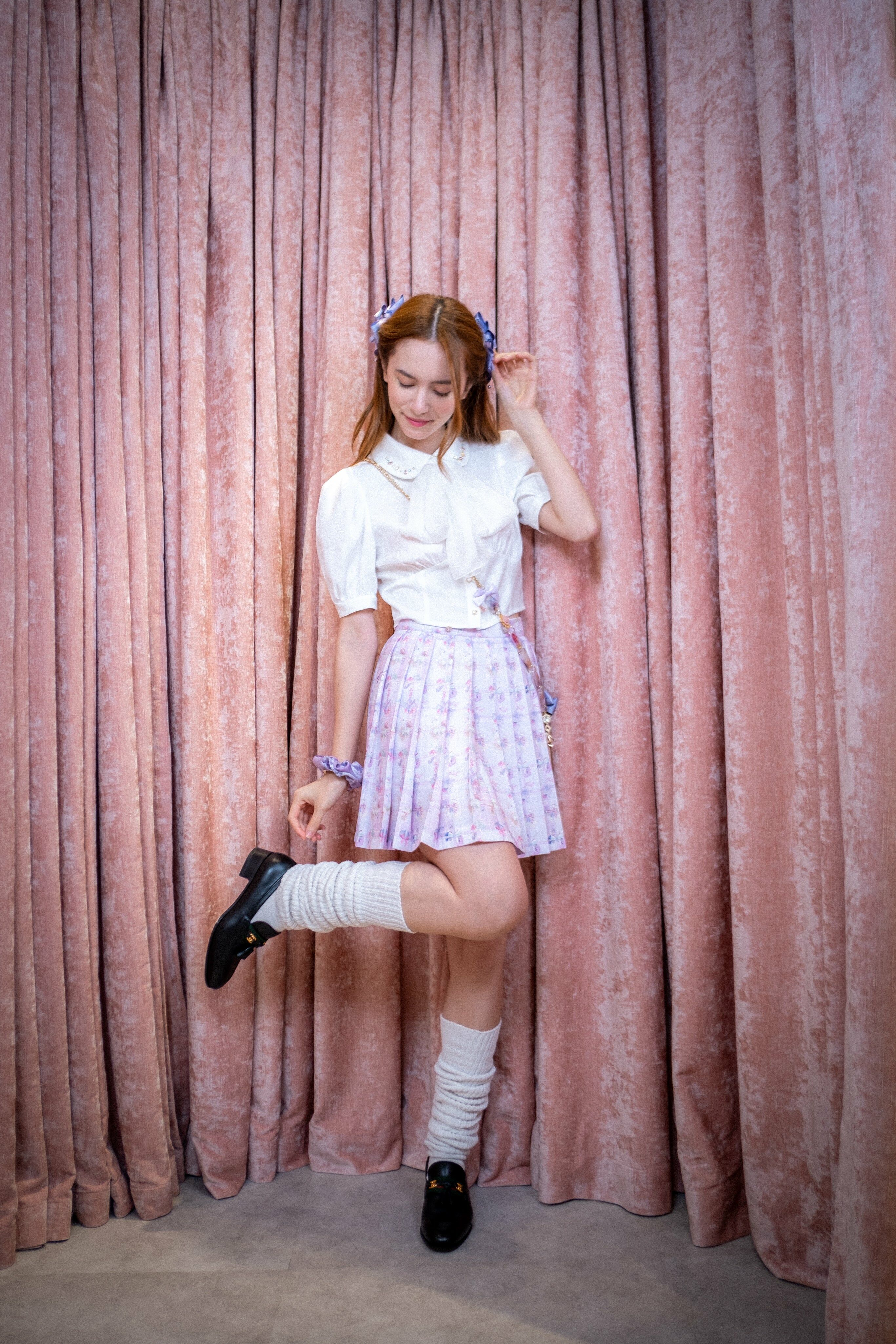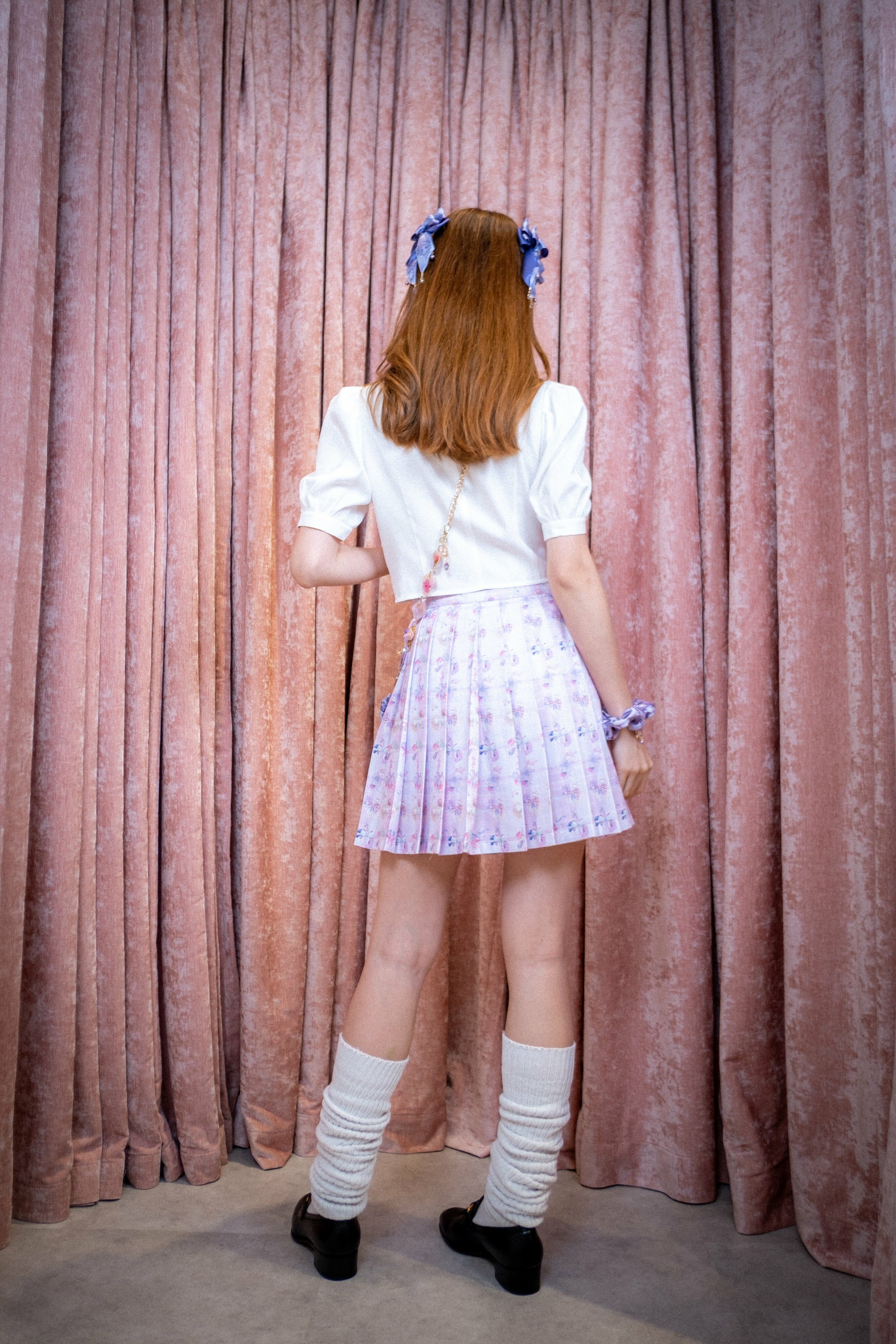 百褶裙配可拆式吊墜 (印花/玫粉/黑)