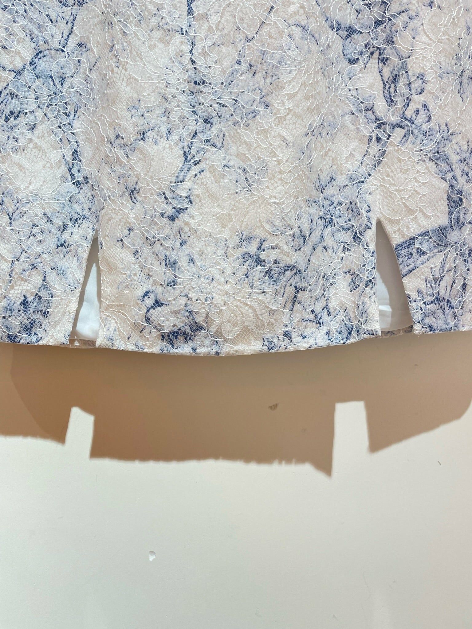 Porcelain Cheongsam Slit Dress & Sheer Skirt Cover Set (Blue/White)