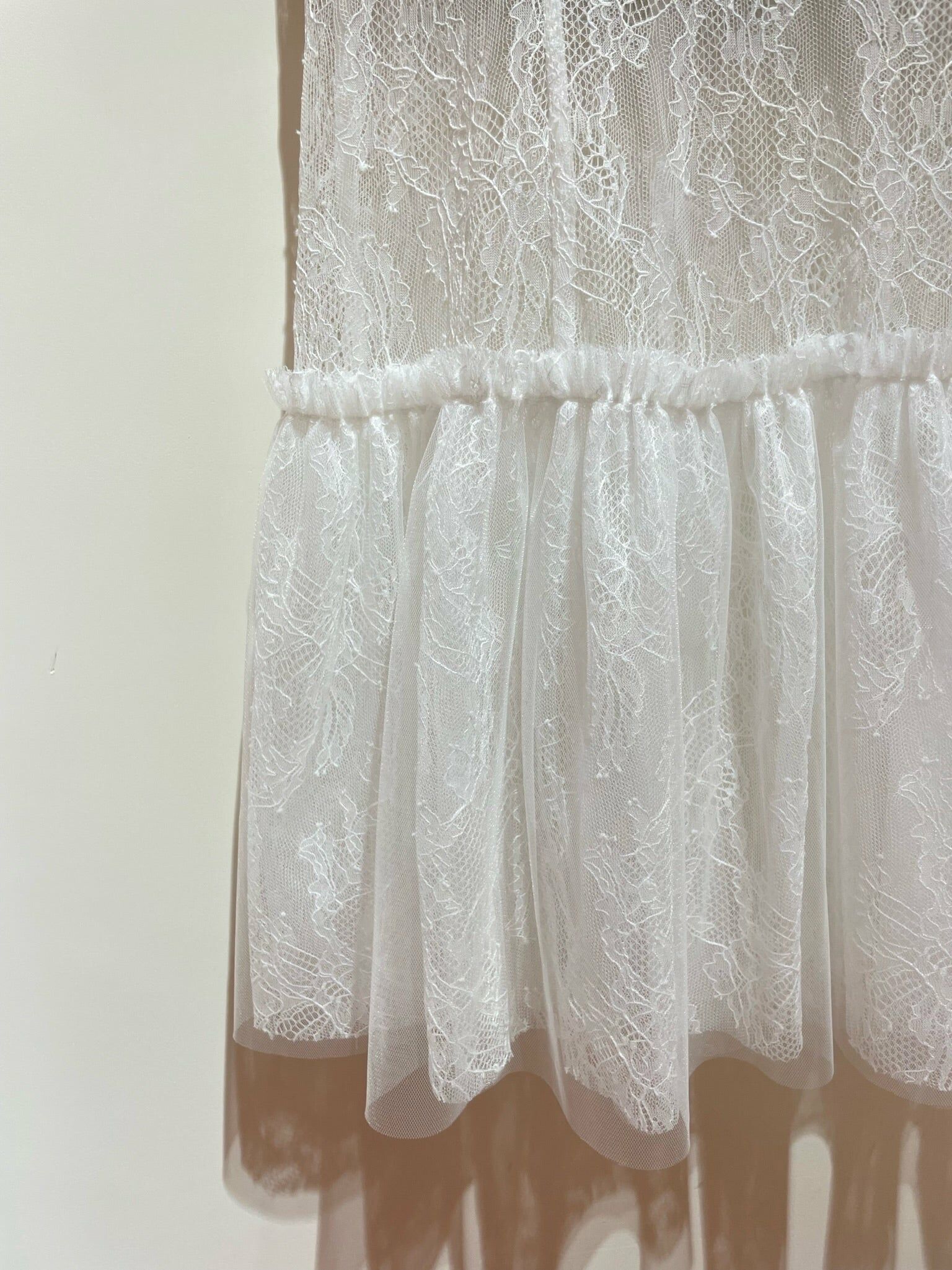 復古立領設計凸顯女人味,採用修身剪裁,旁邊有小開釵,突顯曲線。帶點東方韻味但不會過時,加上夢幻感的魚尾剪裁的裙罩,傳統與現代的融合得剛剛好。裙罩可獨立使用,靈活穿搭。