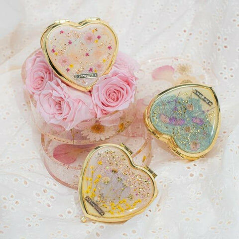 夏日特調樹脂乾燥花隨身鏡盒 - 花草茶