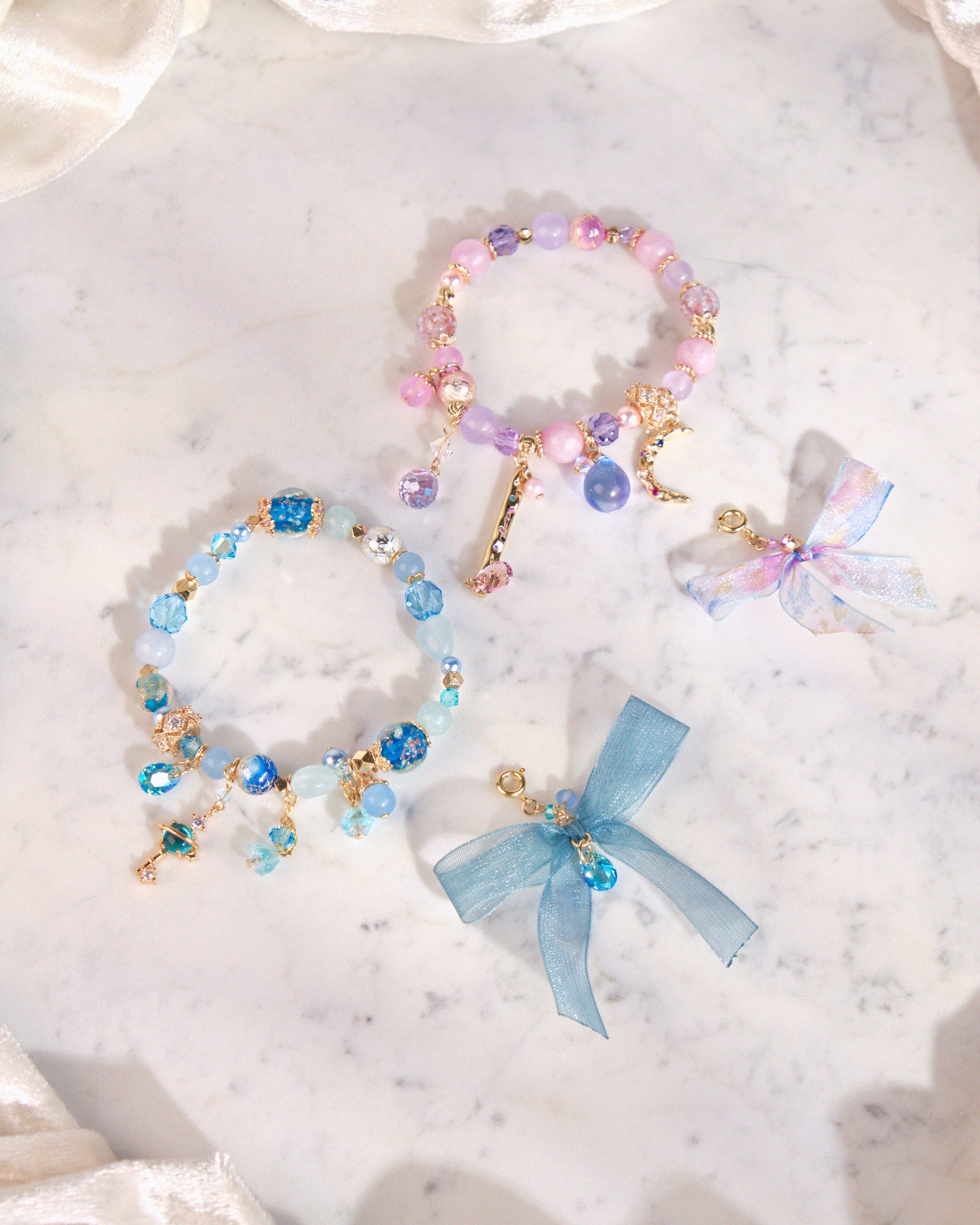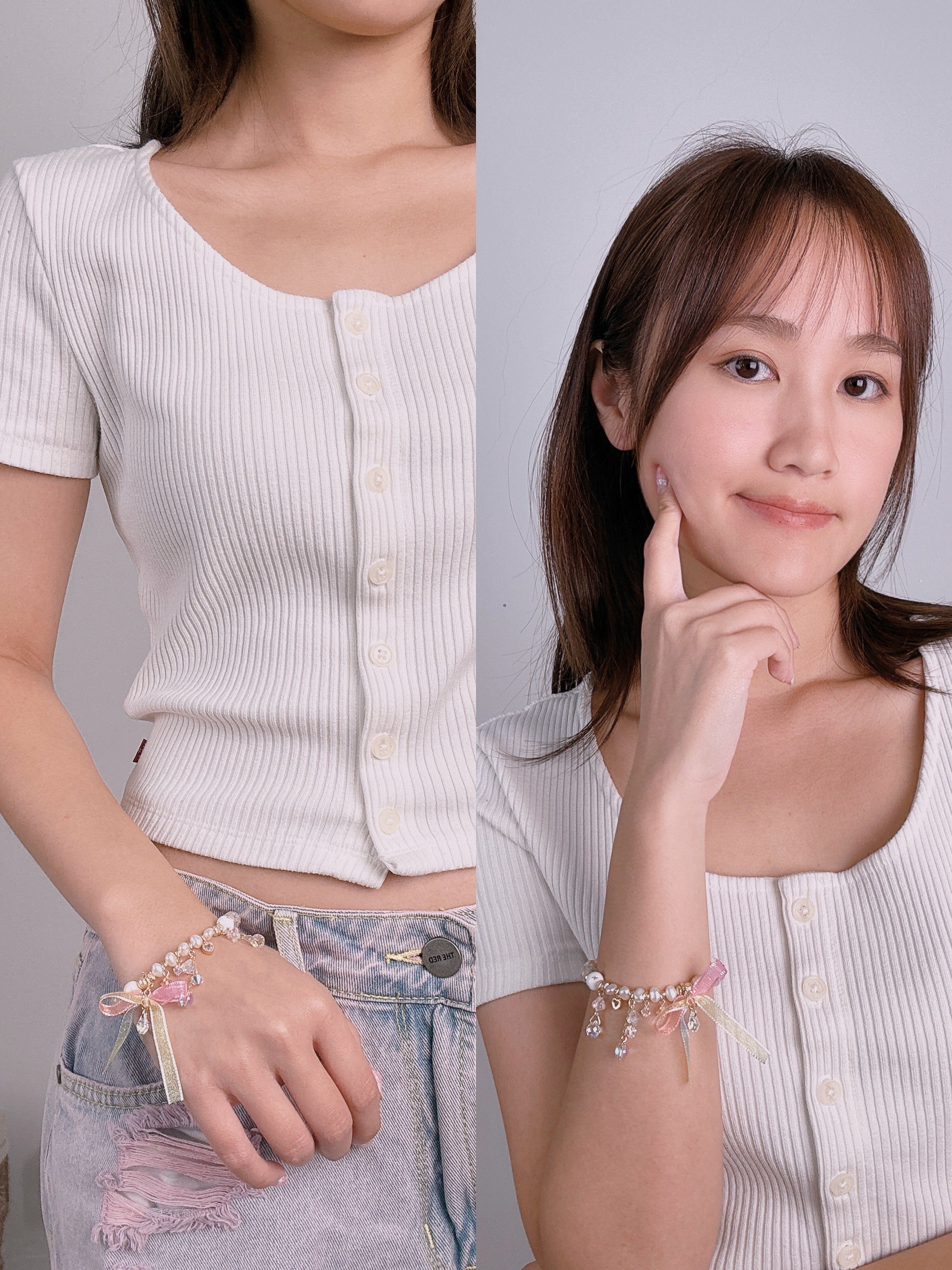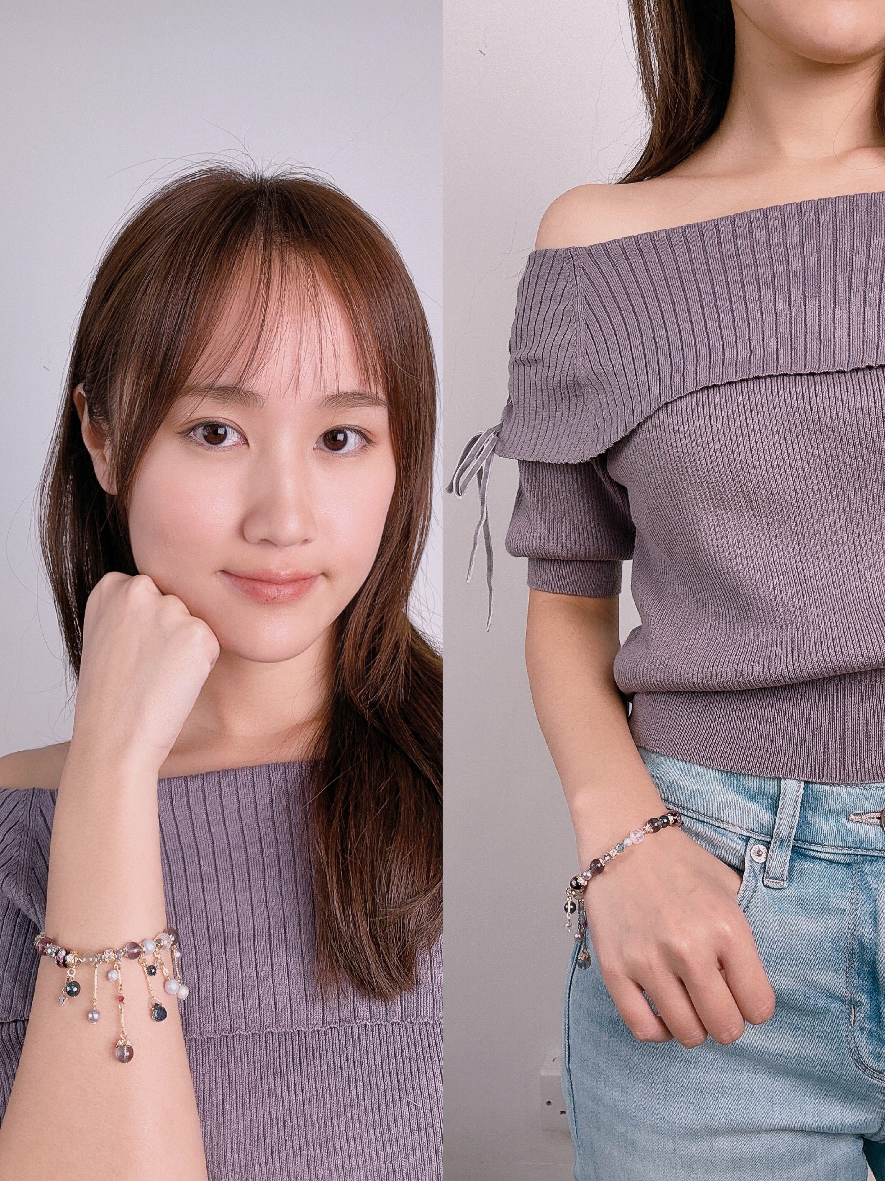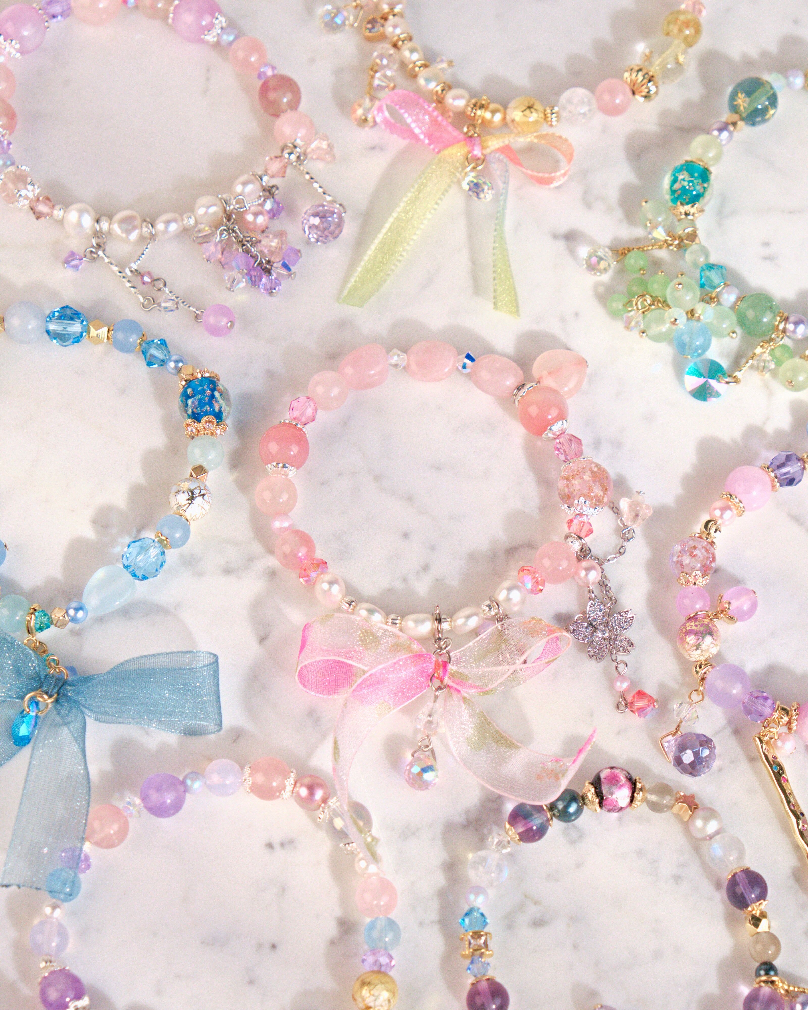 天然水晶加上蝴蝶結的神仙組合!百搭又甜美,手鏈中加入了不少巴洛克淡水珍珠,讓作品又增添了另一份溫柔的感覺。手鏈有彈性,穿戴方便適合大部份手圍~