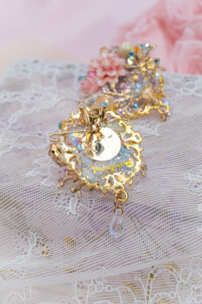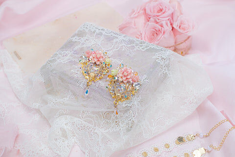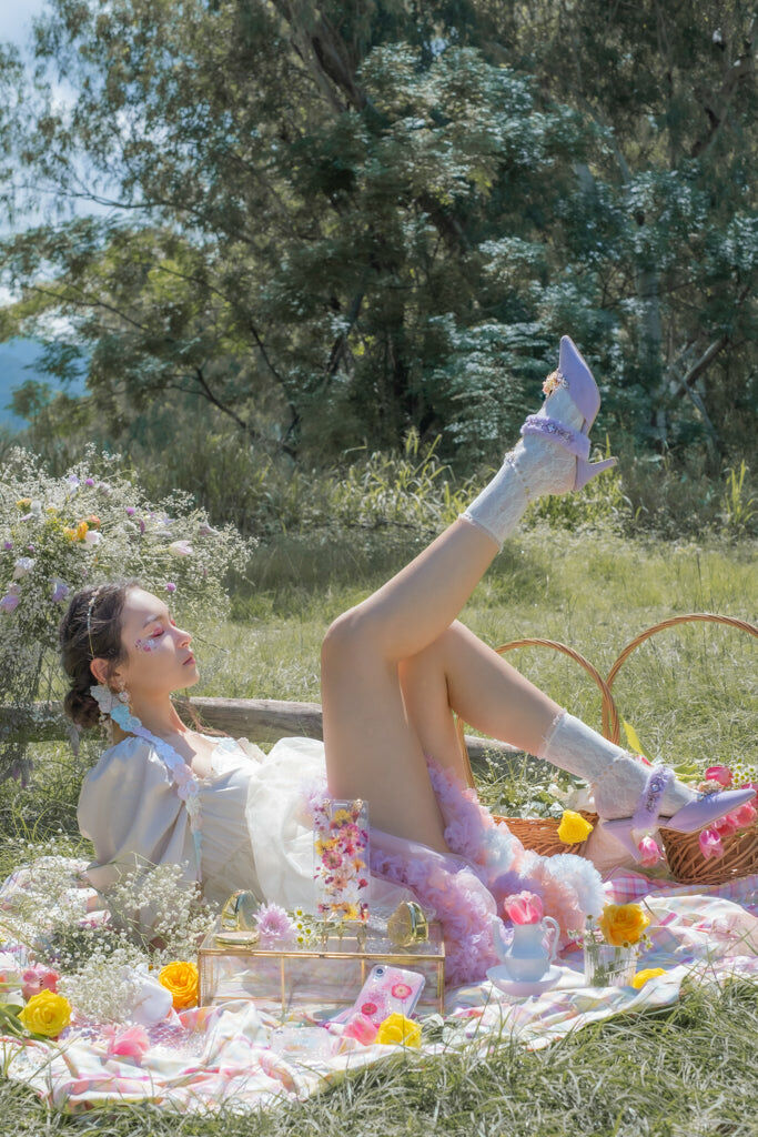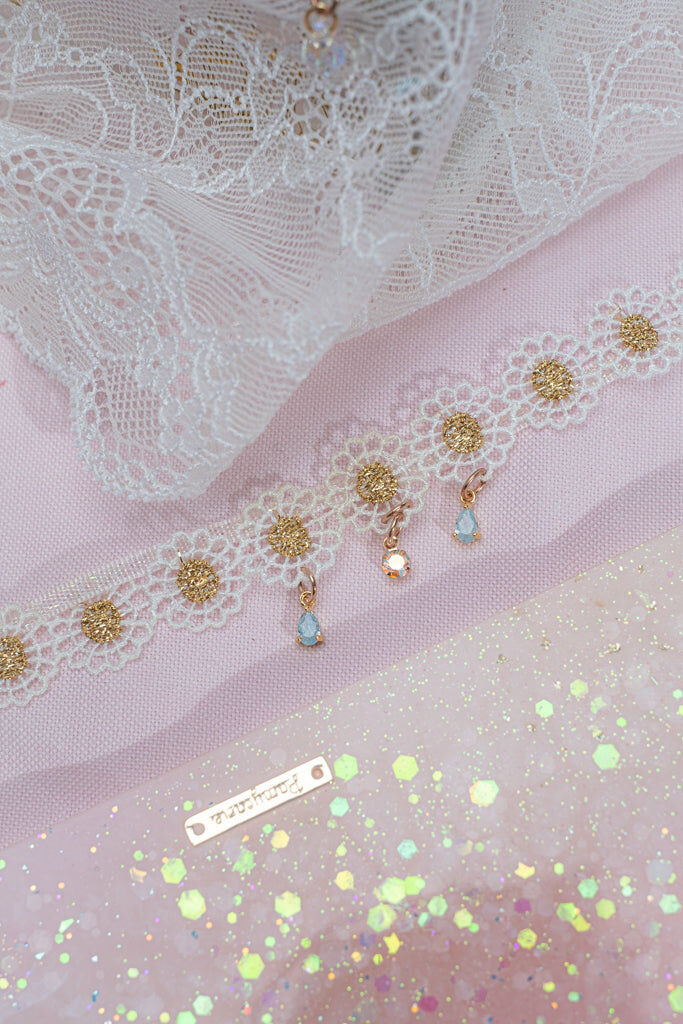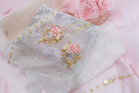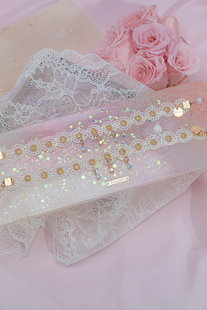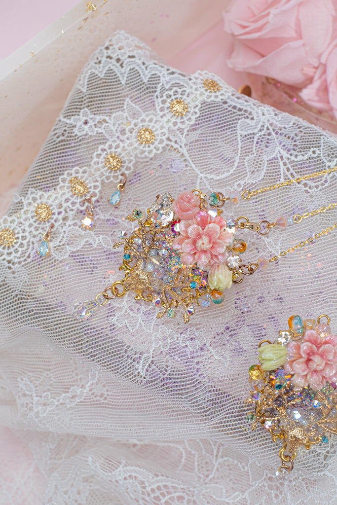 Handcrafted Hard Resin Gel Flowers | UV Extra-hardening Protection Gel | Swarovski Crystal | Taiwanese Lace Ribbon | 14K Gold-plated S925 Chain