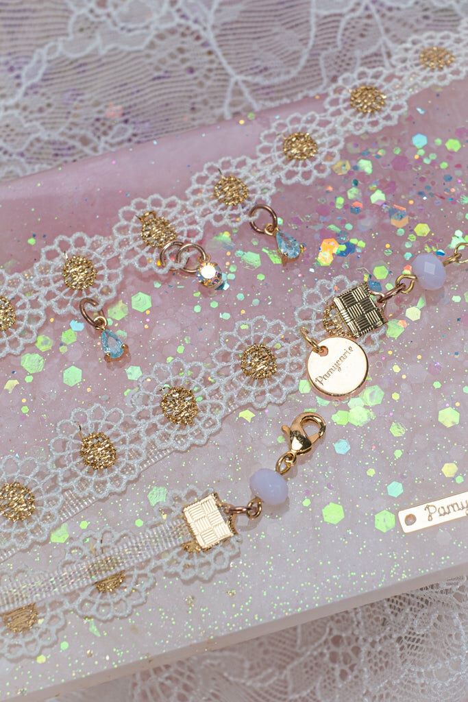 人手製作強硬水晶滴膠花朵 | 高固化保護層 | 施華洛世奇水晶 | 日本玻璃珠 | 台灣蕾絲絲帶 | 鍍14K金S925純銀鍊