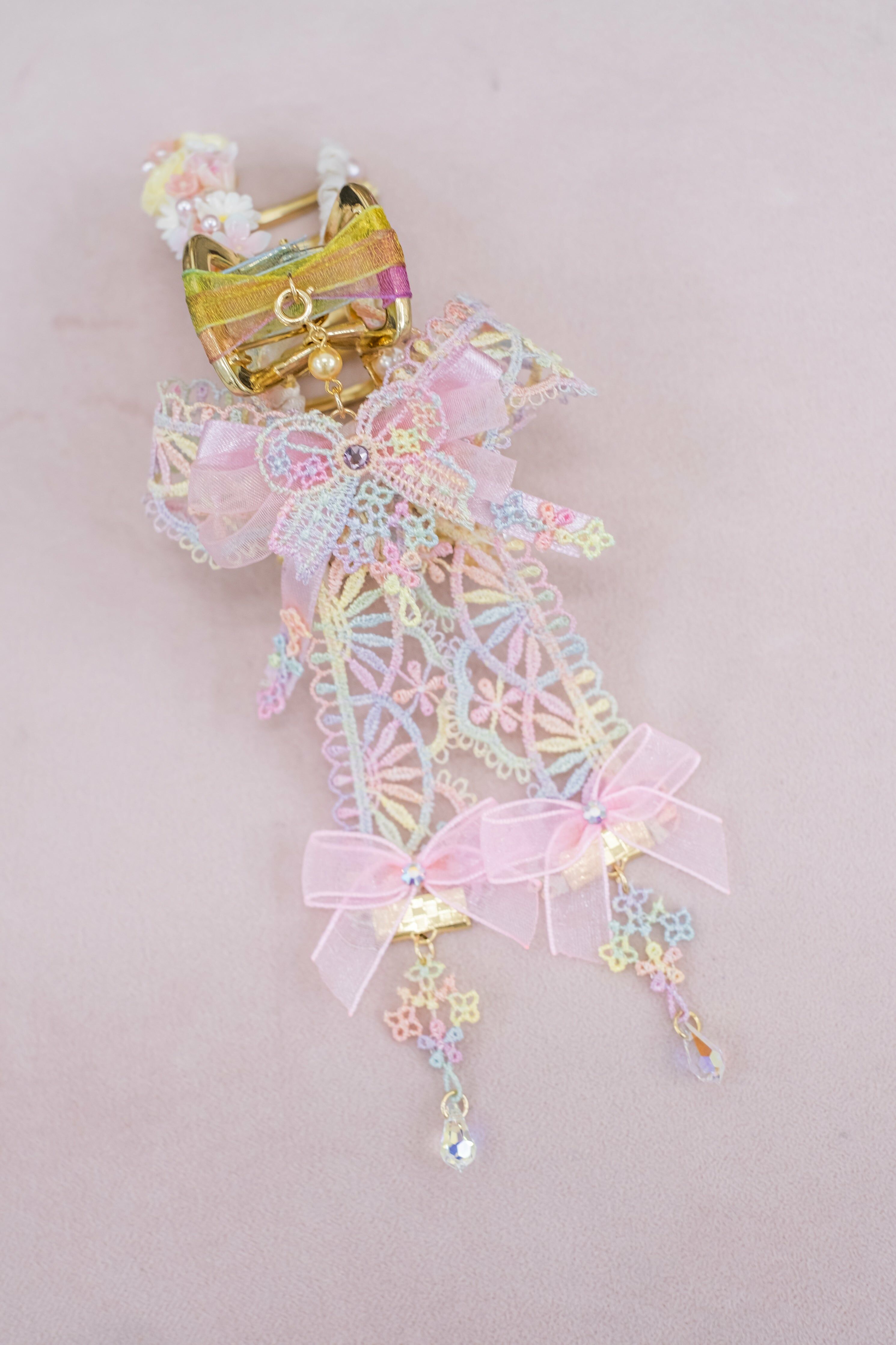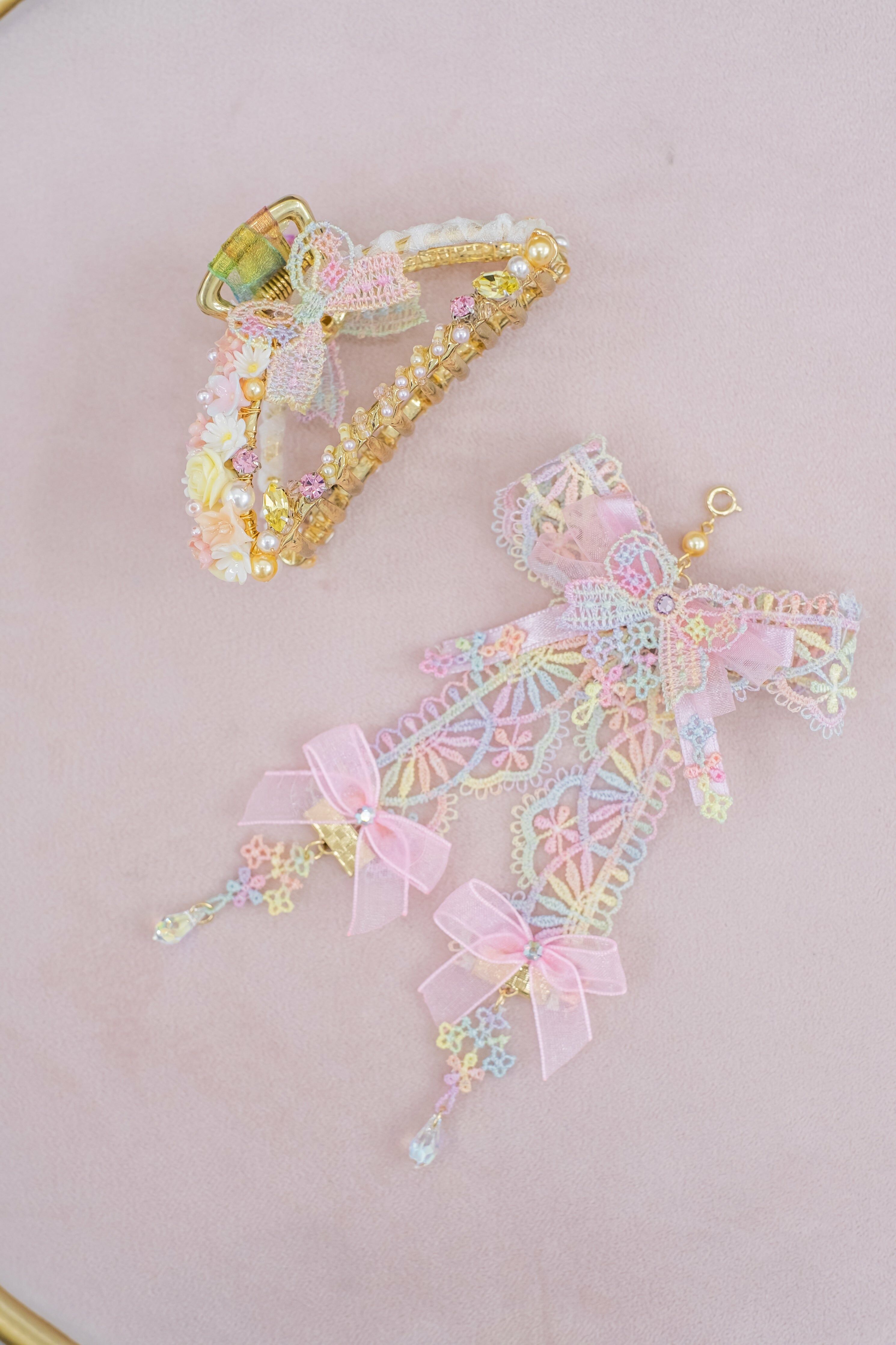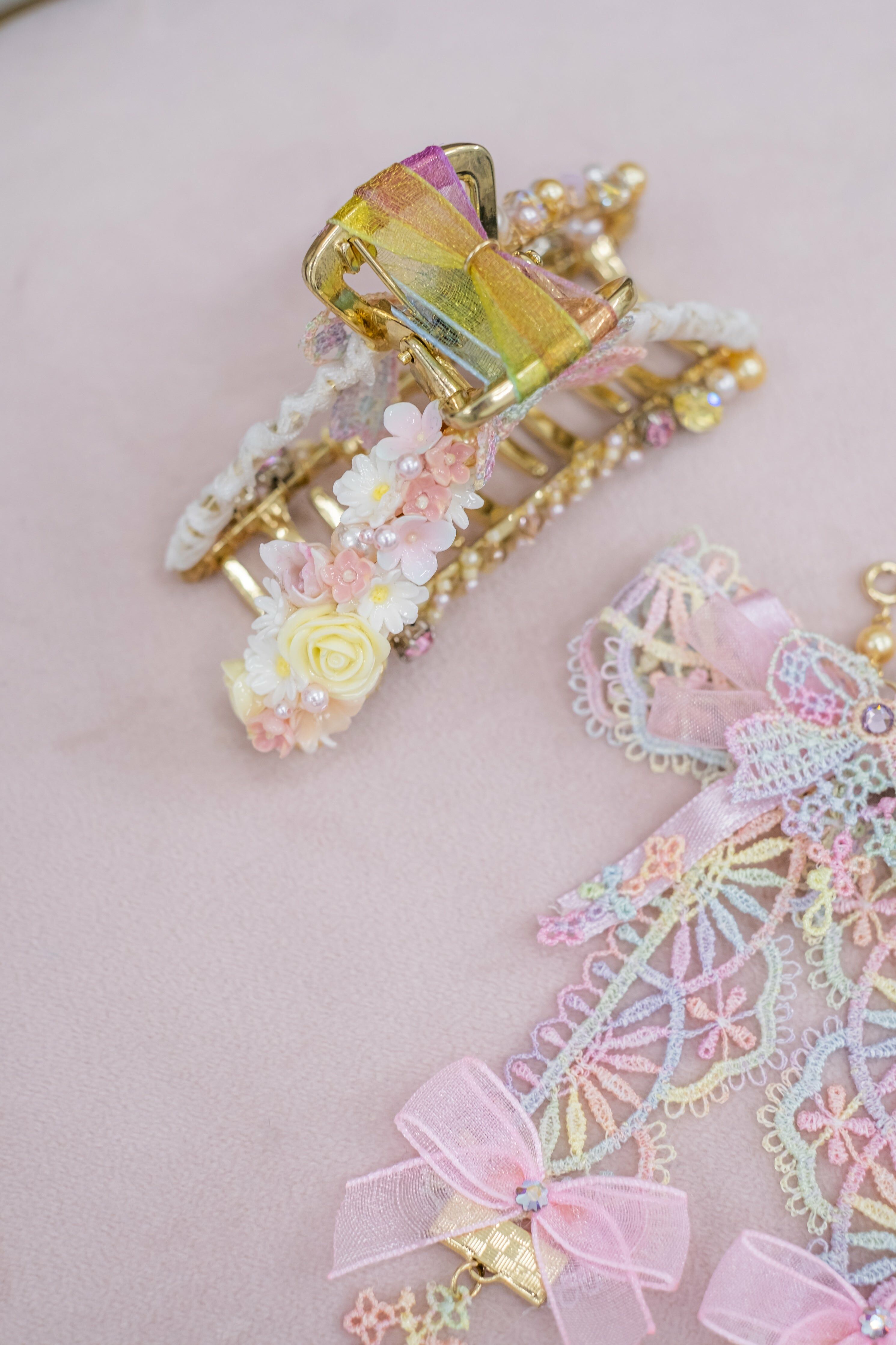柔軟的絲帶和金屬髮夾互相配合,