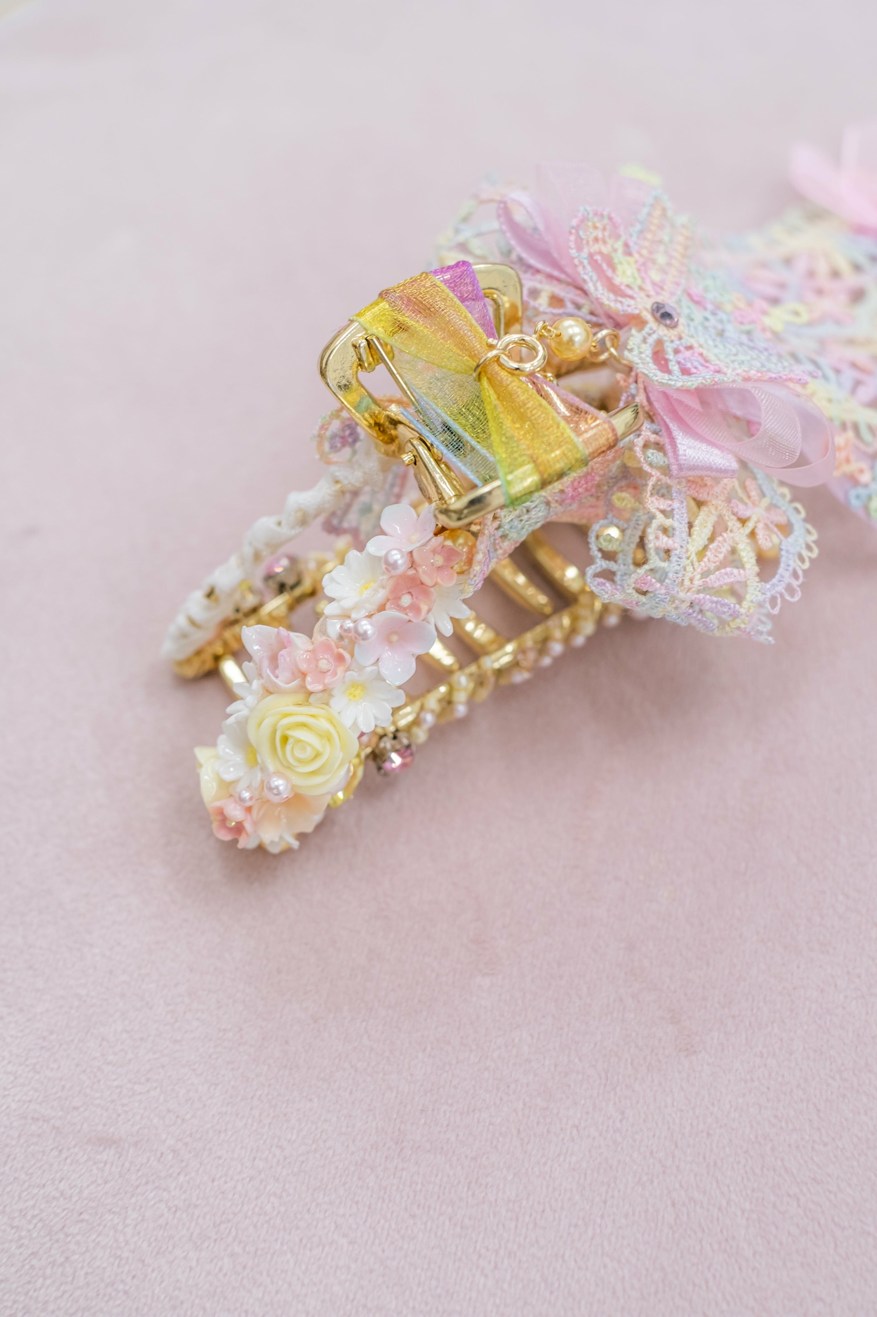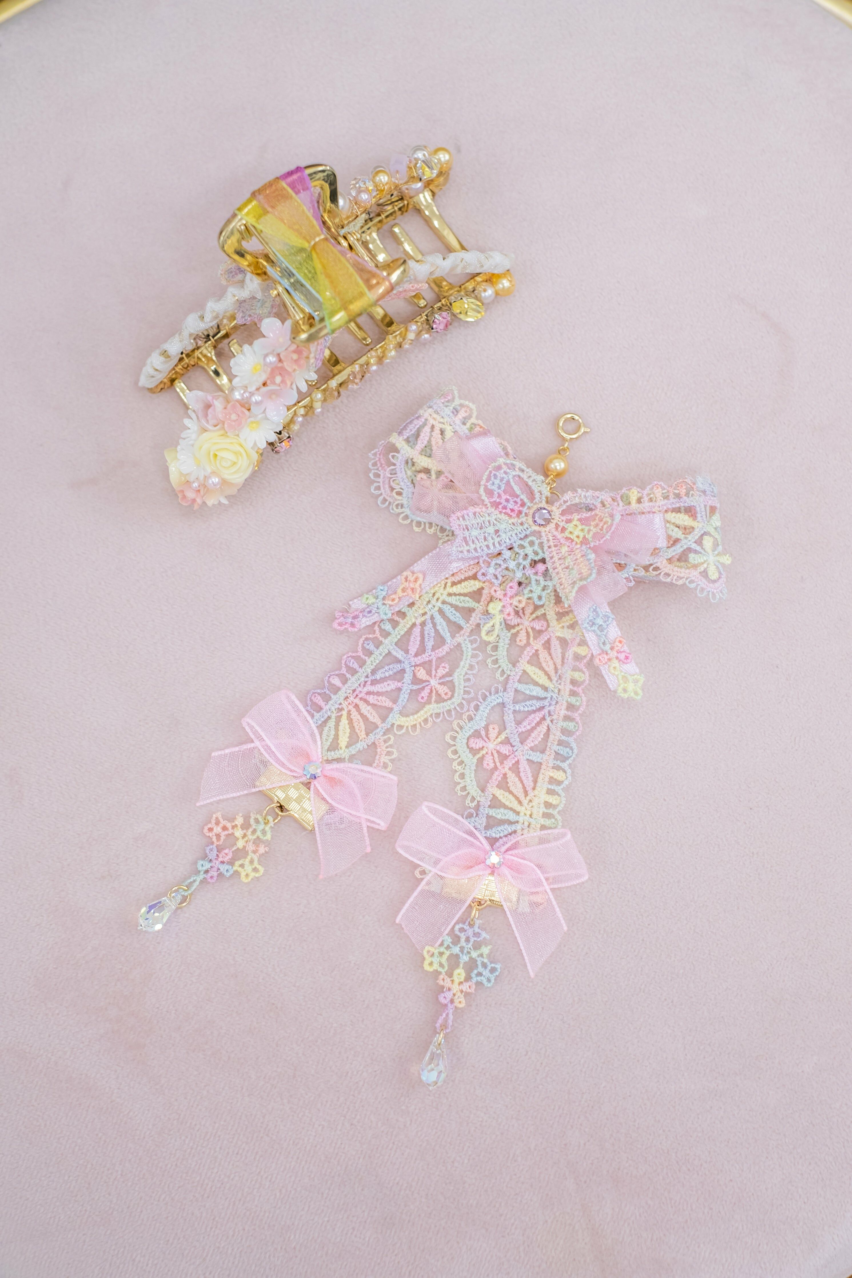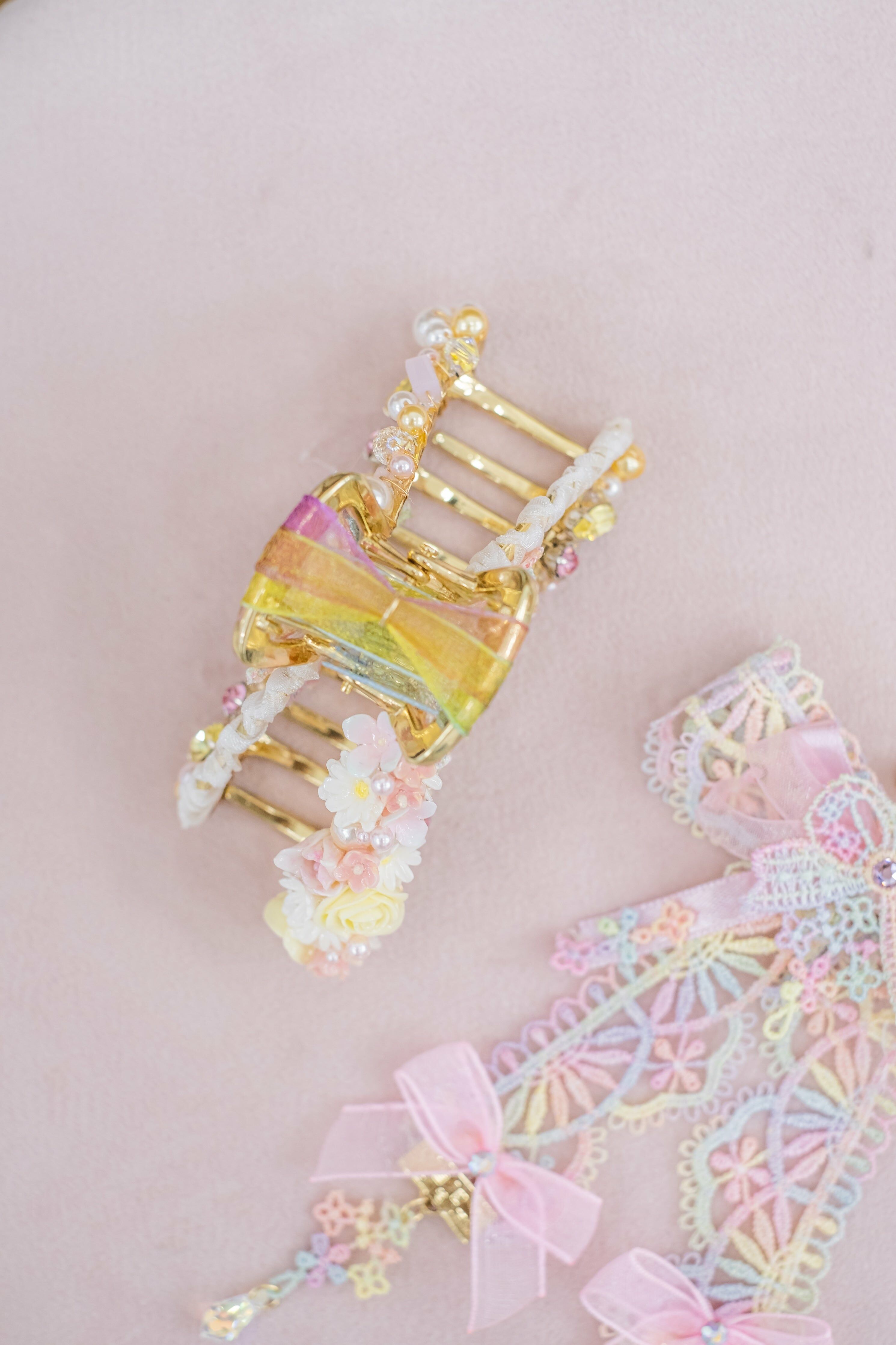 Swarovski Crystal | Natural Quartz | Japanese Glass Bead | Silver-plated Ornament | 14K Gold-plated Claw Clip