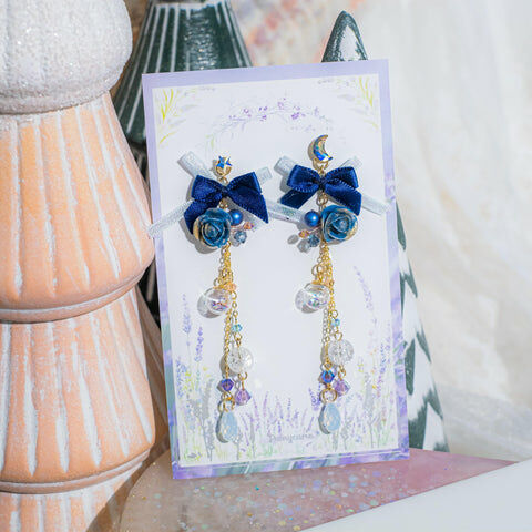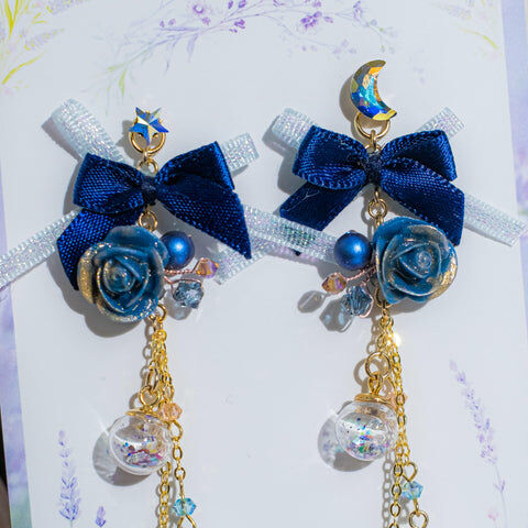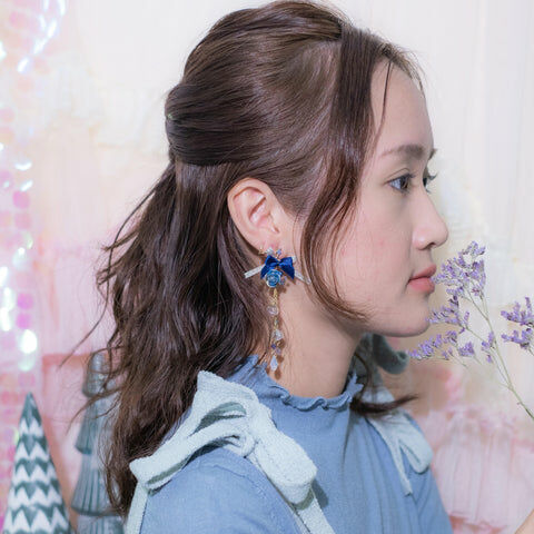 1 ❅ 彩金藍玫瑰蝴蝶結POMPOM S925耳環