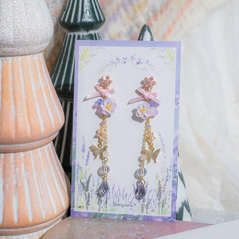 2 ❅ 粉嫩紫羅蘭蝴蝶結POMPOM S925耳環