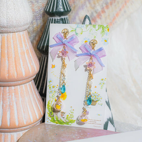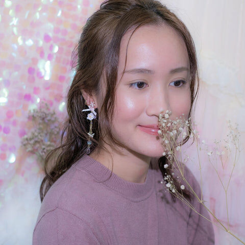 ➀➁ 盛花蝴蝶結POMPOM耳環 (2-way)