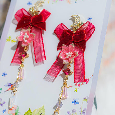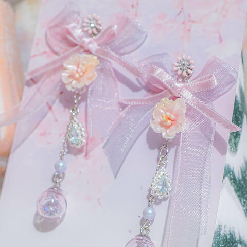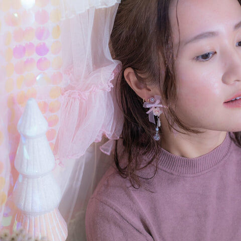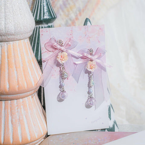 8 ❅ 雪國櫻花蝴蝶結POMPOM S925耳環