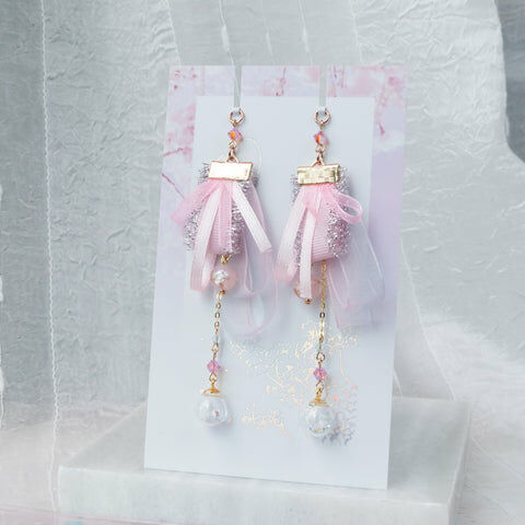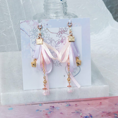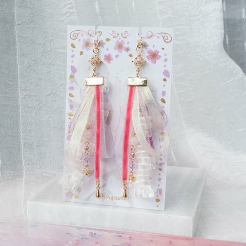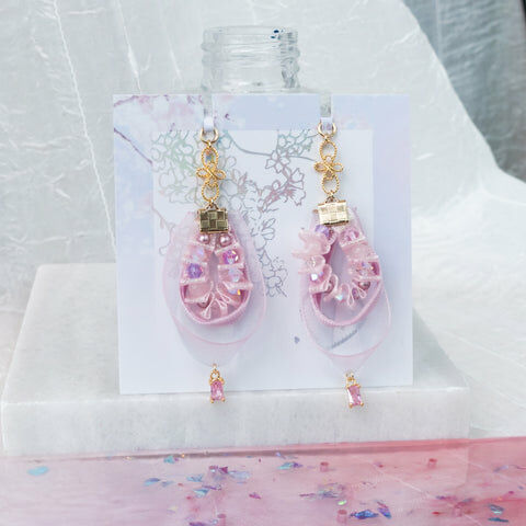 鍍金線 | 施華洛世奇水晶 | 手製樹脂黏土花 | UV膠強化保護層 | 鍍金925純銀耳釘