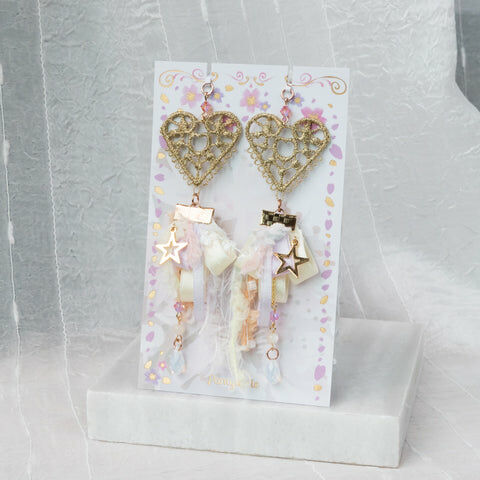 鍍金線 | 施華洛世奇水晶 | 手製樹脂黏土花 | UV膠強化保護層 | 鍍金925純銀耳釘