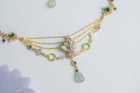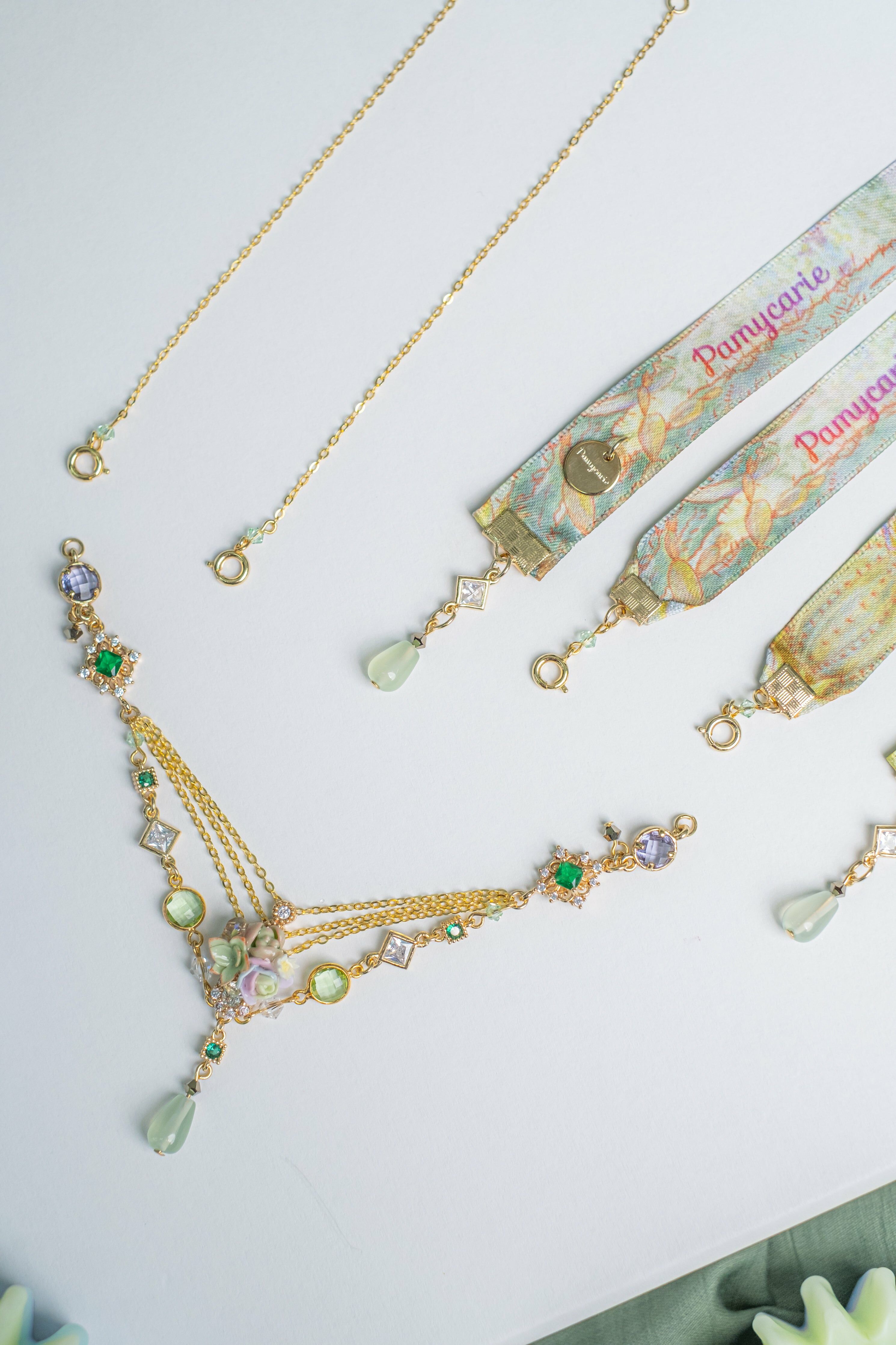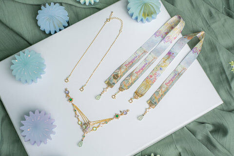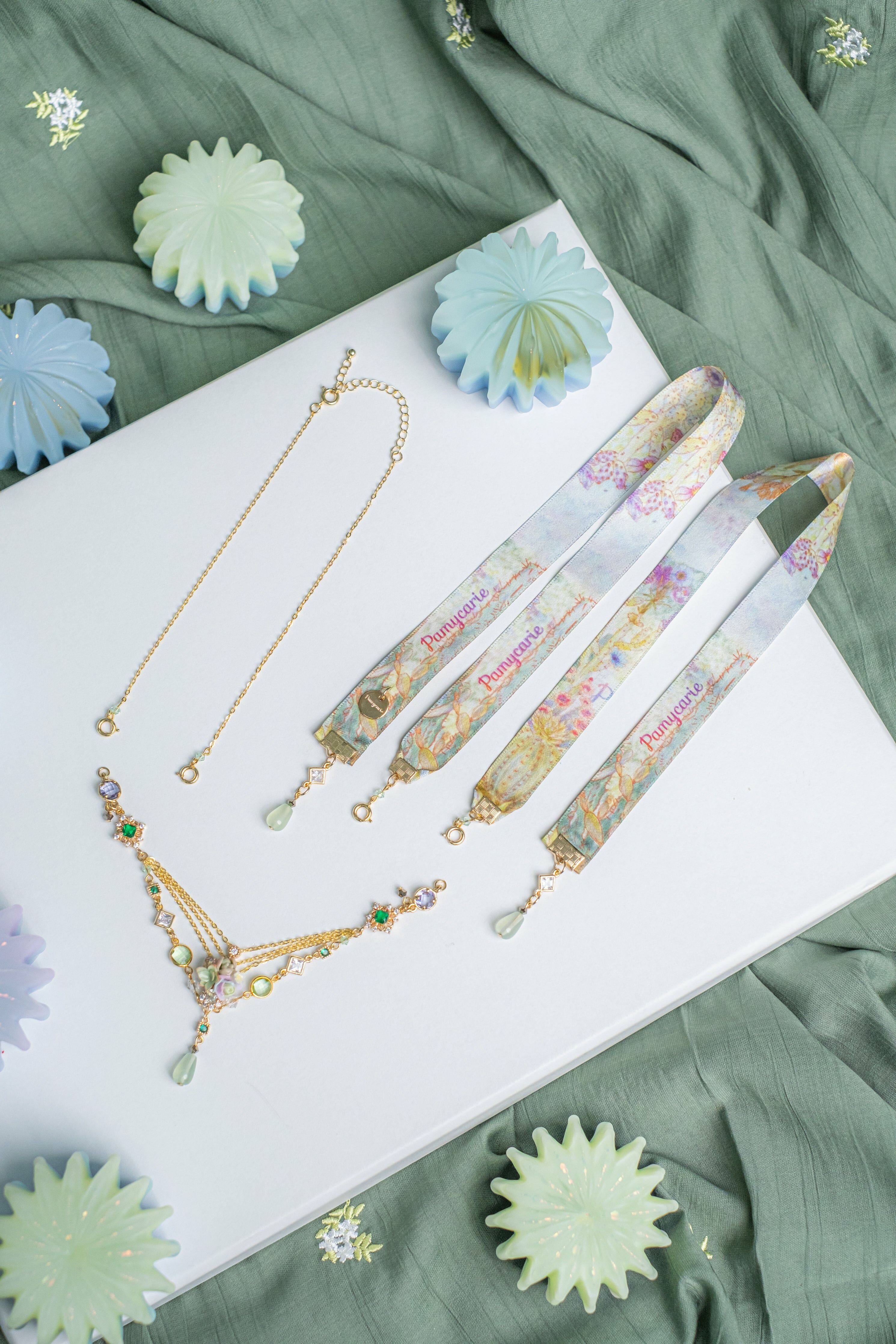 植物皇宮寶石印花絲帶S925鍍金項鏈 (三用)