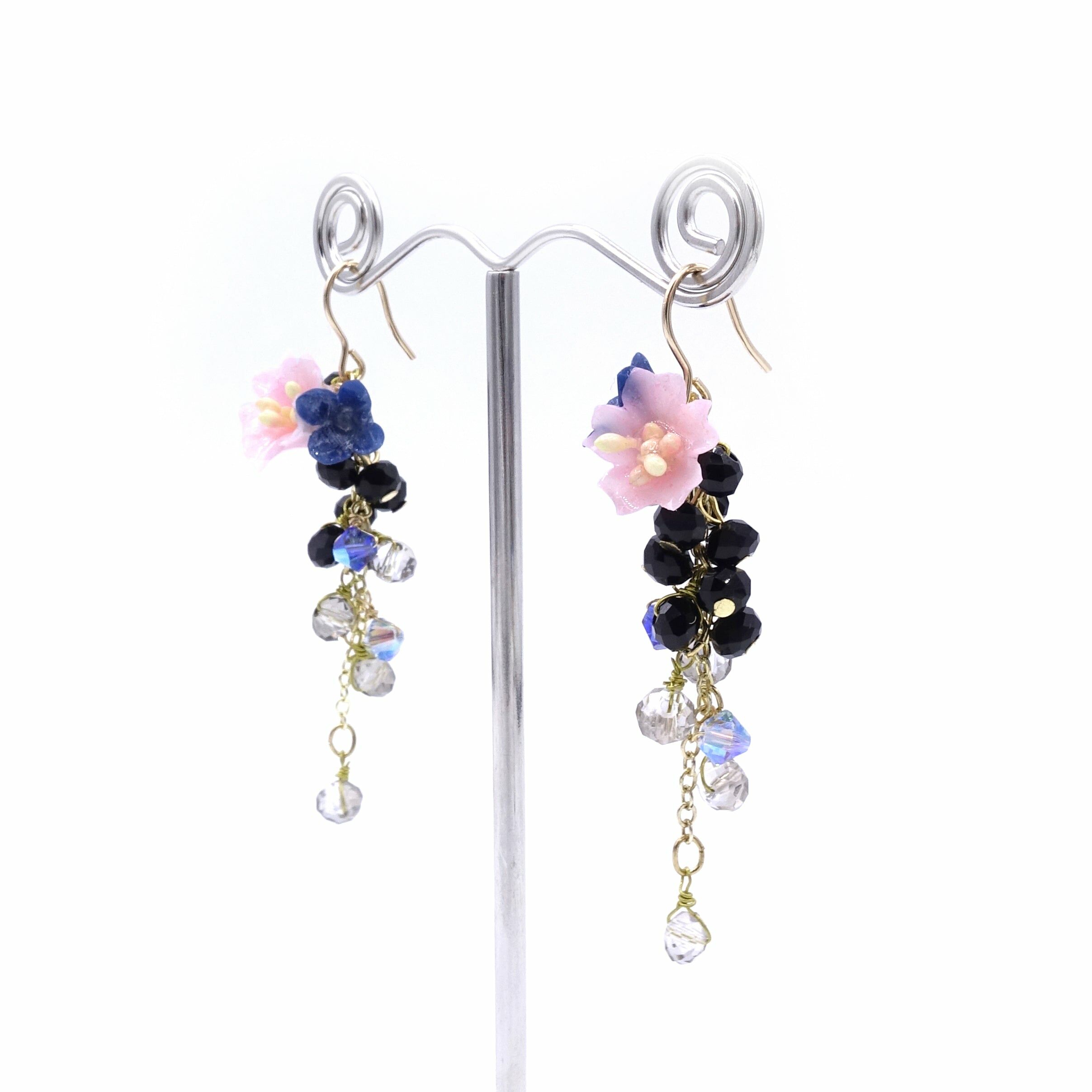 SAKURA COLLECTION Night-Sakura-Rain Floral Crystal Earrings - Pink
