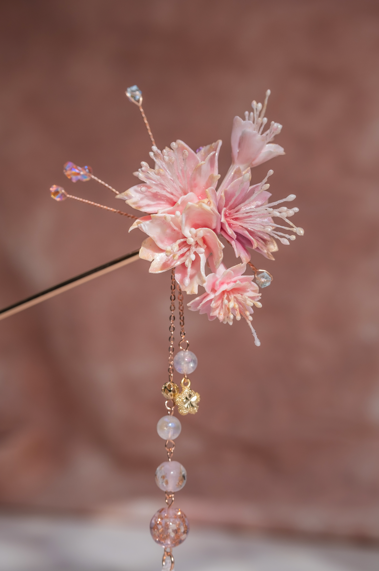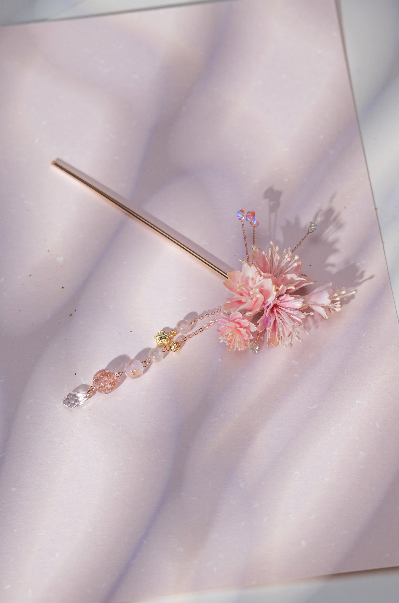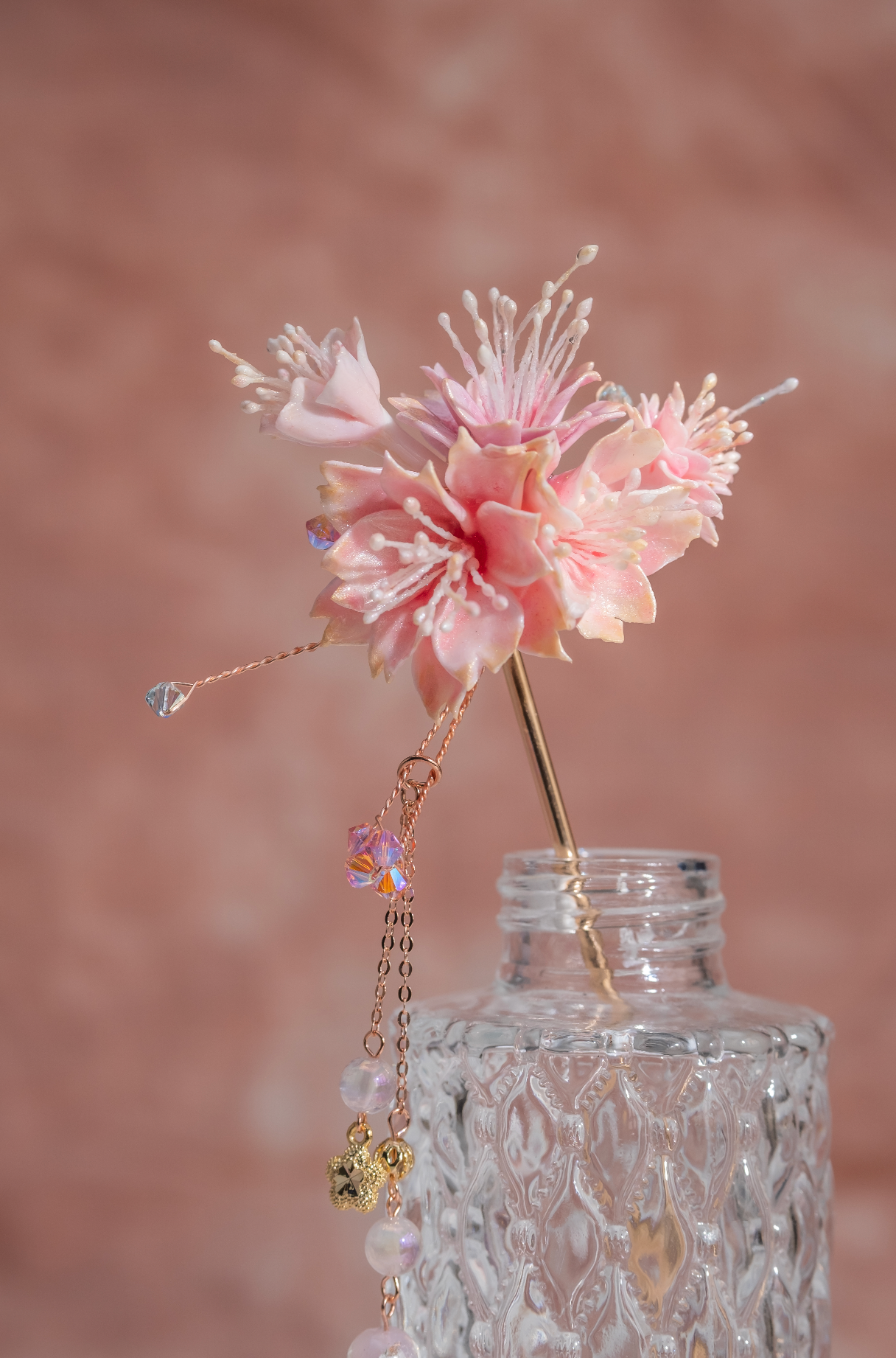 Gold Plated Artistic Wire | Swarovski Crystal | Handcrafted Resin Clay Flowers | UV Hardening Coating | Gold-plated Metal Hair Pin