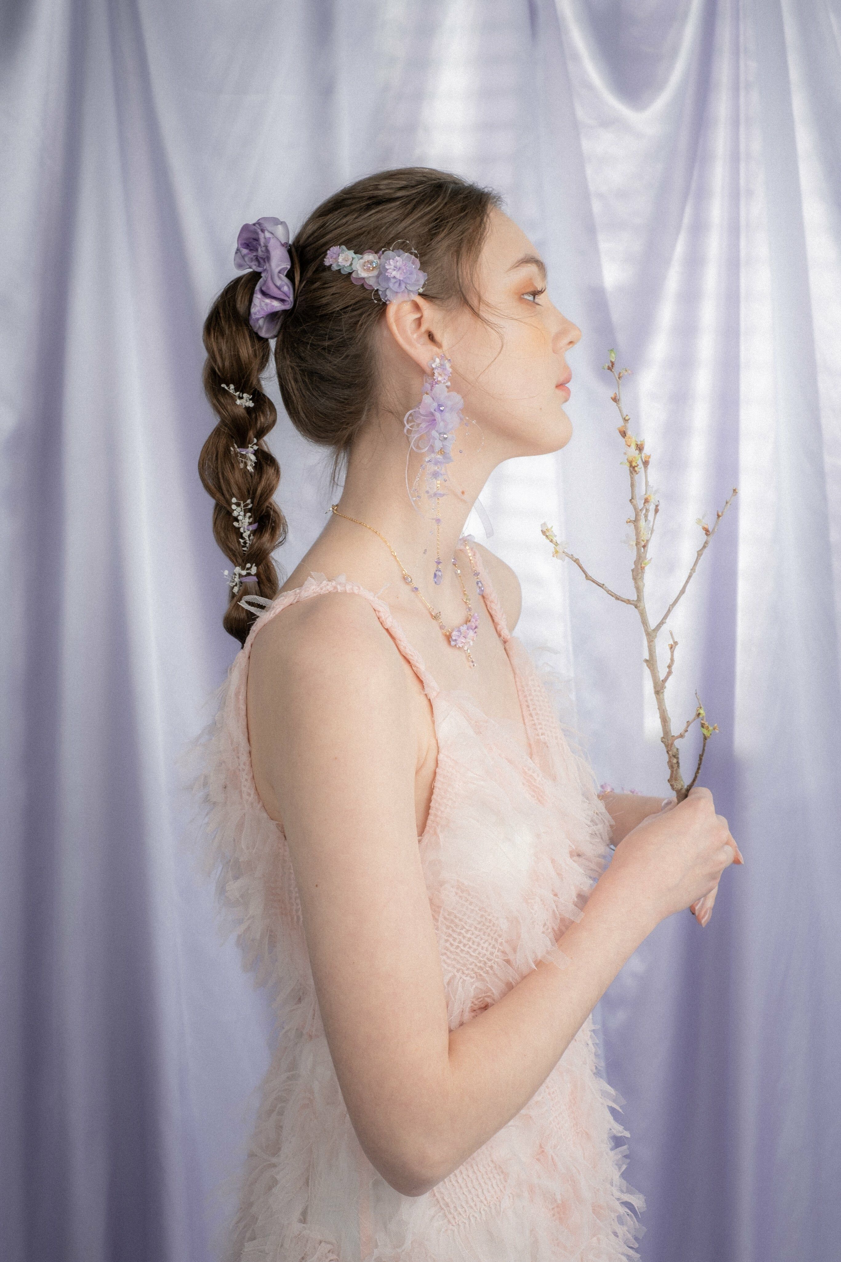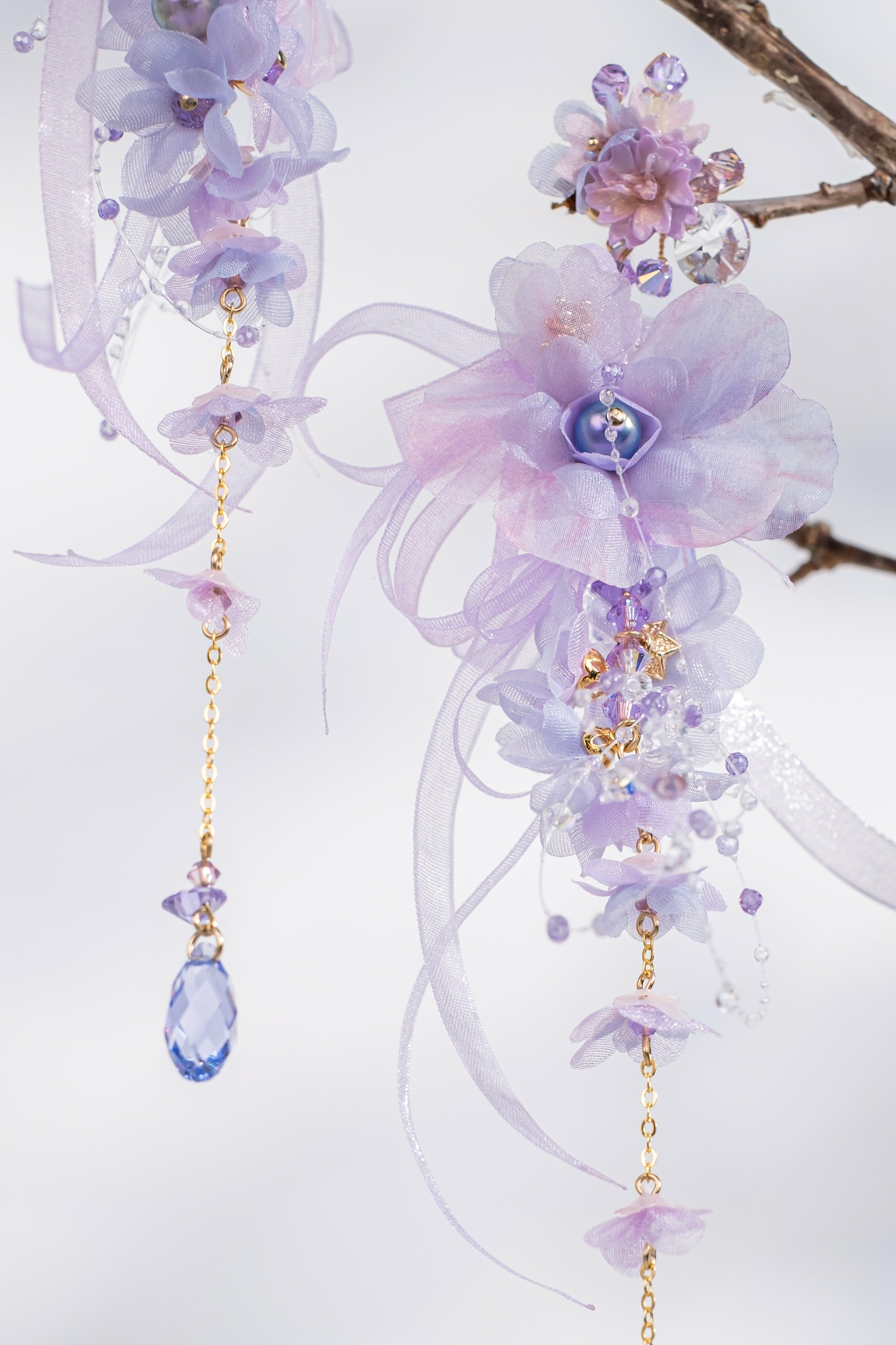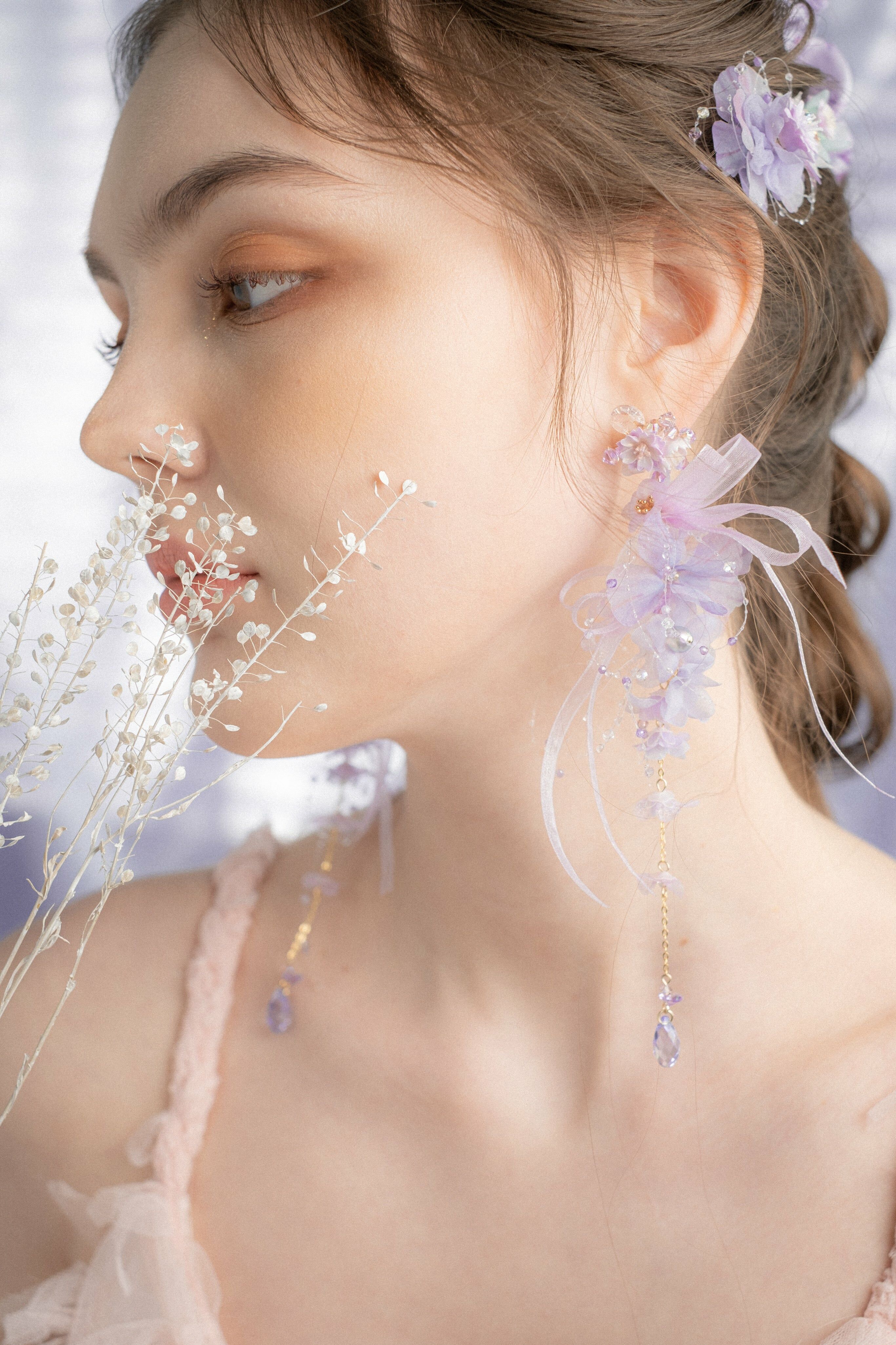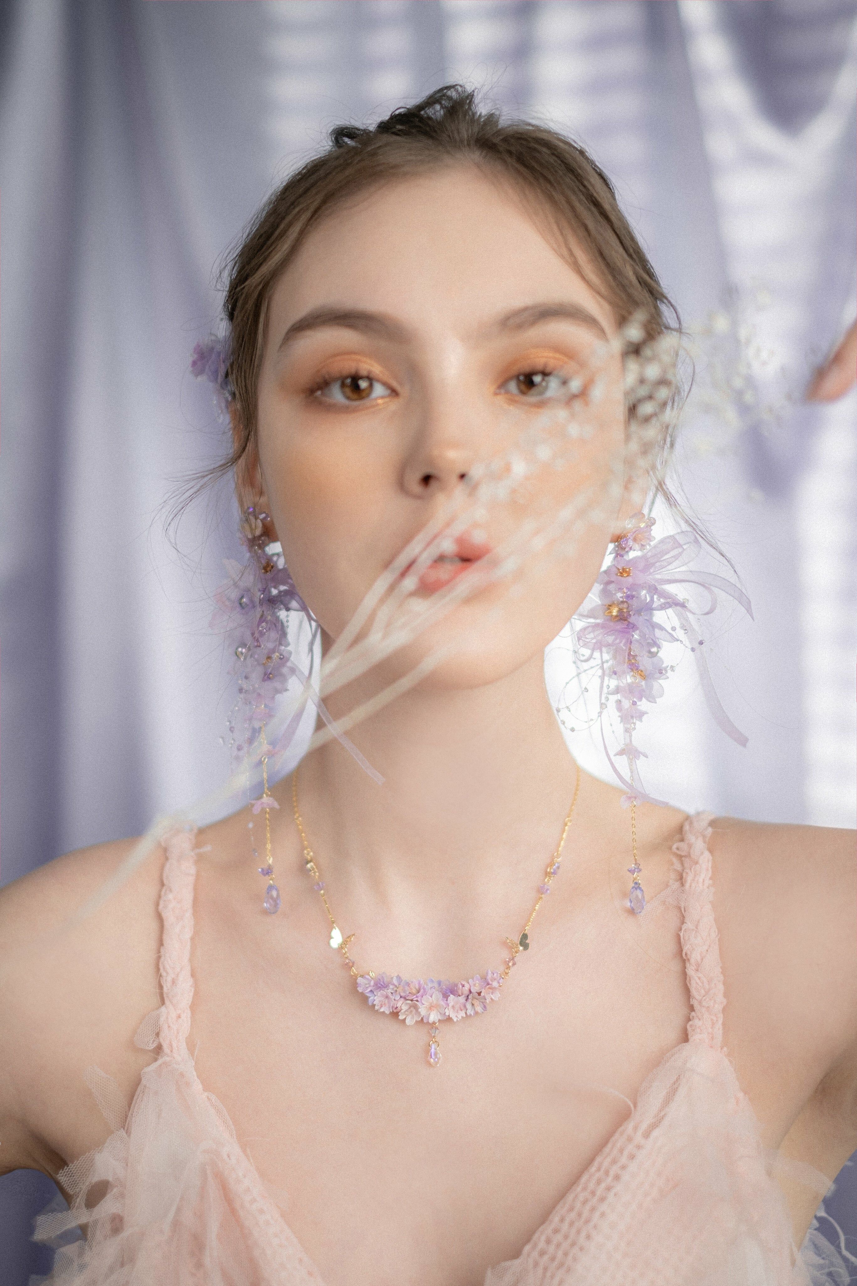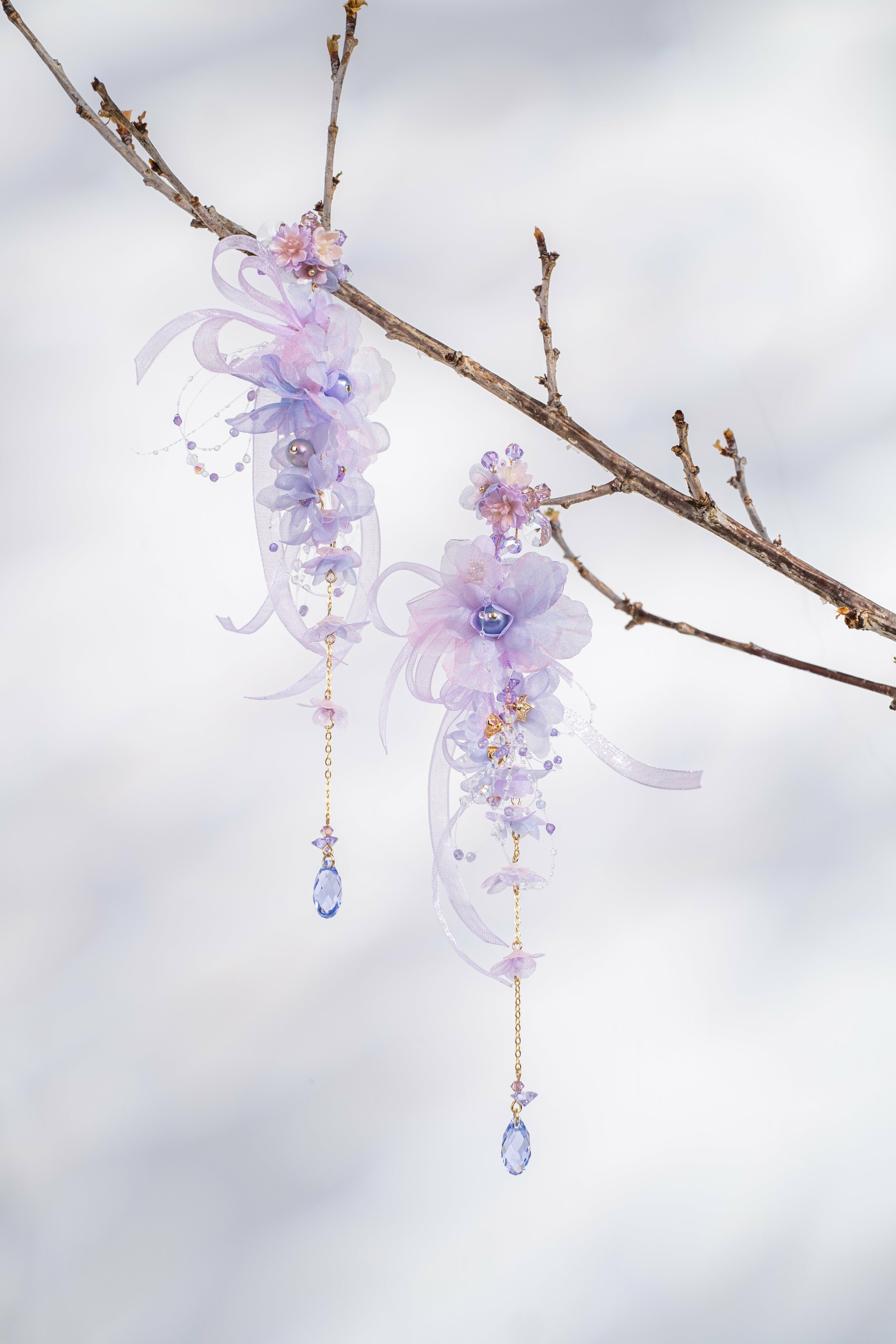 朝日霧氣淡紫櫻花輕紗兩用耳環