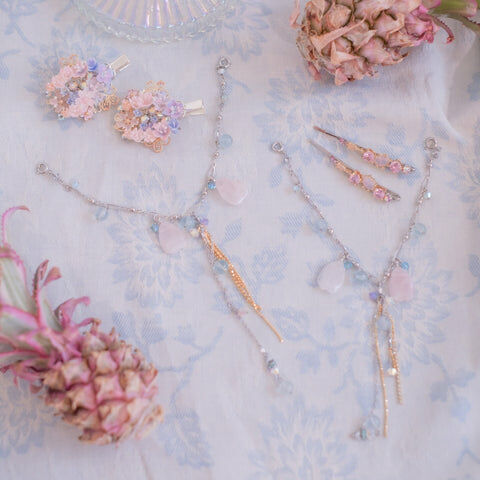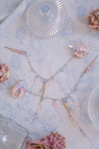 Serendipity Gold-plated Section Hair Clip Set (with detachable Rose Quartz petal chain)