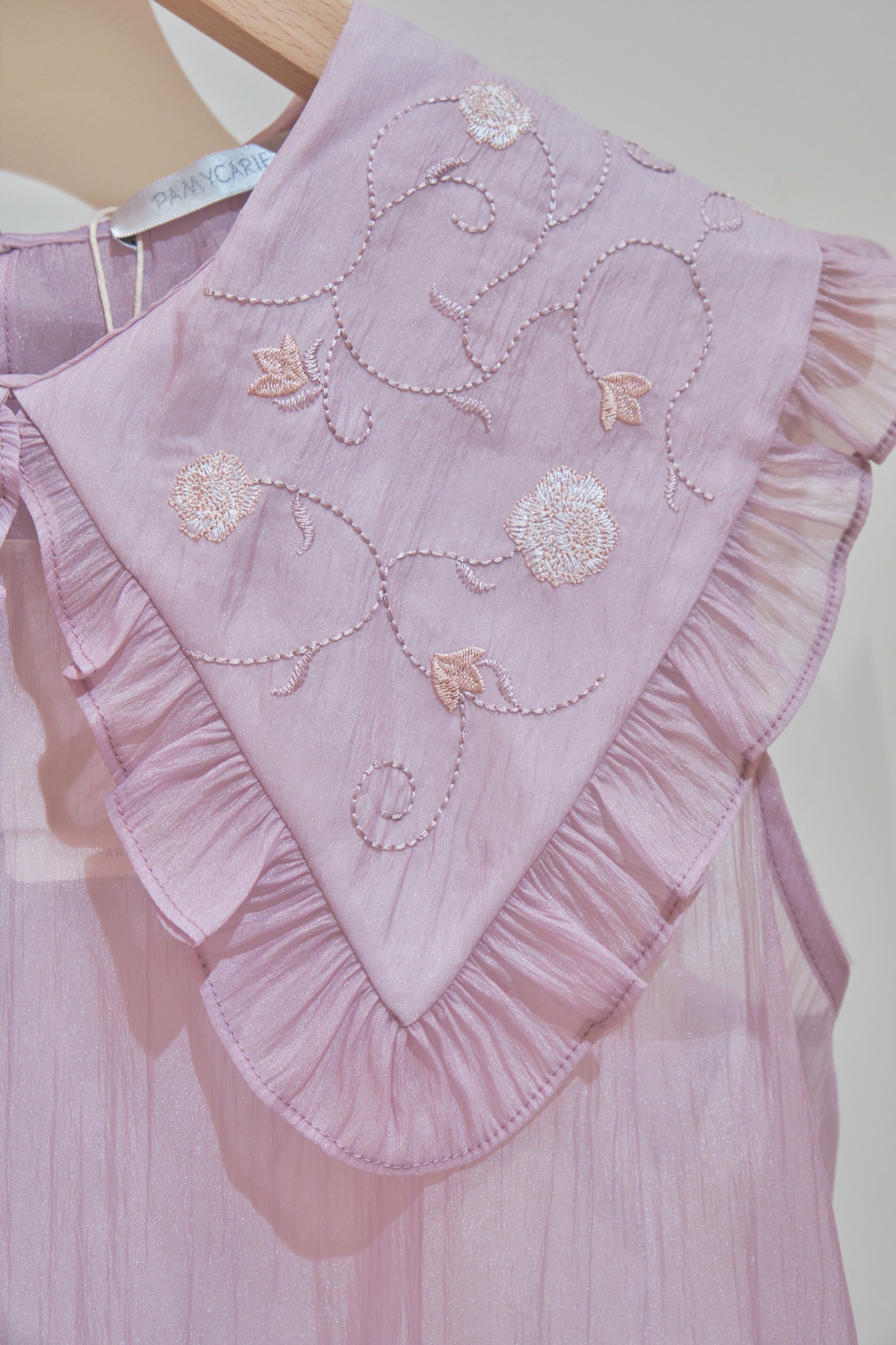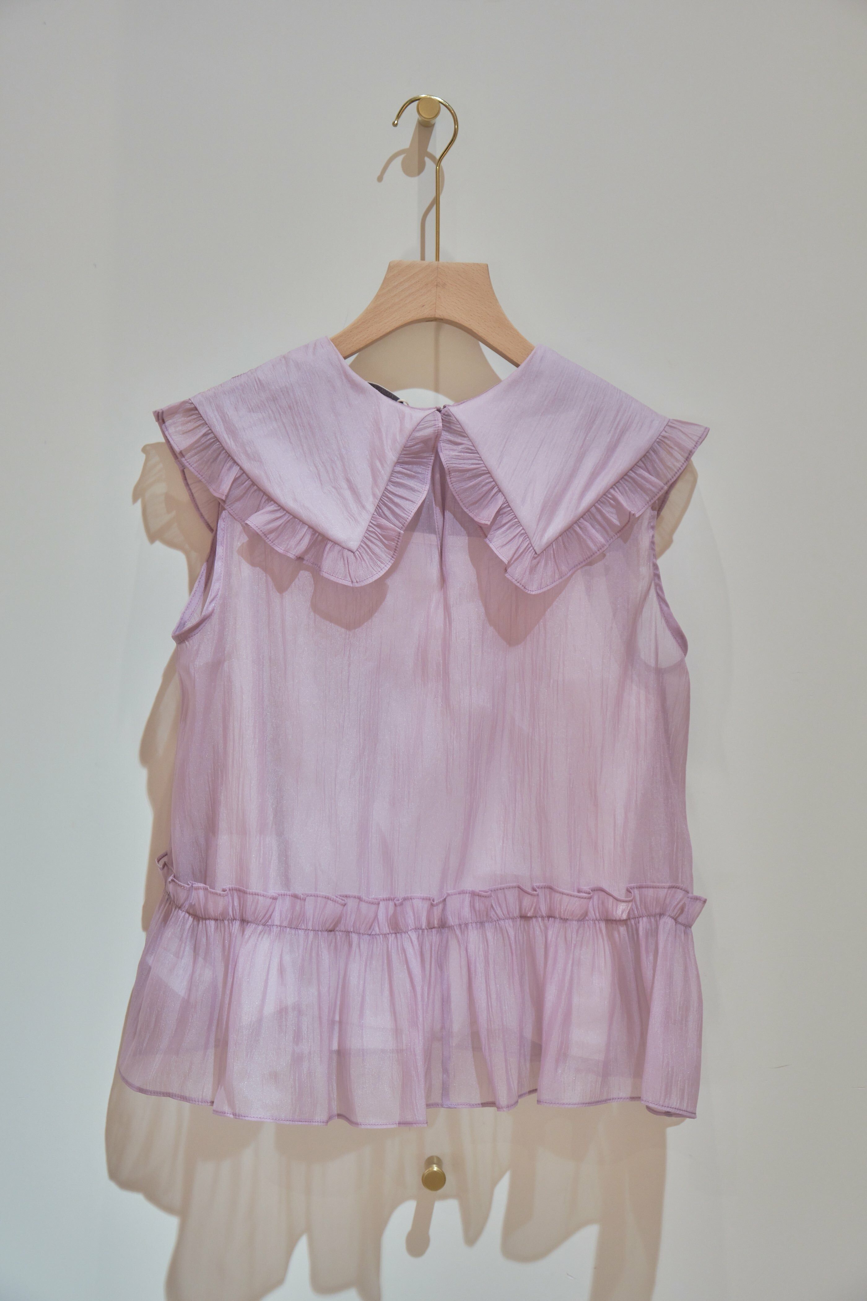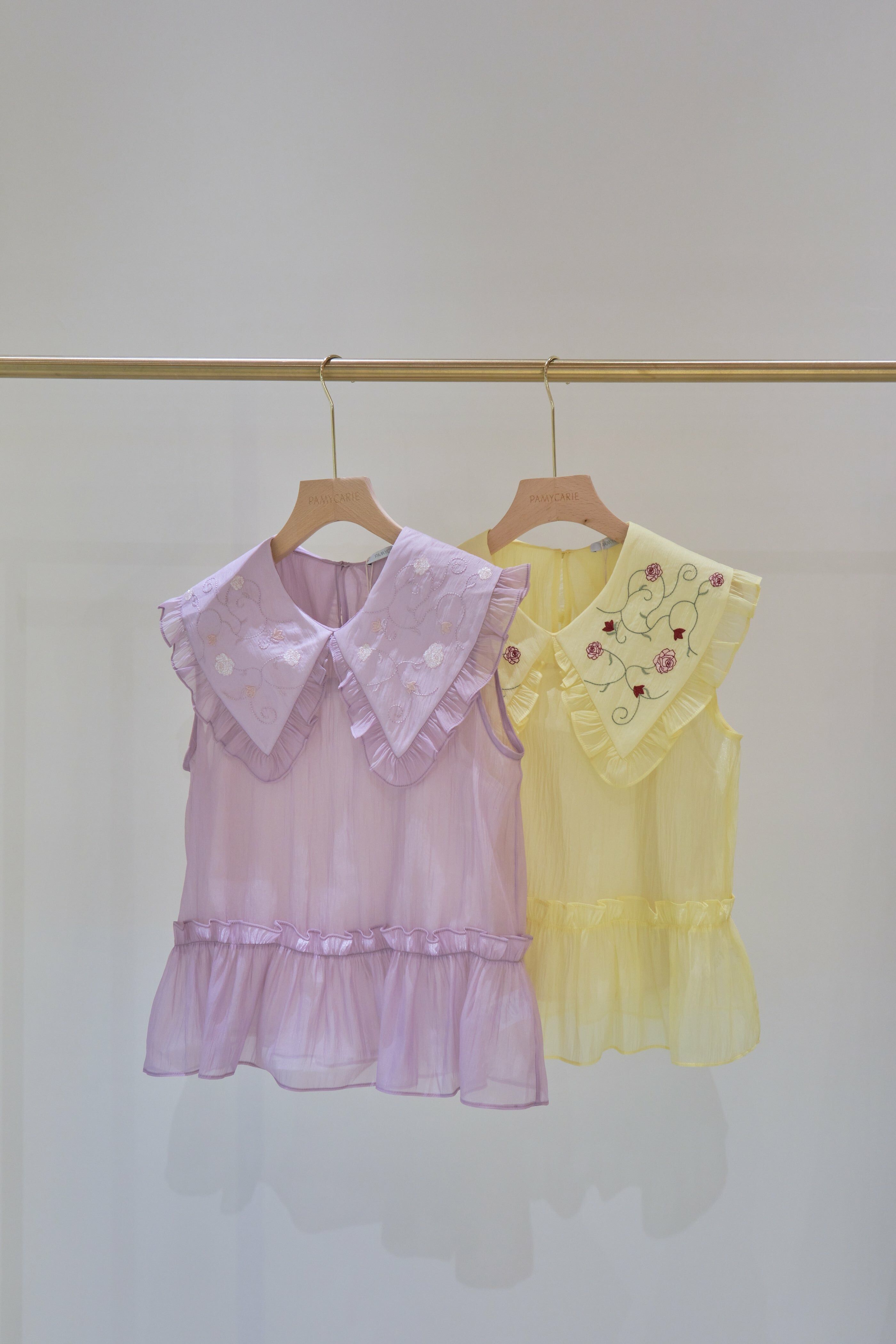 荷葉領刺繡背心輕紗罩衣 (淡黃/薰衣草紫)