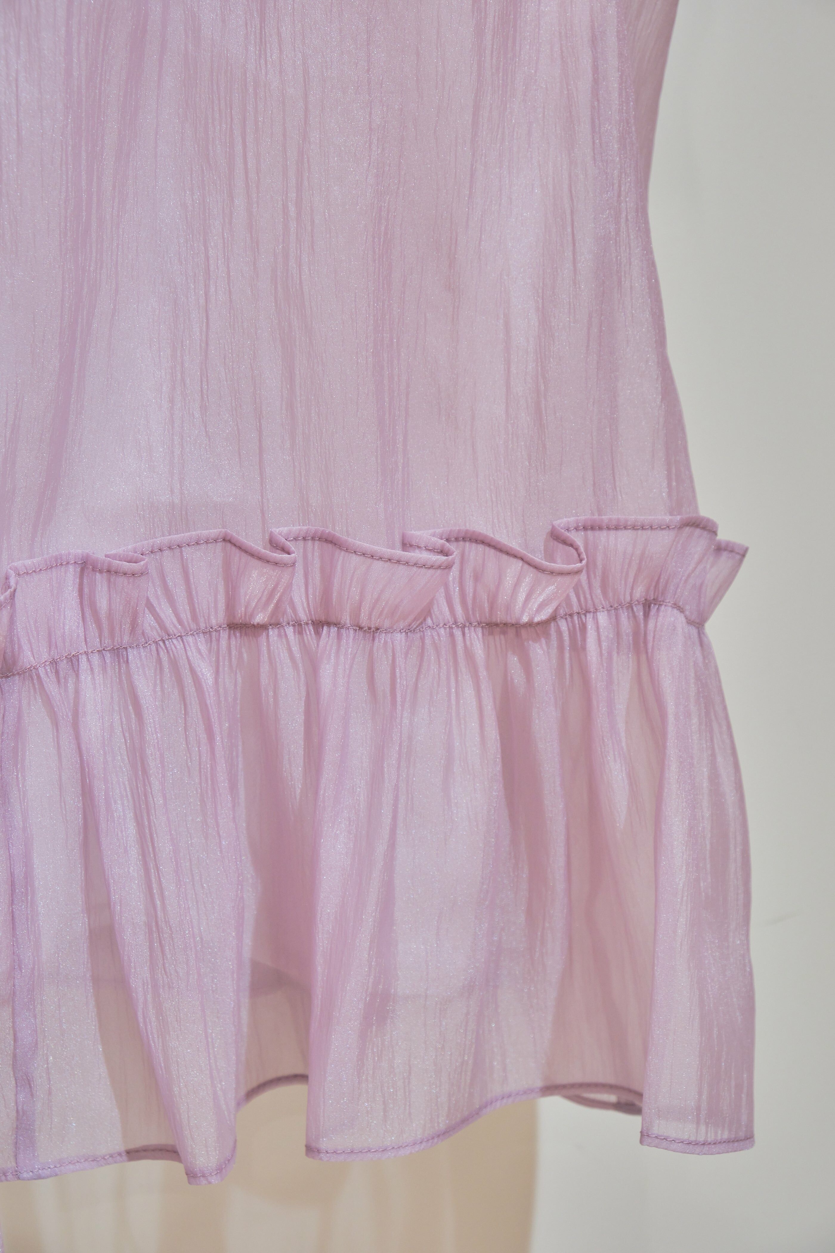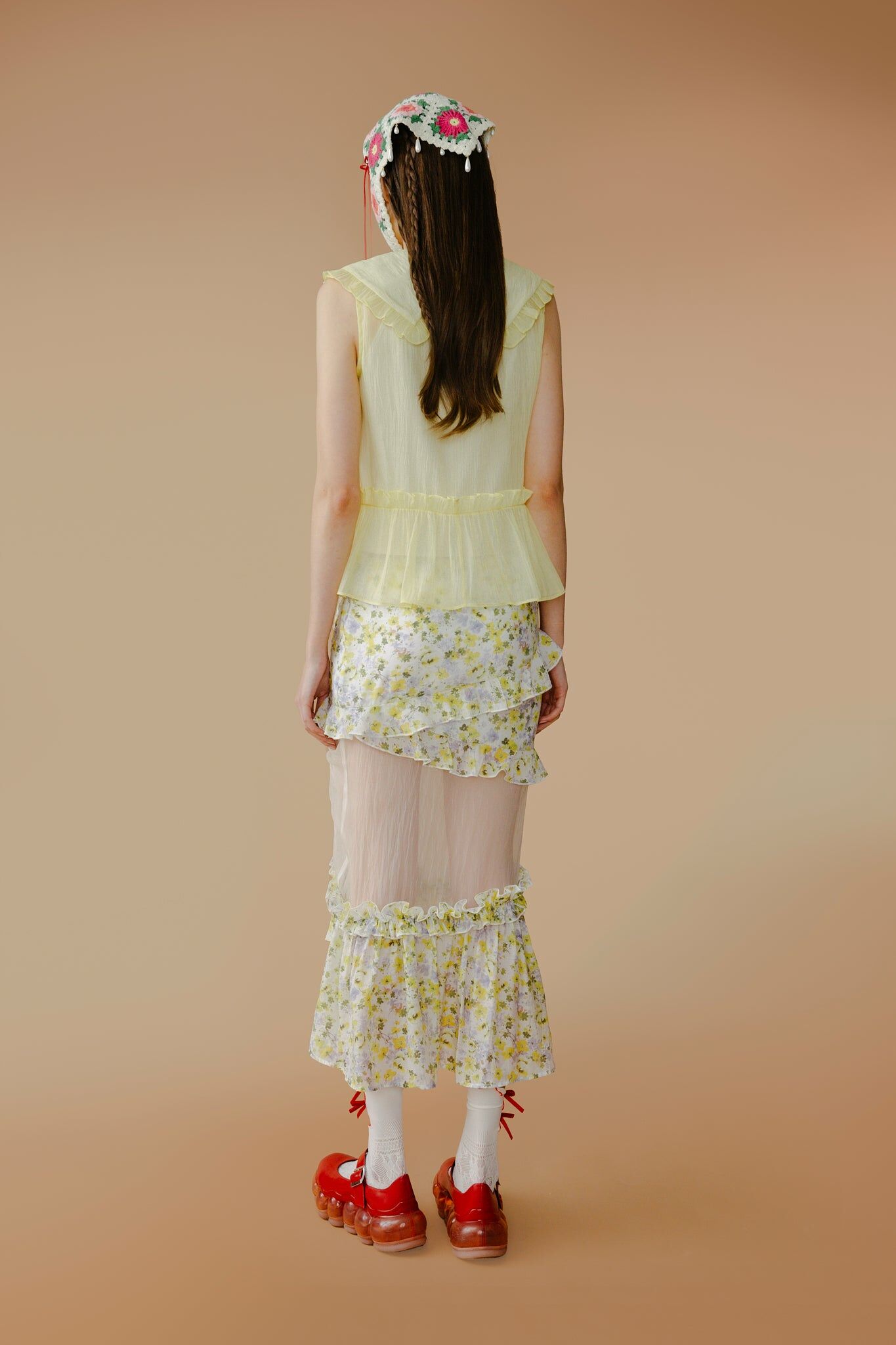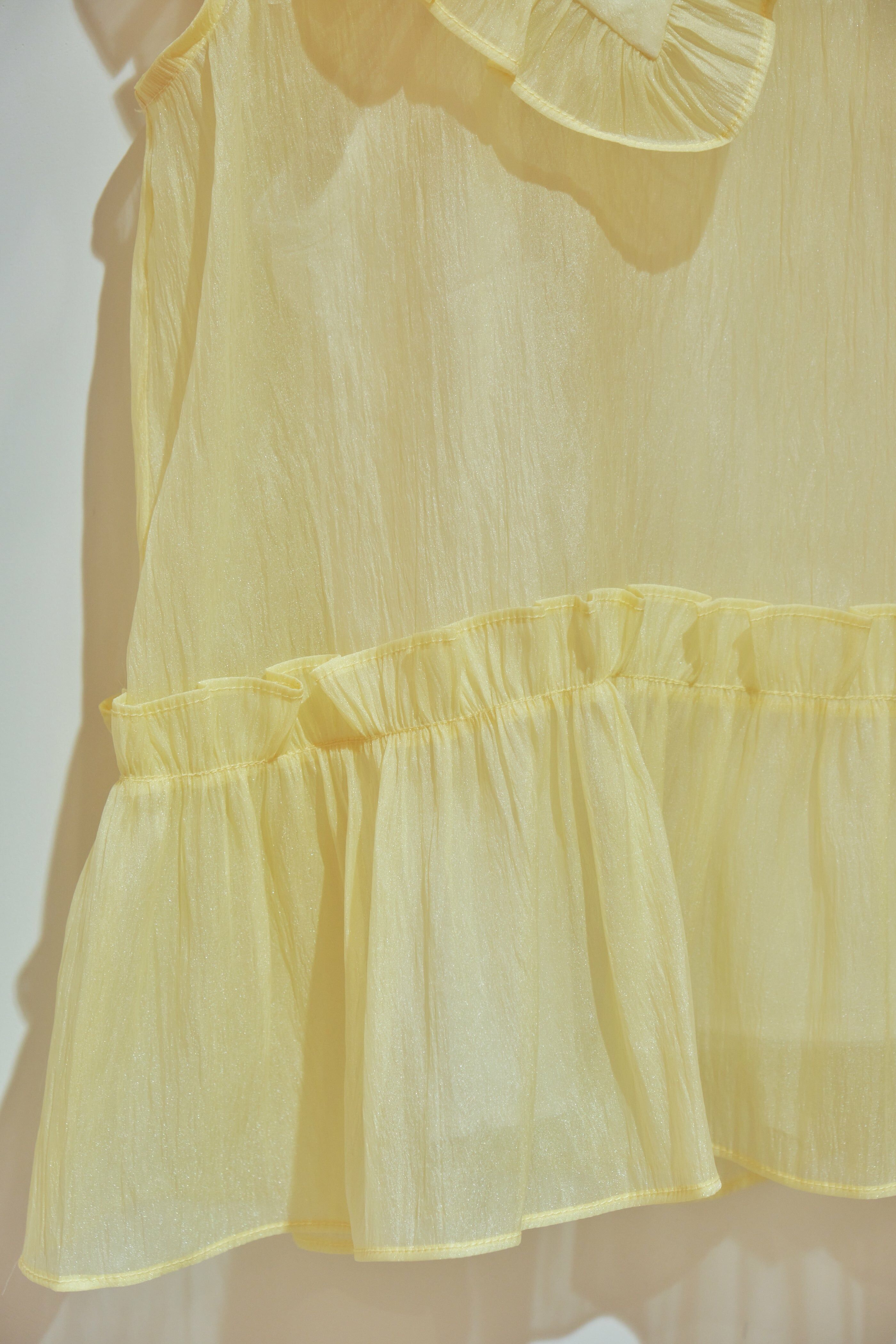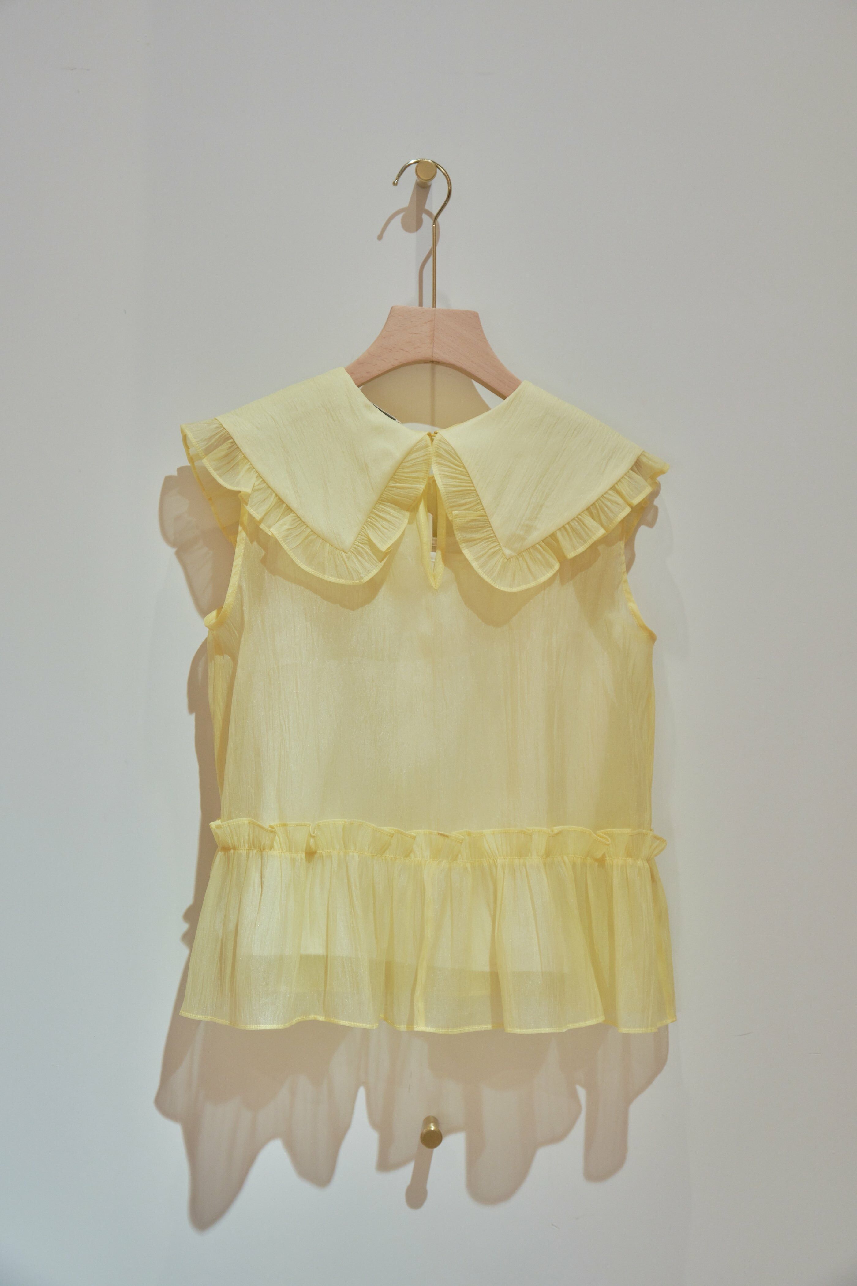 荷葉領刺繡背心輕紗罩衣 (淡黃/薰衣草紫)