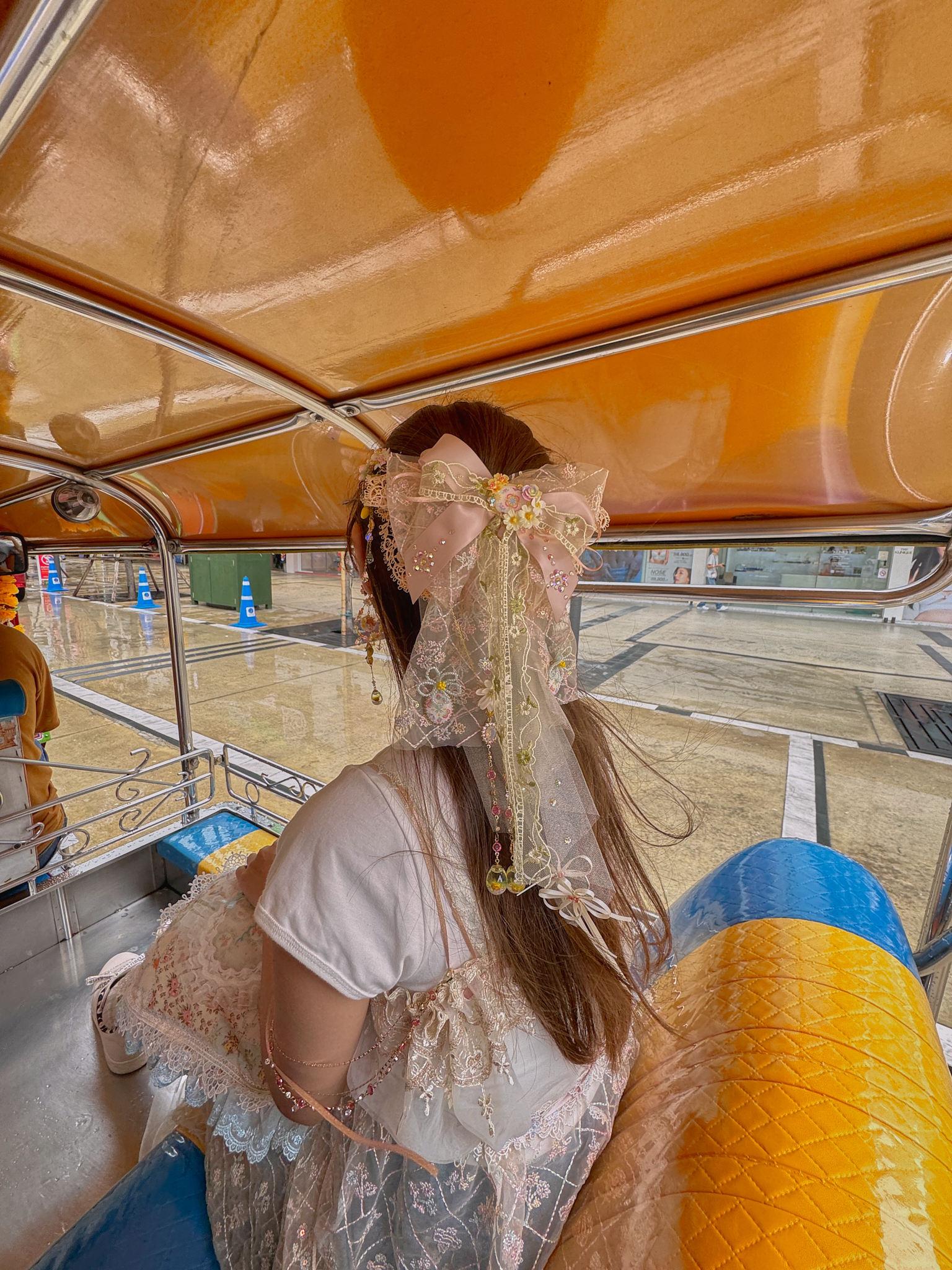 這款蝴蝶結髮夾套裝由兩個部分組成:一個幻彩蕾絲蝴蝶結和一個緞帶小蝴蝶結。吊墜繪上古城的花磚圖案,細節滿滿。兩個部分均可獨立使用,靈活性極高。無論是日常裝扮還是特殊場合都能輕鬆搭配,為您的造型增添一抹甜美。