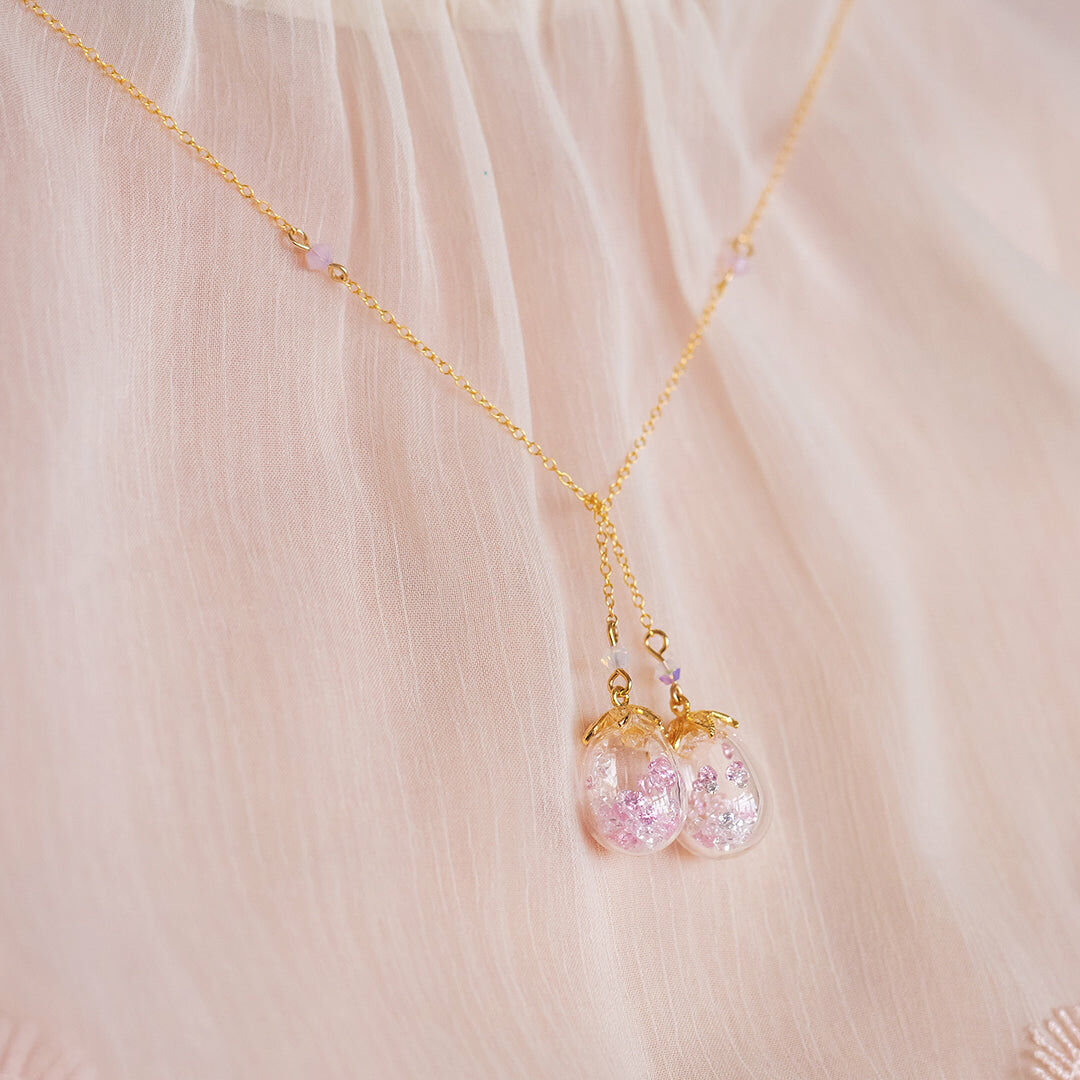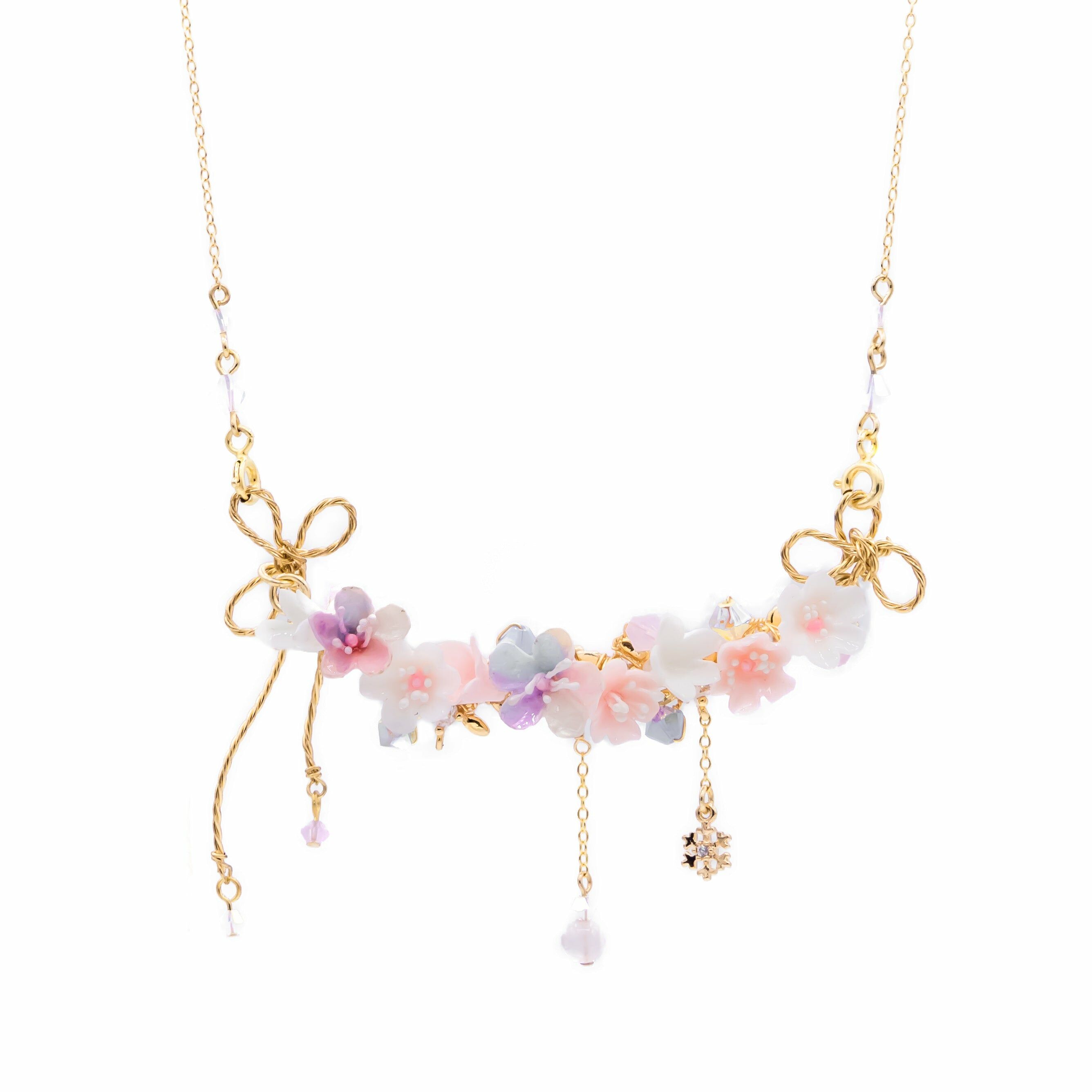 美國進口Beadsmith純銀線 | 奧地利水晶 | 手製樹脂黏土花 | 天然摩根石 | UV膠強化保護層 | 鍍14K金925銀鏈