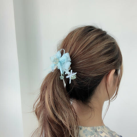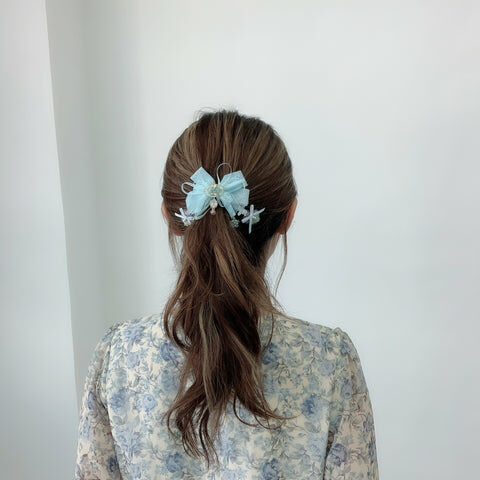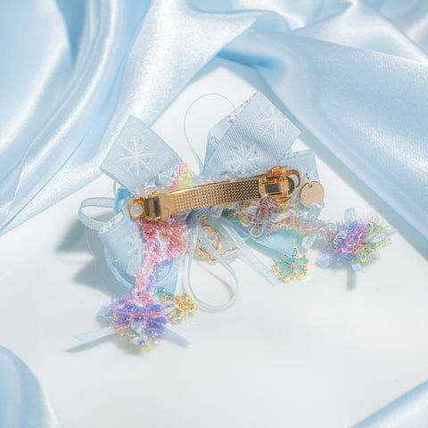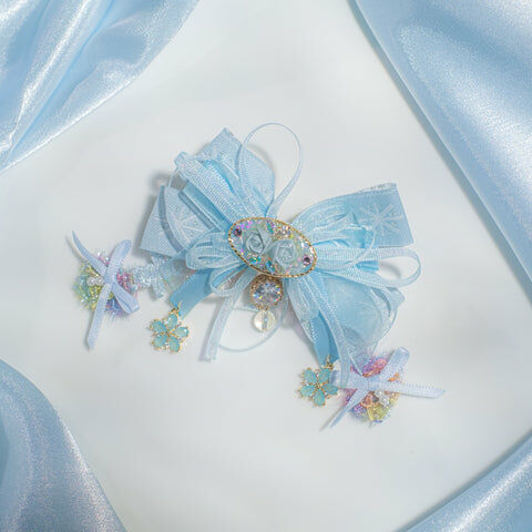 Design 1 - 粉末藍雙玫瑰雪花蝴蝶結髮夾