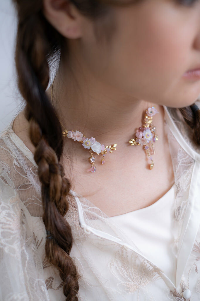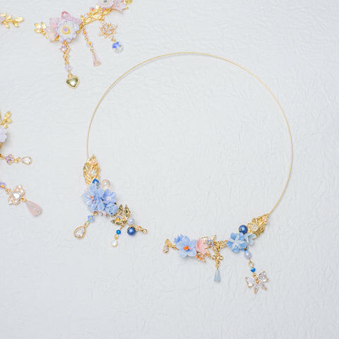 Swarovski Crystal | Natural Quartz | Japanese Glass Bead | Silver-plated Ornament | Gold-Plated Neck Cuff