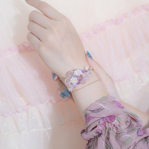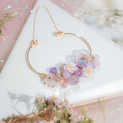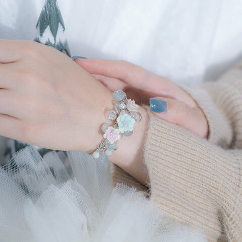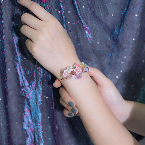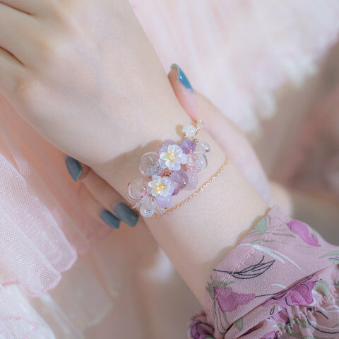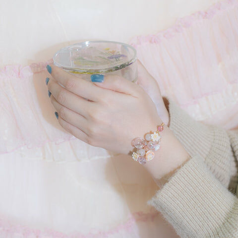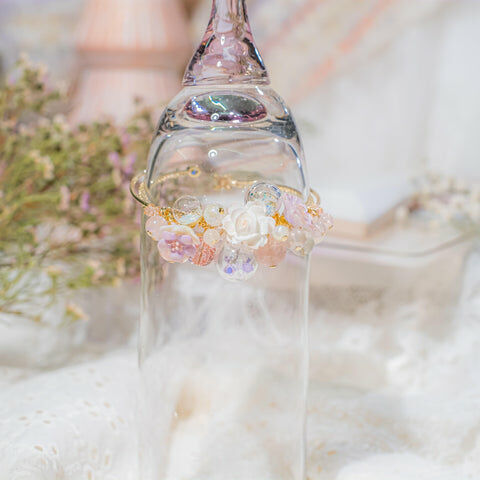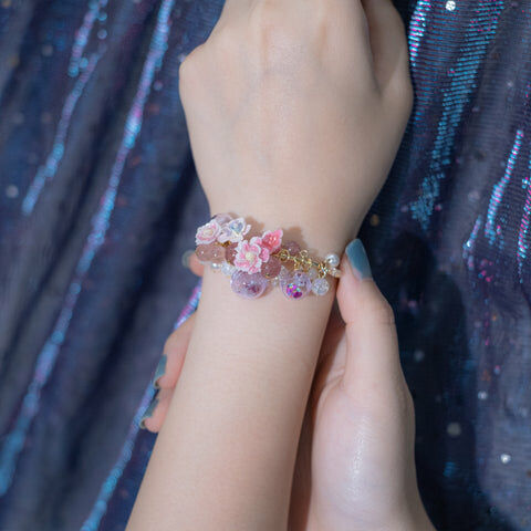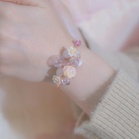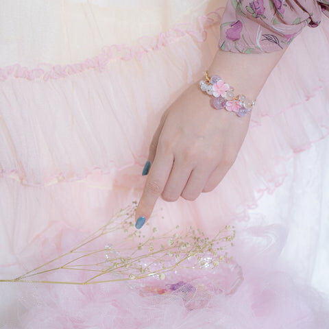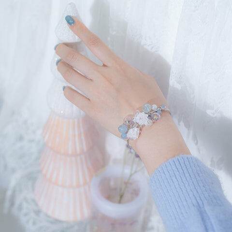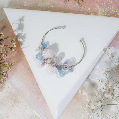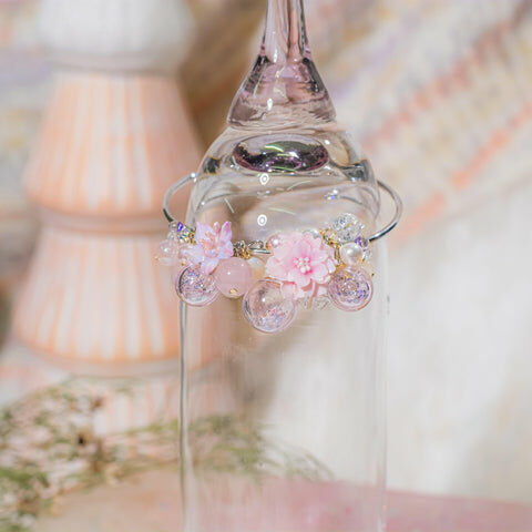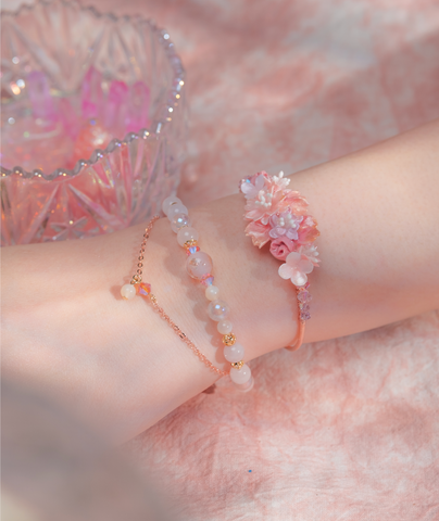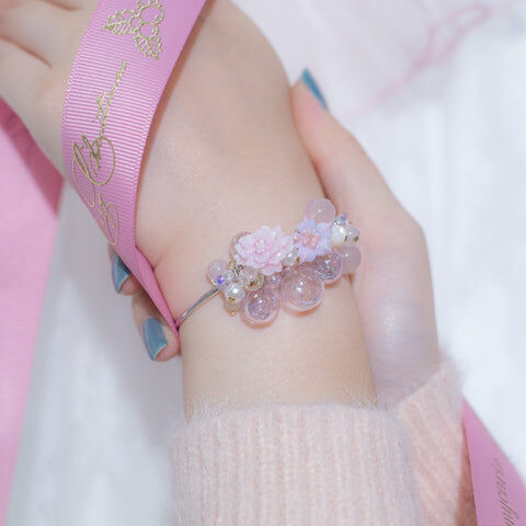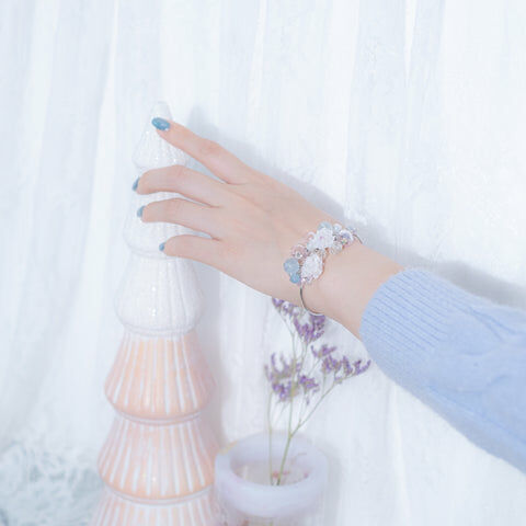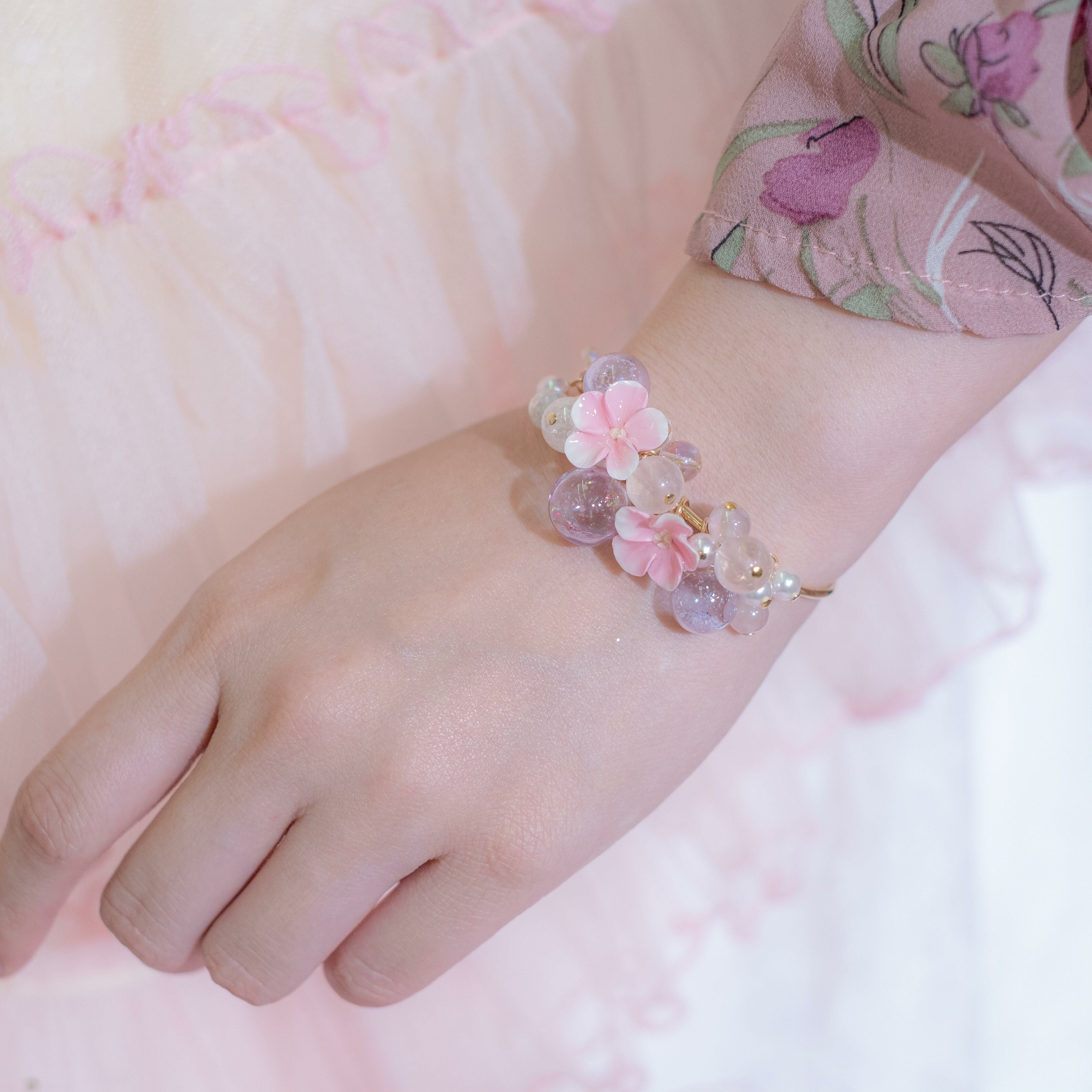 8 ❅ 櫻花文冠果粉晶鍍銀手鐲