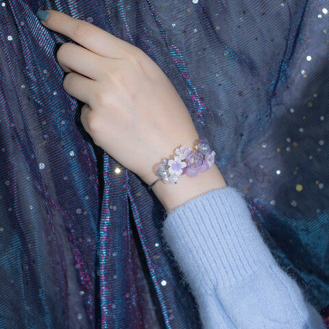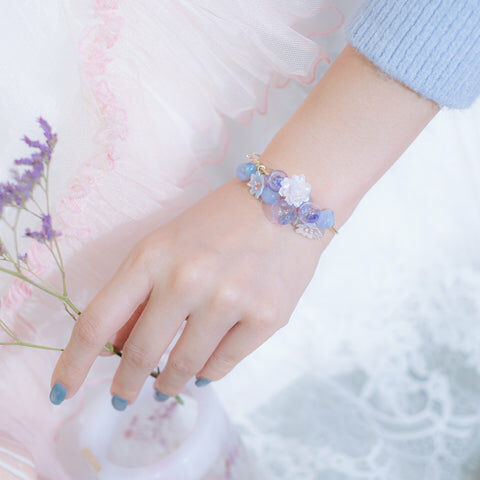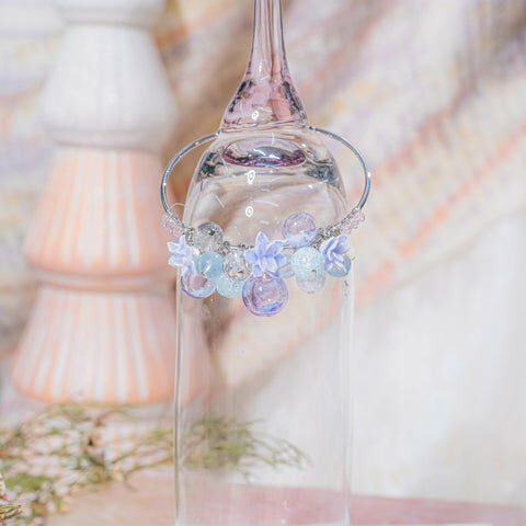 11 ❅ 萬華鏡紫陽花摩根石配藍紋瑪瑙鍍銀手鐲