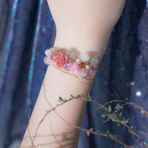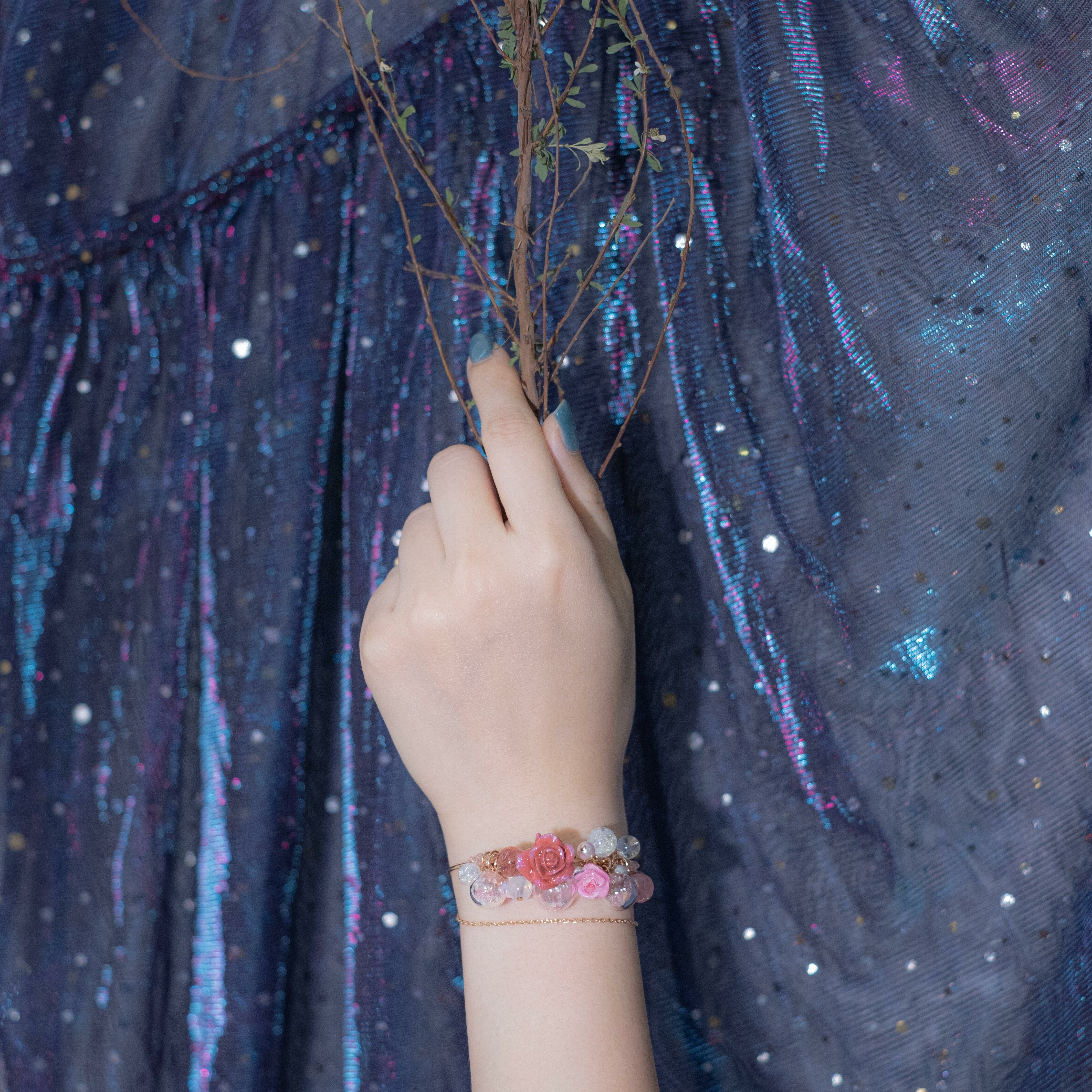 3 ❅ 彩虹玫瑰波斯菊粉晶鍍金手鐲