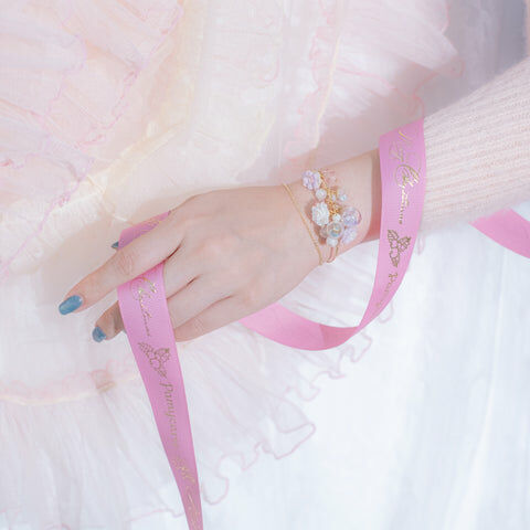 7 ❅ 蜜糖梔子花摩根石配粉晶鍍金手鐲
