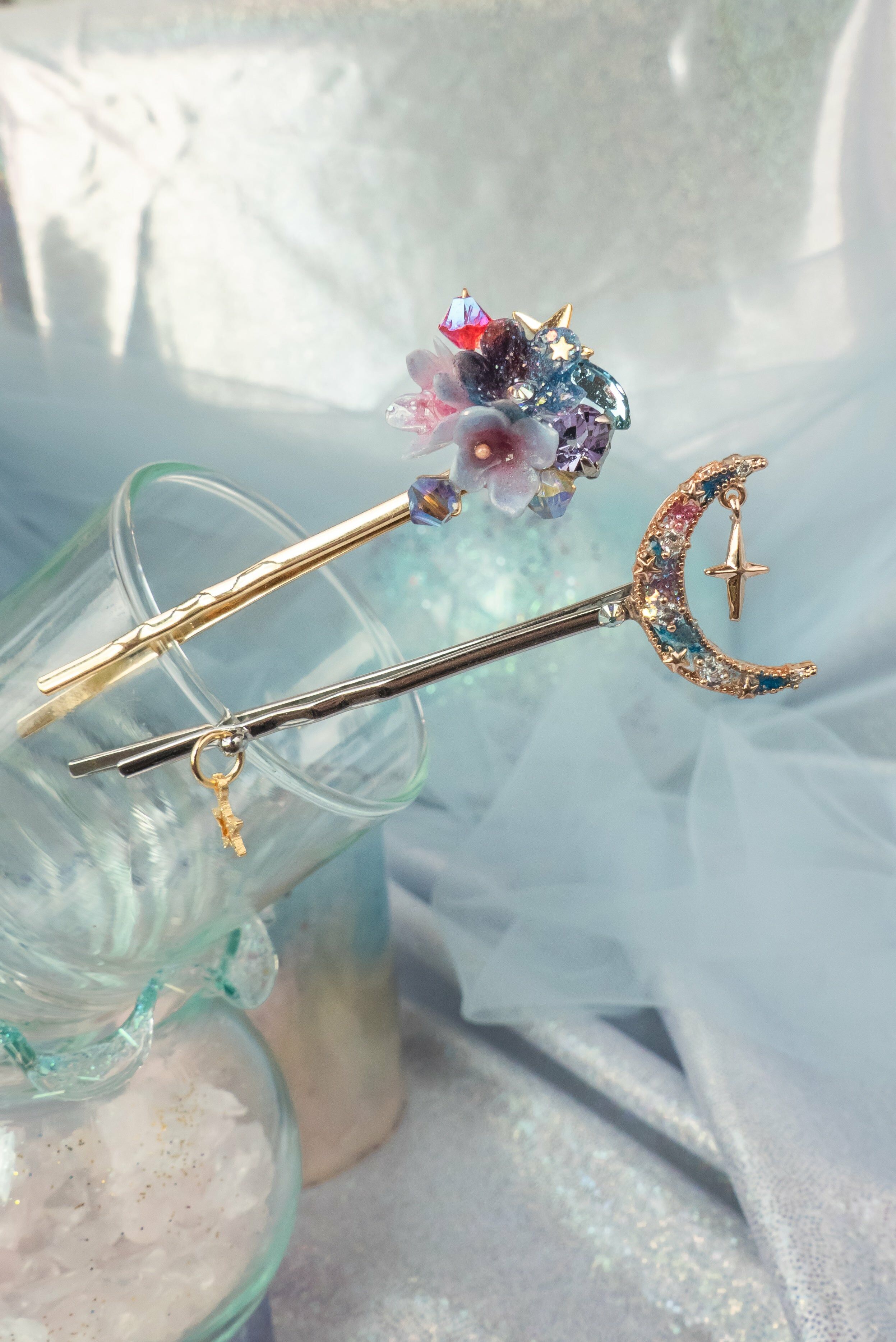Hair clip of Moon, Star, Gem and flower bouquet ‘s width are 6cm, 6cm, 5cm and 5.5cm respectively.