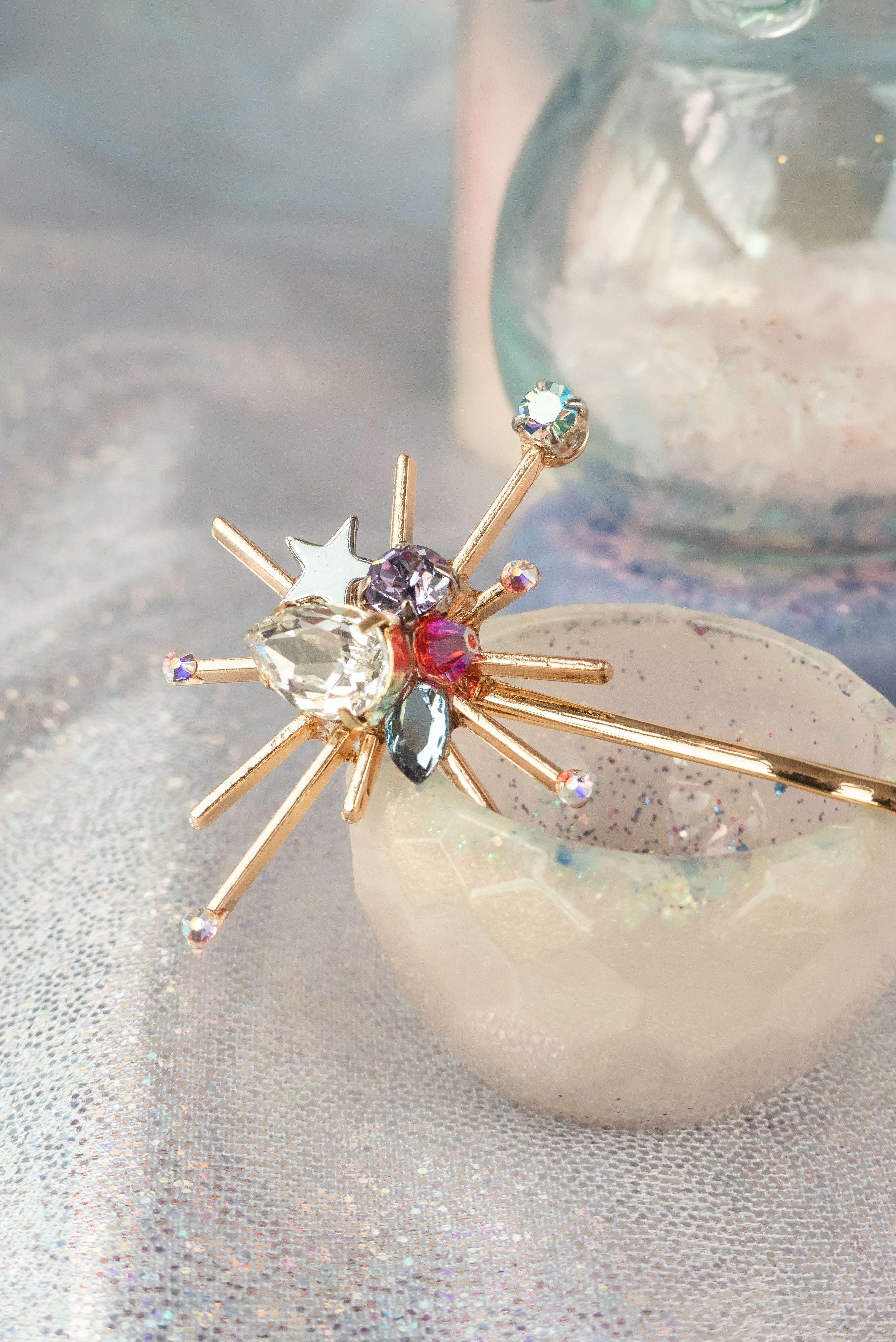 Gold Plated Artistic Wire | Swarovski Crystal Bead | Japanese CZ | Handcrafted Resin Clay Flower | AB Resin | UV Hardening Coating | Gold-plated Hair Clip