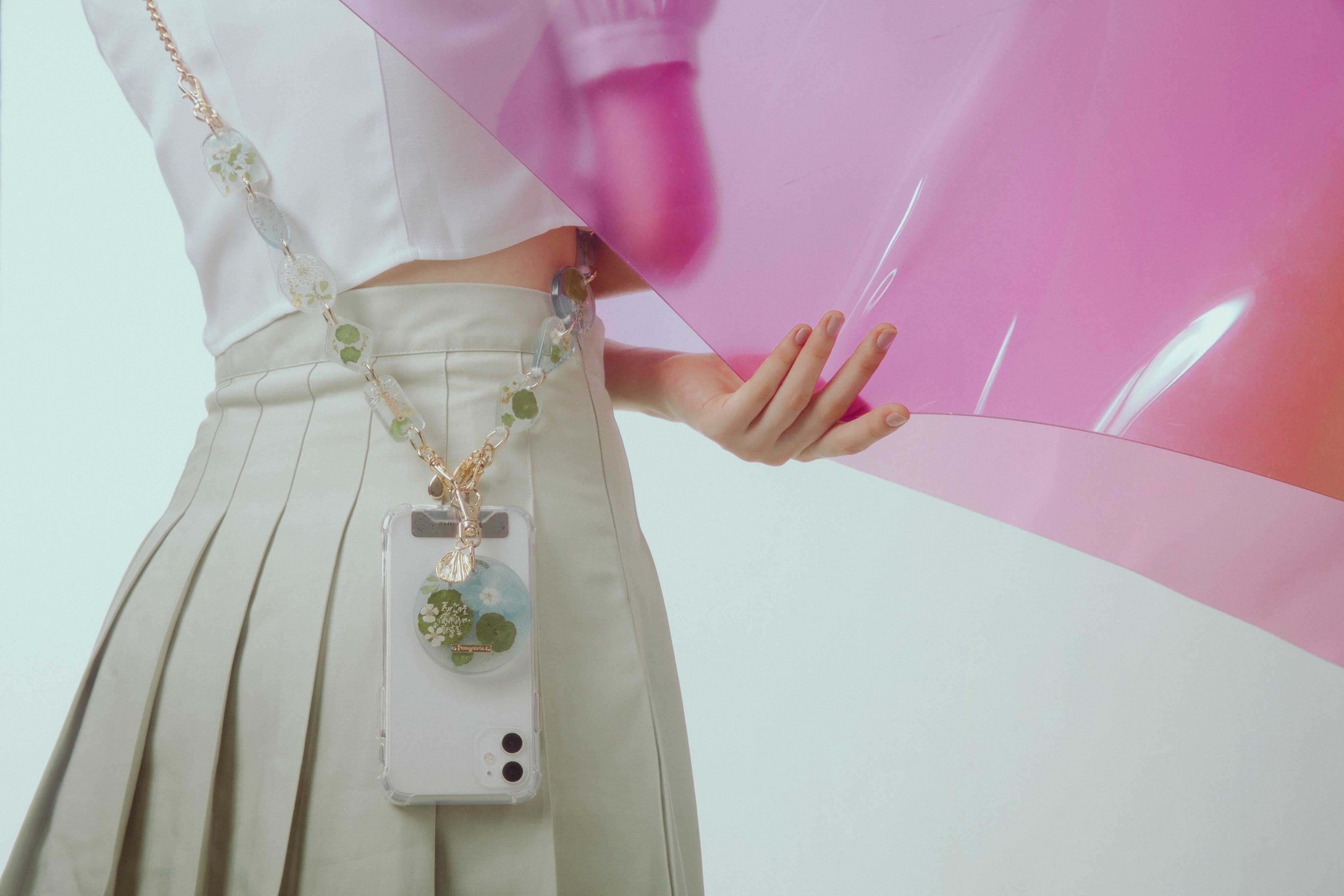 首次製作偏植物系的手機側背鏈,透明和綠色的配搭能讓人心情放鬆,別有另一番美態。