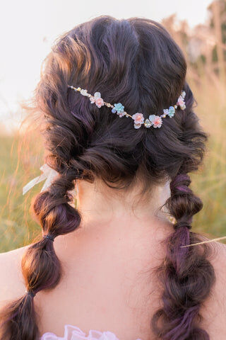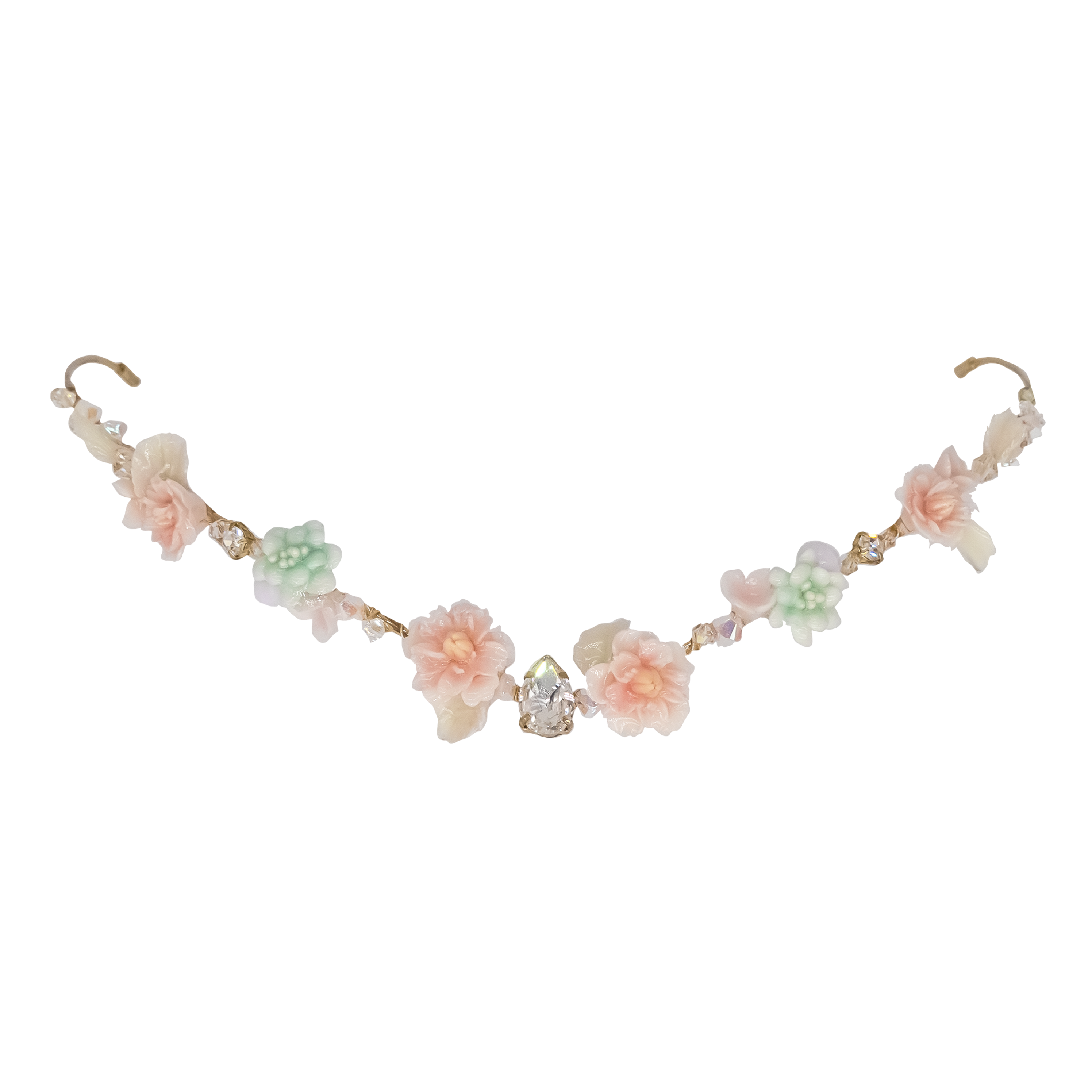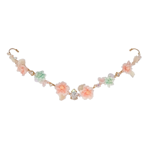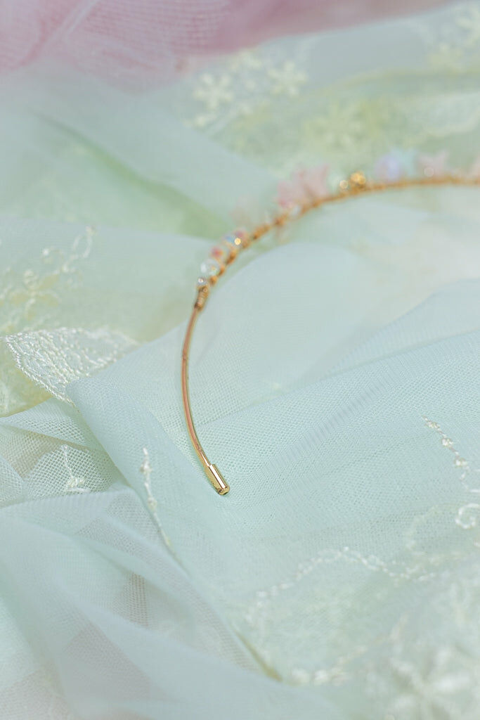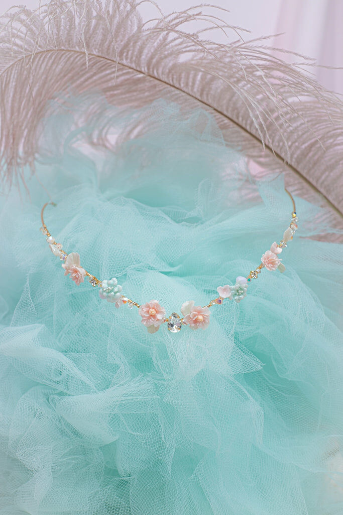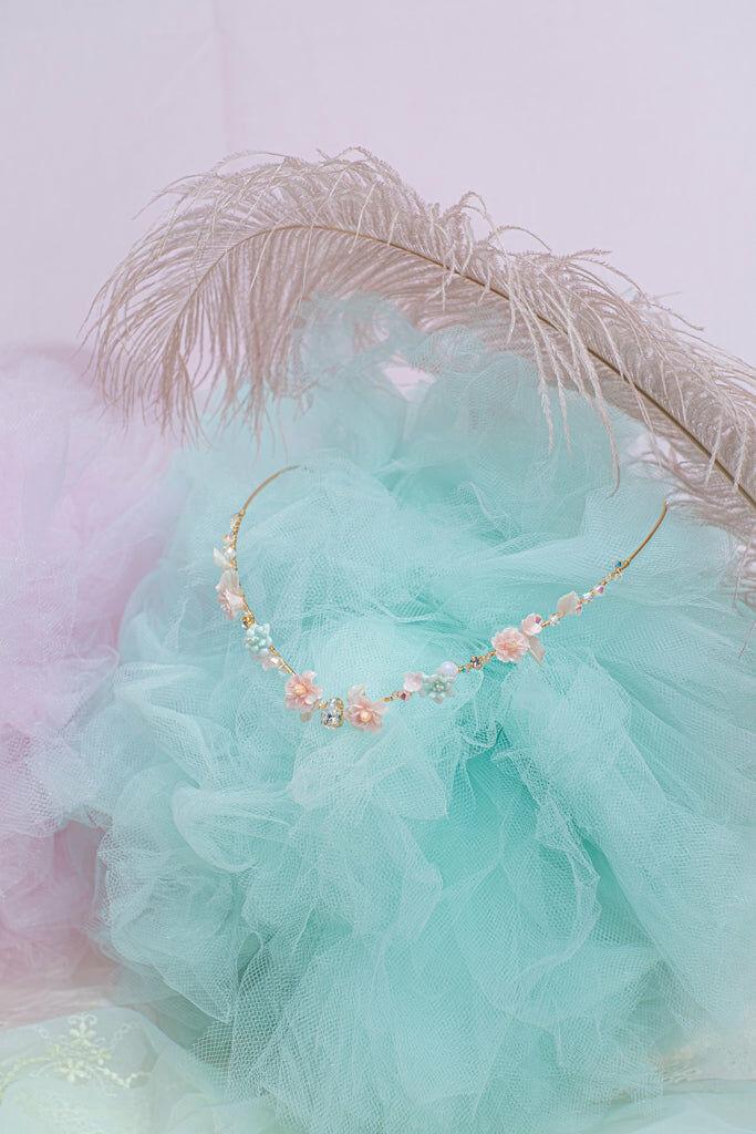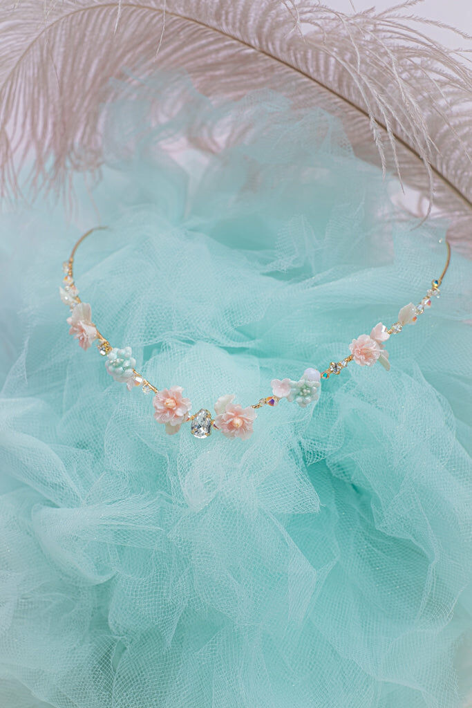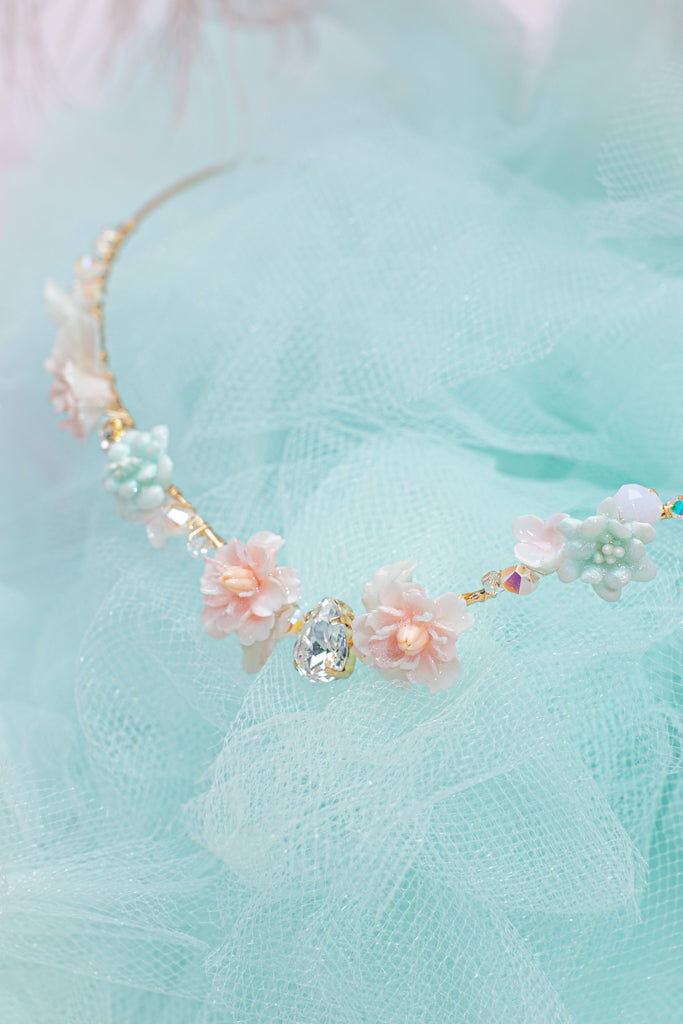 Handcrafted Cold Polymer Clay Flowers | UV hardening Protection Gel | Swarovski Crystal | 14K Gold-plated Metal Crown
