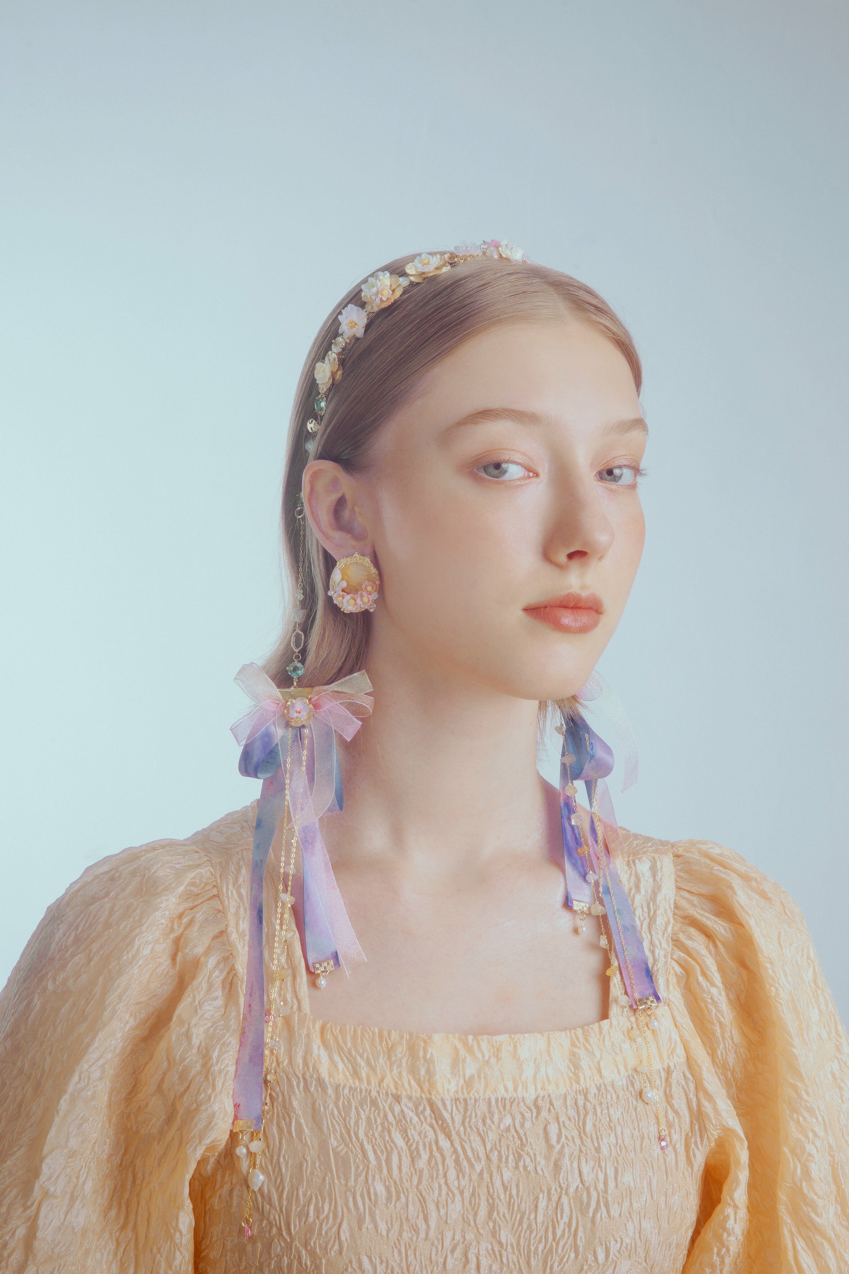 Pamycarie's 2022 Summer Collection takes you to the imaginary summery lake to get a taste of relief and serenity, as well as to be refreshed by the nature. The picturesque landscape features lotuses and water lilies as the theme flowers, while are further enriched by hibiscuses, tulips and purplevines. The brand aspires to impress the public with the sense of novelty. Compared to the previous launches, the 2022 Summer Collection not only uses a bold retro colour tone, but also incorporates embroidery into resin clay flowers, together creating a blend of plane, embossment and 3D structure. Elements such as coloured glazes and filled glass orbs are included to simulate the visual experience from the bottom of the lake.
