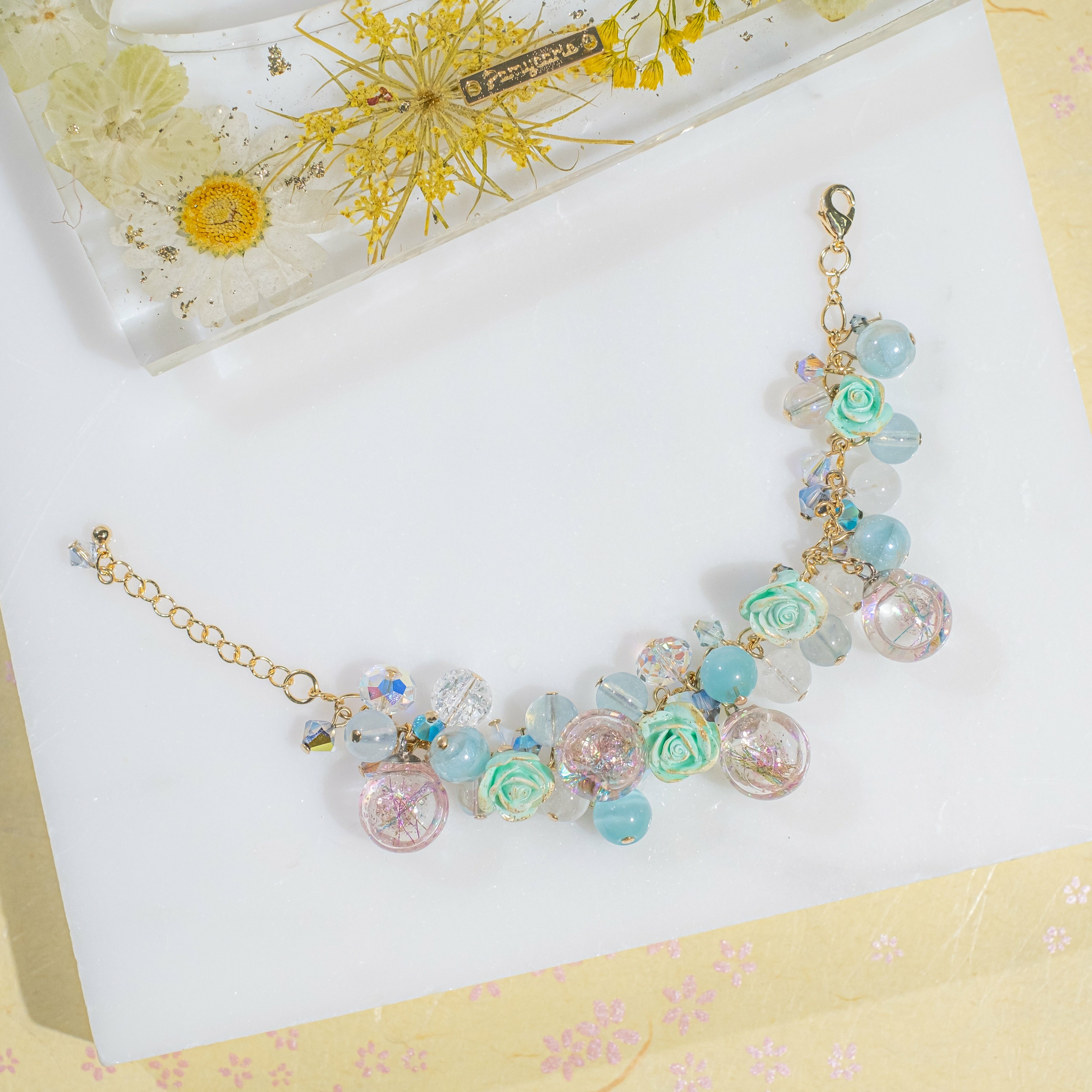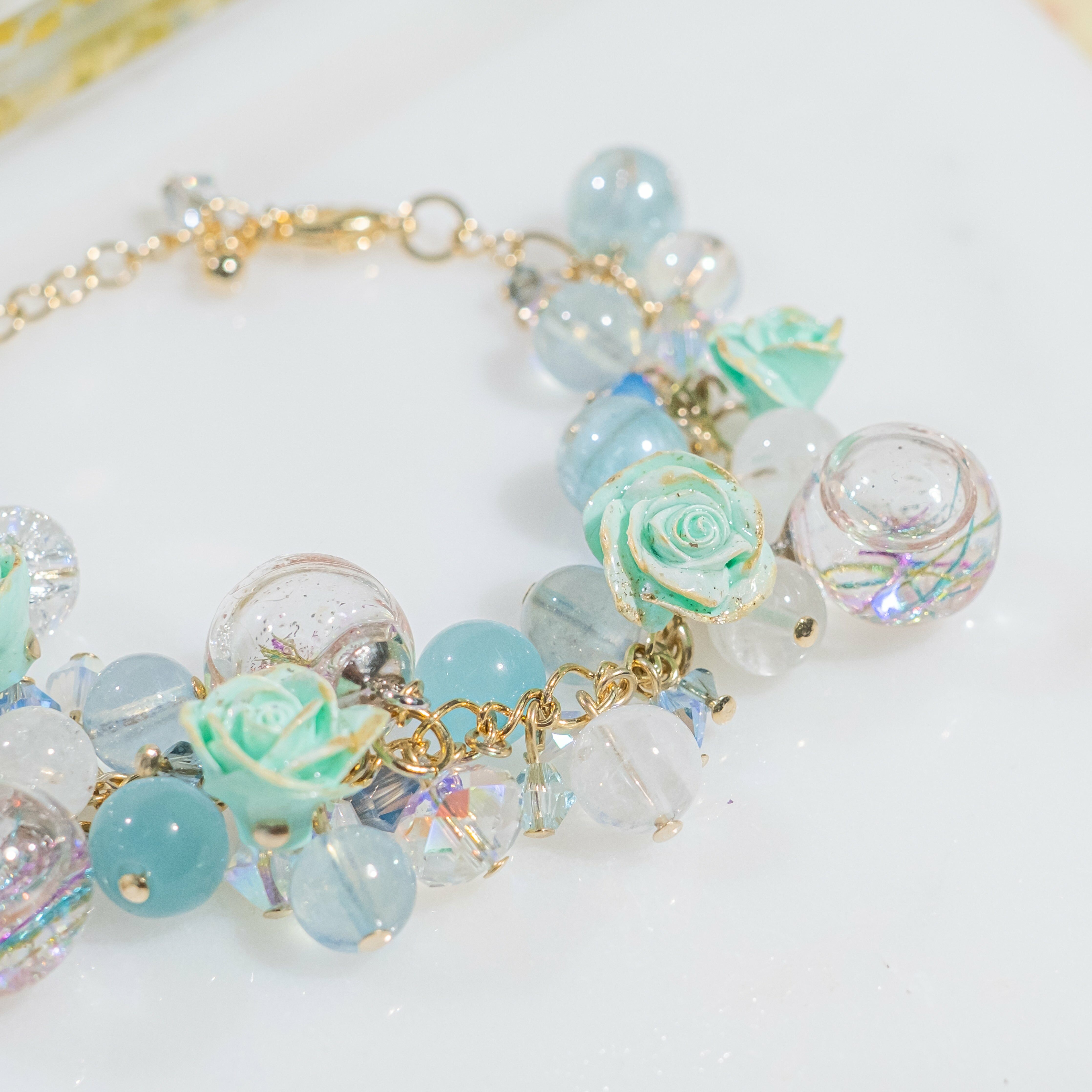 𝟡 · 庭園玫瑰天然水晶泡泡浴手鏈