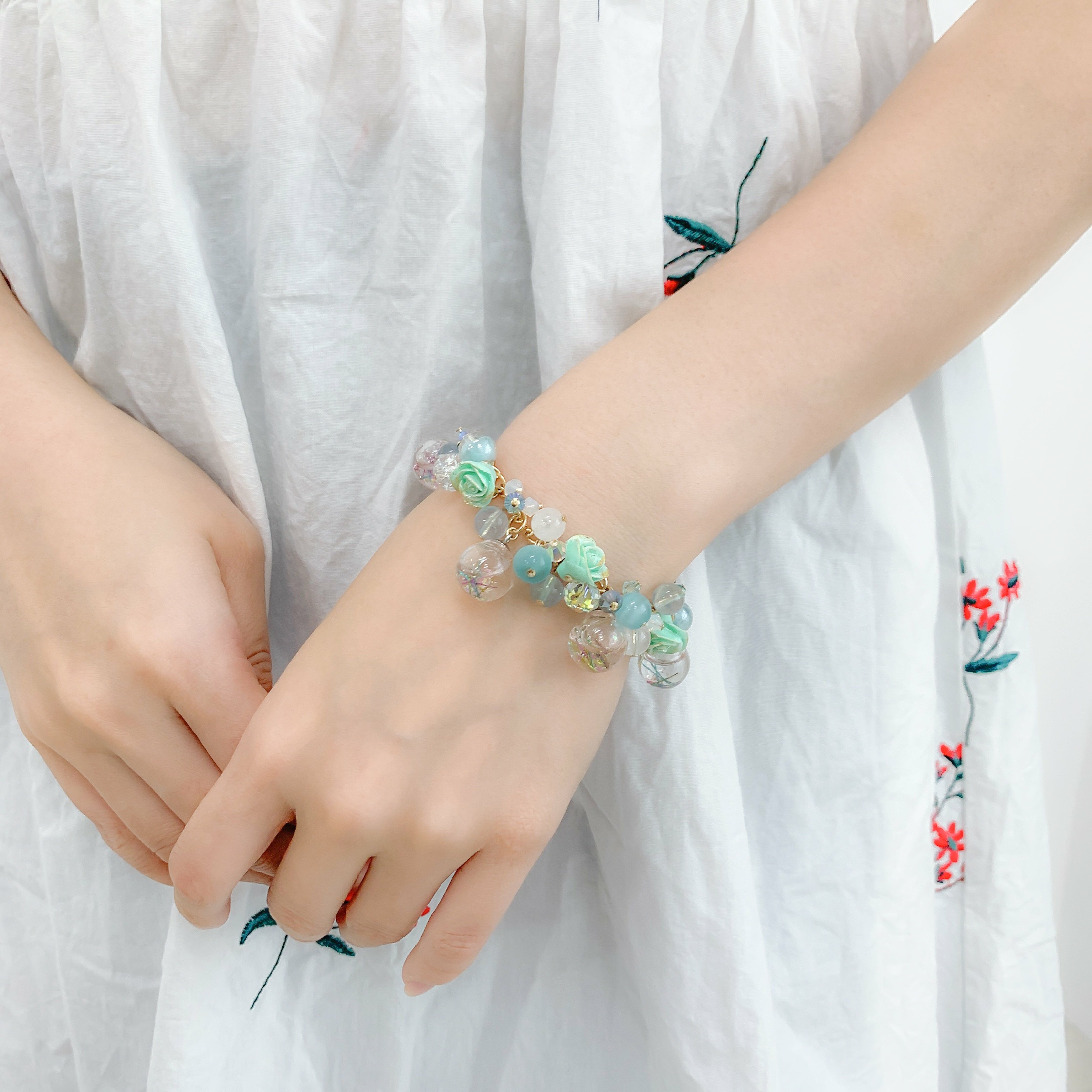 𝟝 · 奶油綠玫瑰天然水晶泡泡浴手鏈